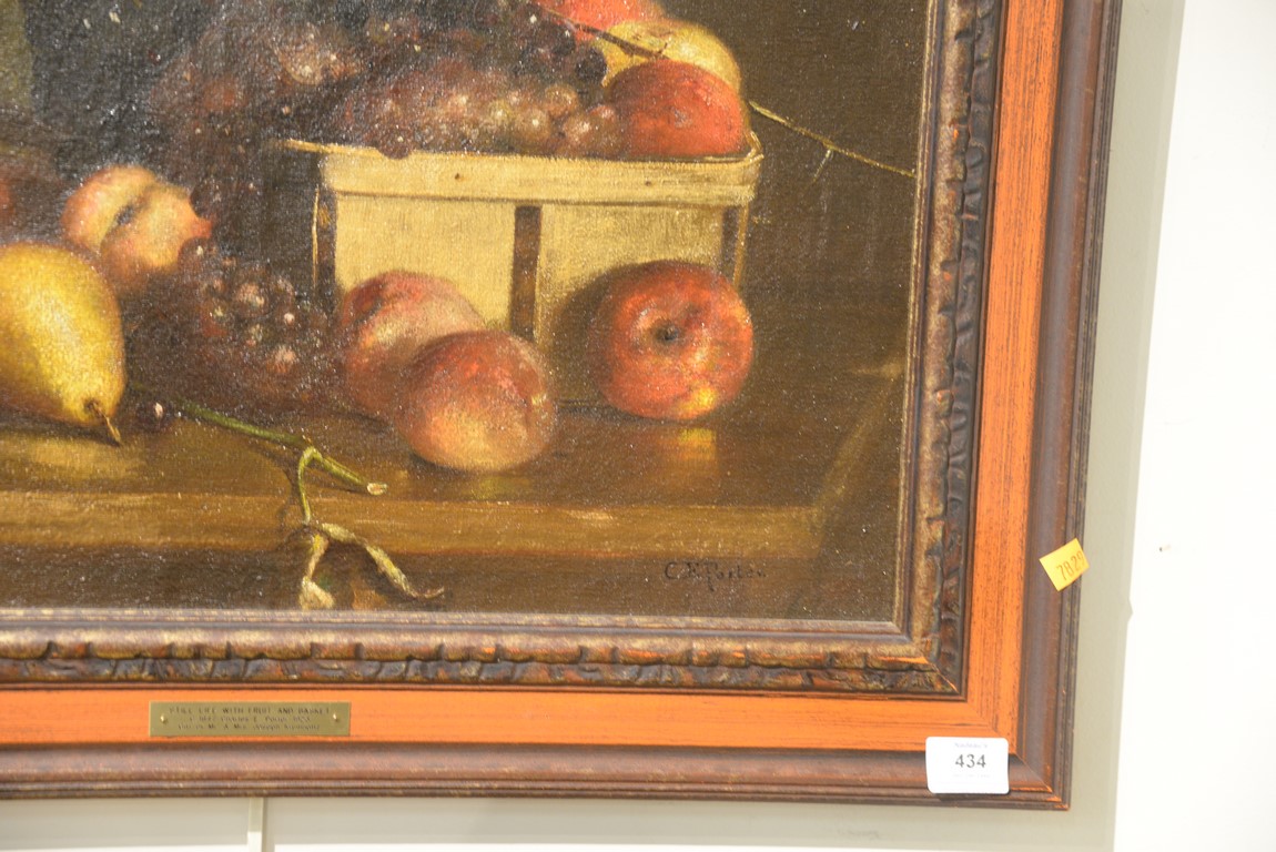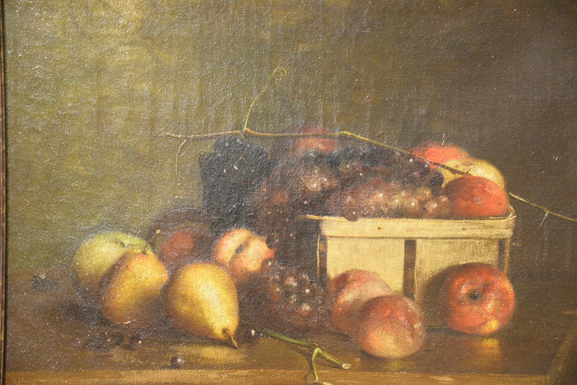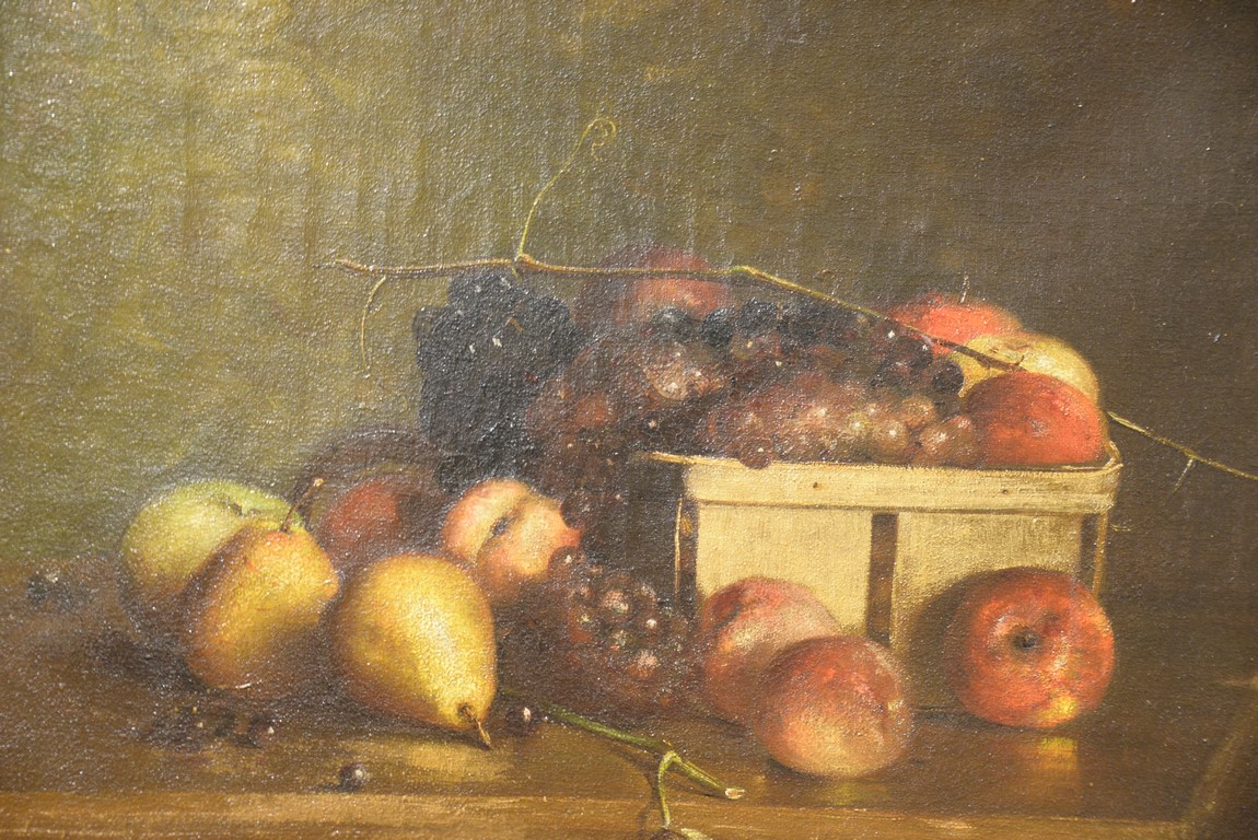 Lot 434: Charles Ethan Porter 1847-1923 Still Life with Fruit and Basket oil on canvas signed lower right: C. E. Porter 18 1/2…