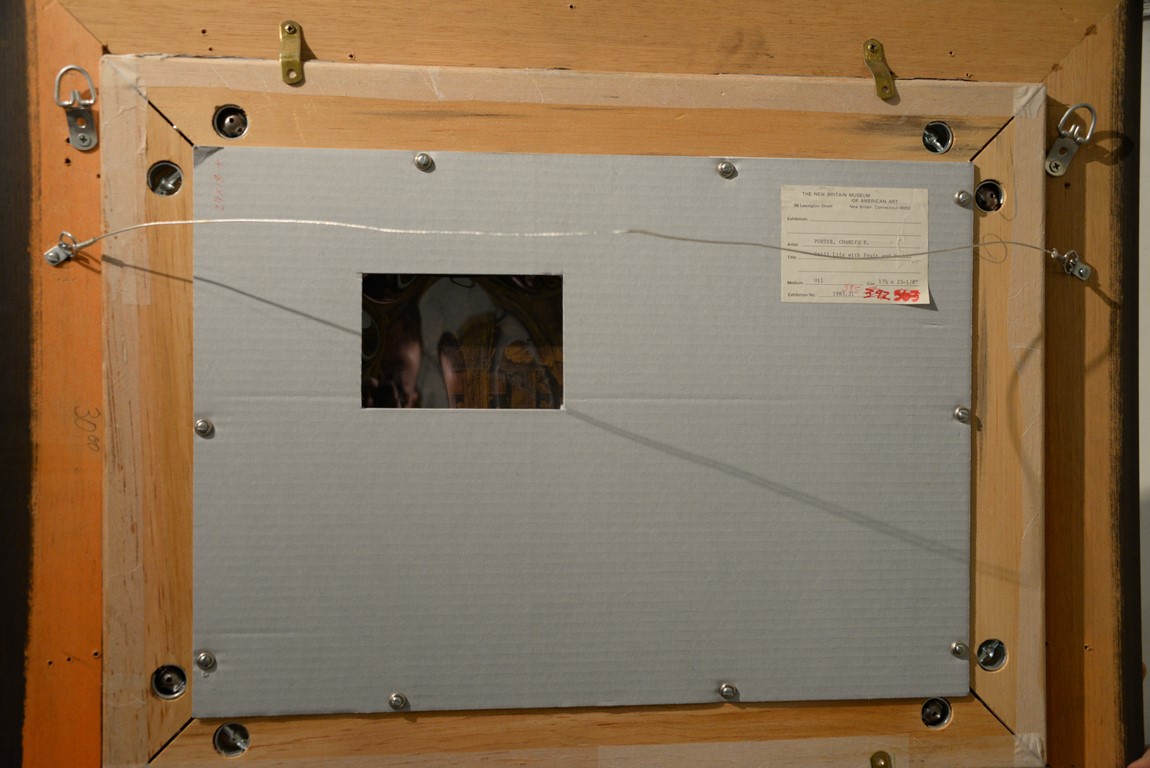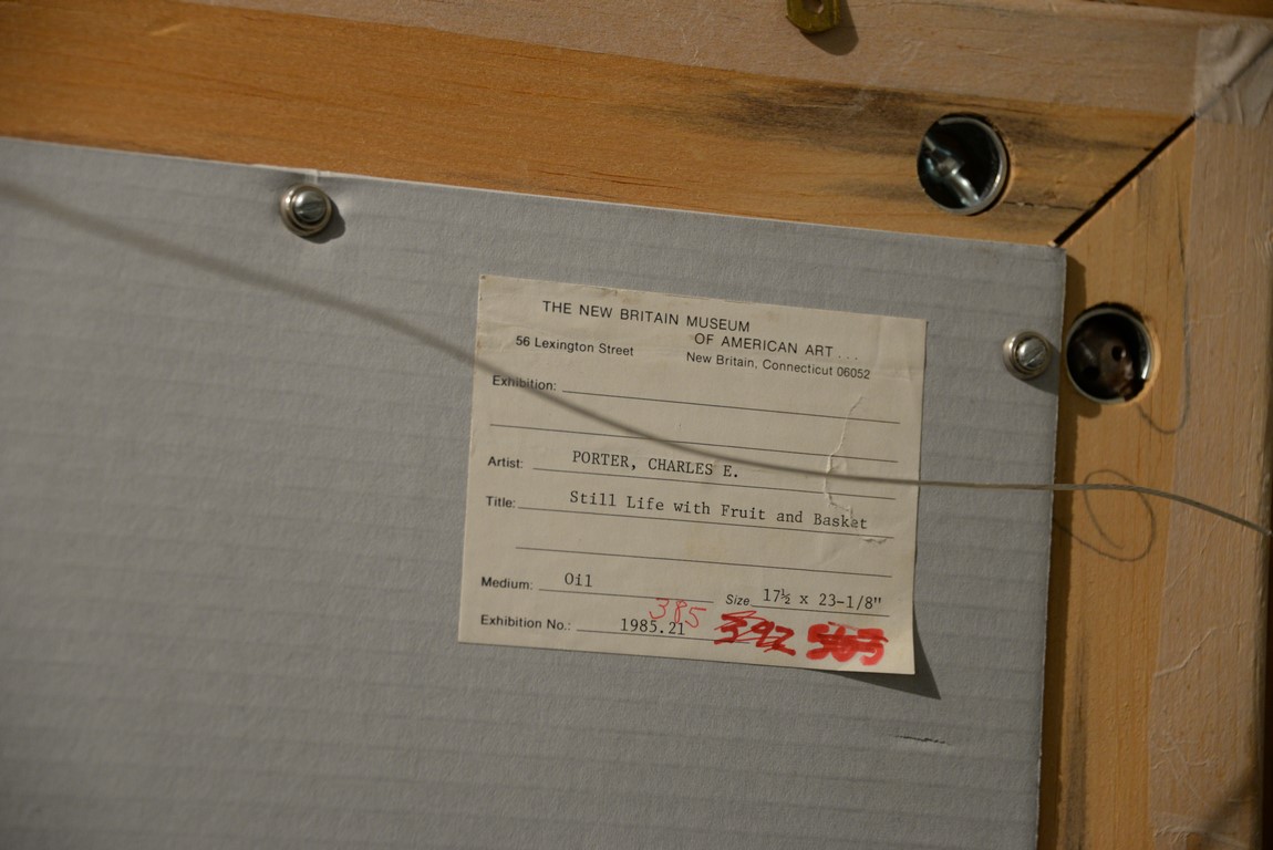 Charles Ethan Porter 1847-1923 Still Life with Fruit and Basket oil on canvas signed lower right: C. E. Porter 18 1/2 x 24 Photographed in Charles Ethan Porter Published by The Connecticut Gallery, Inc., Plate XIII, pg. 41 Being sold to benefit the New Britain Museum of Art