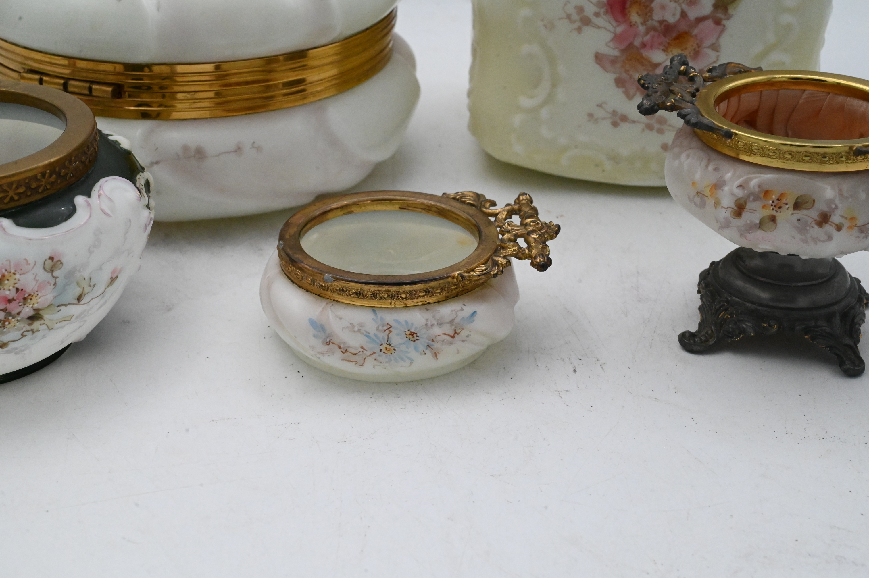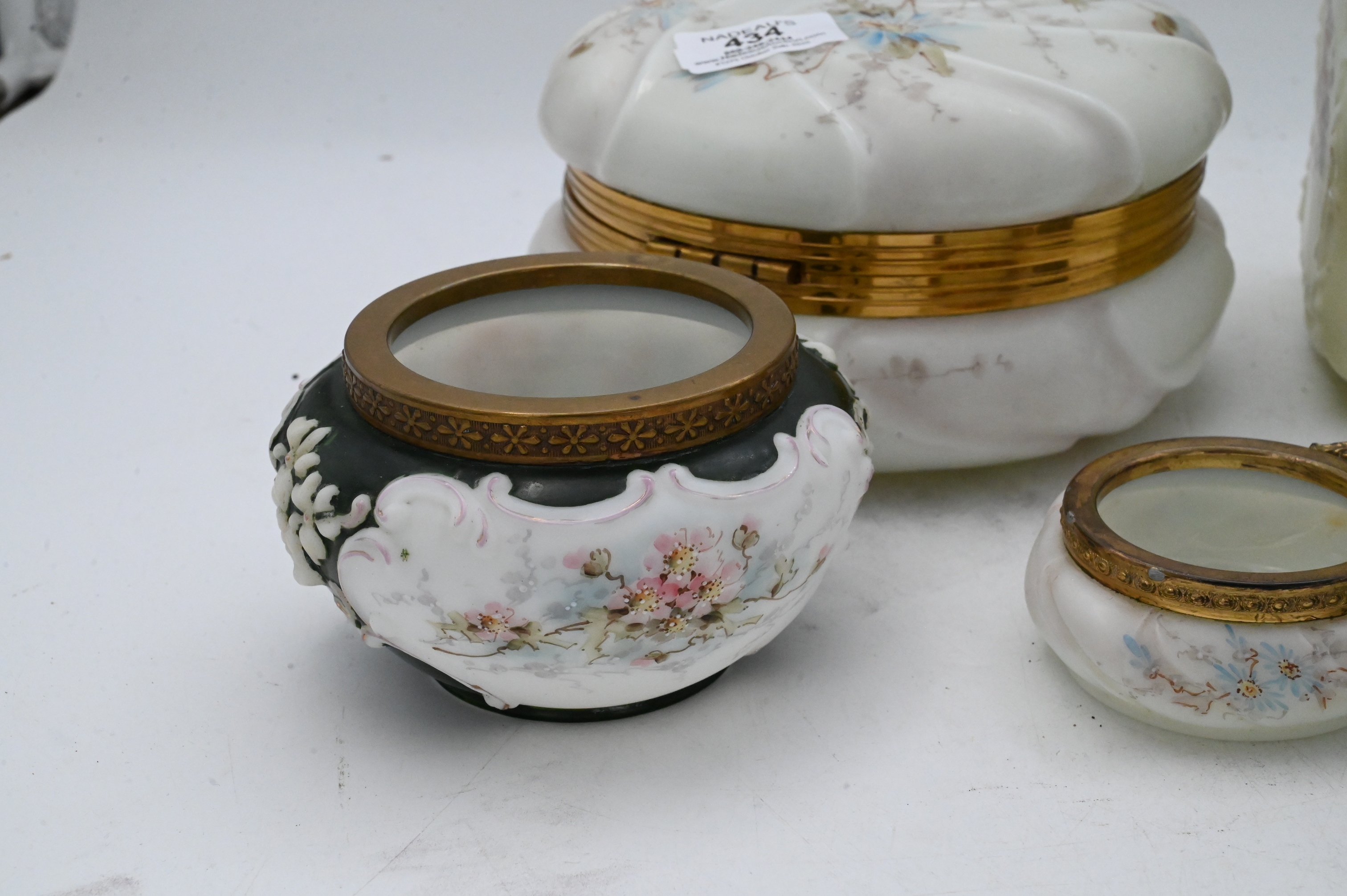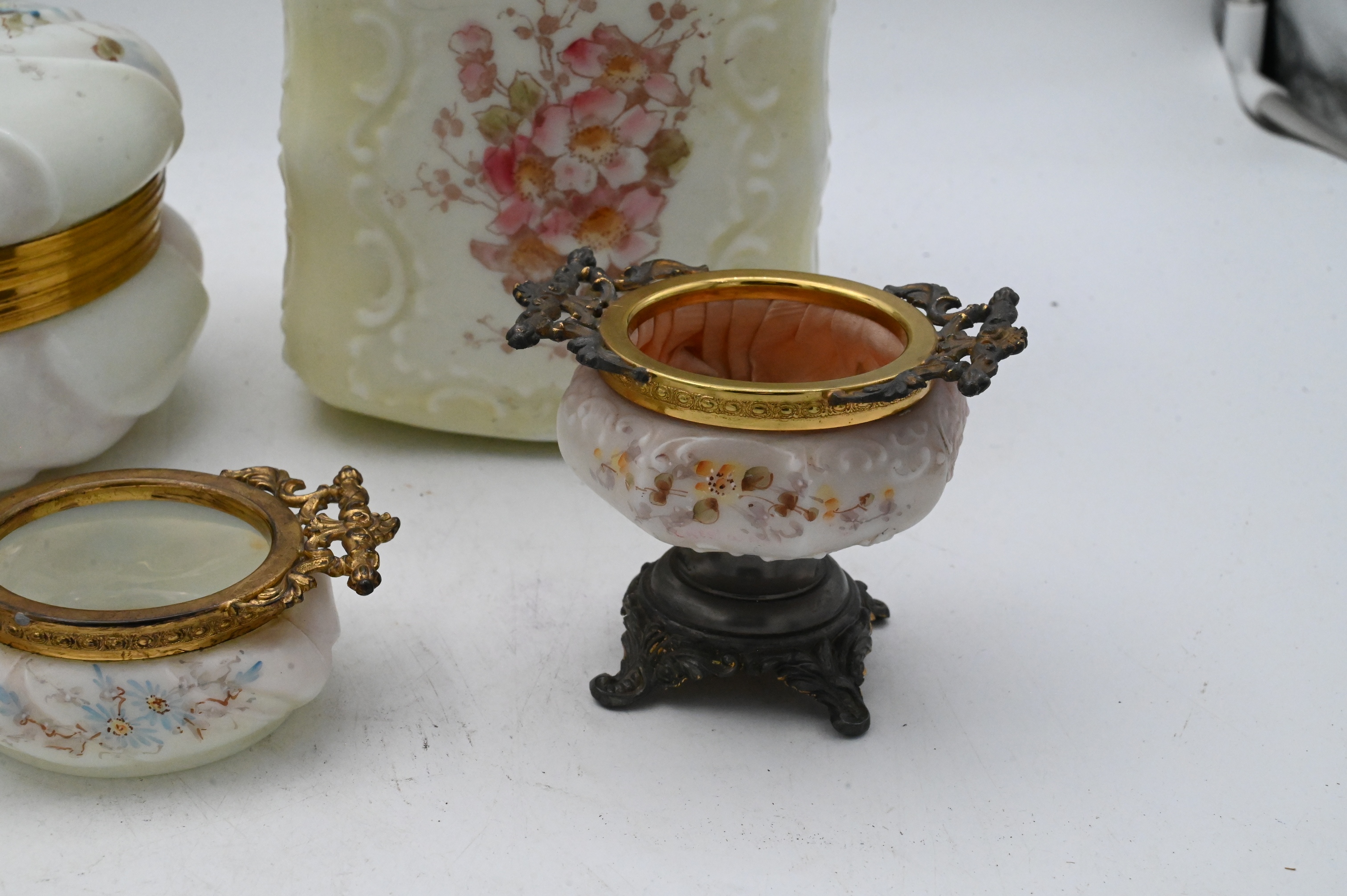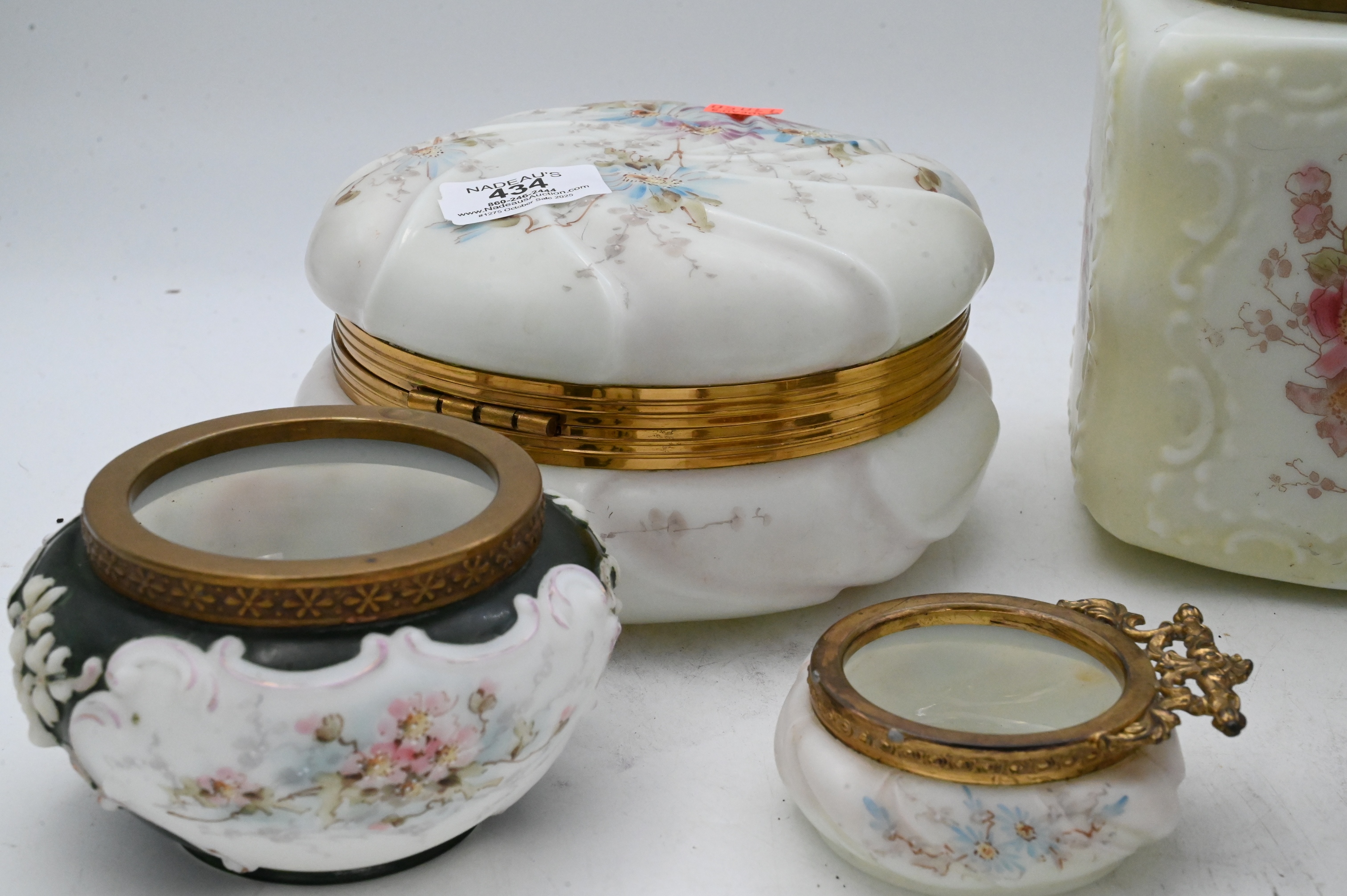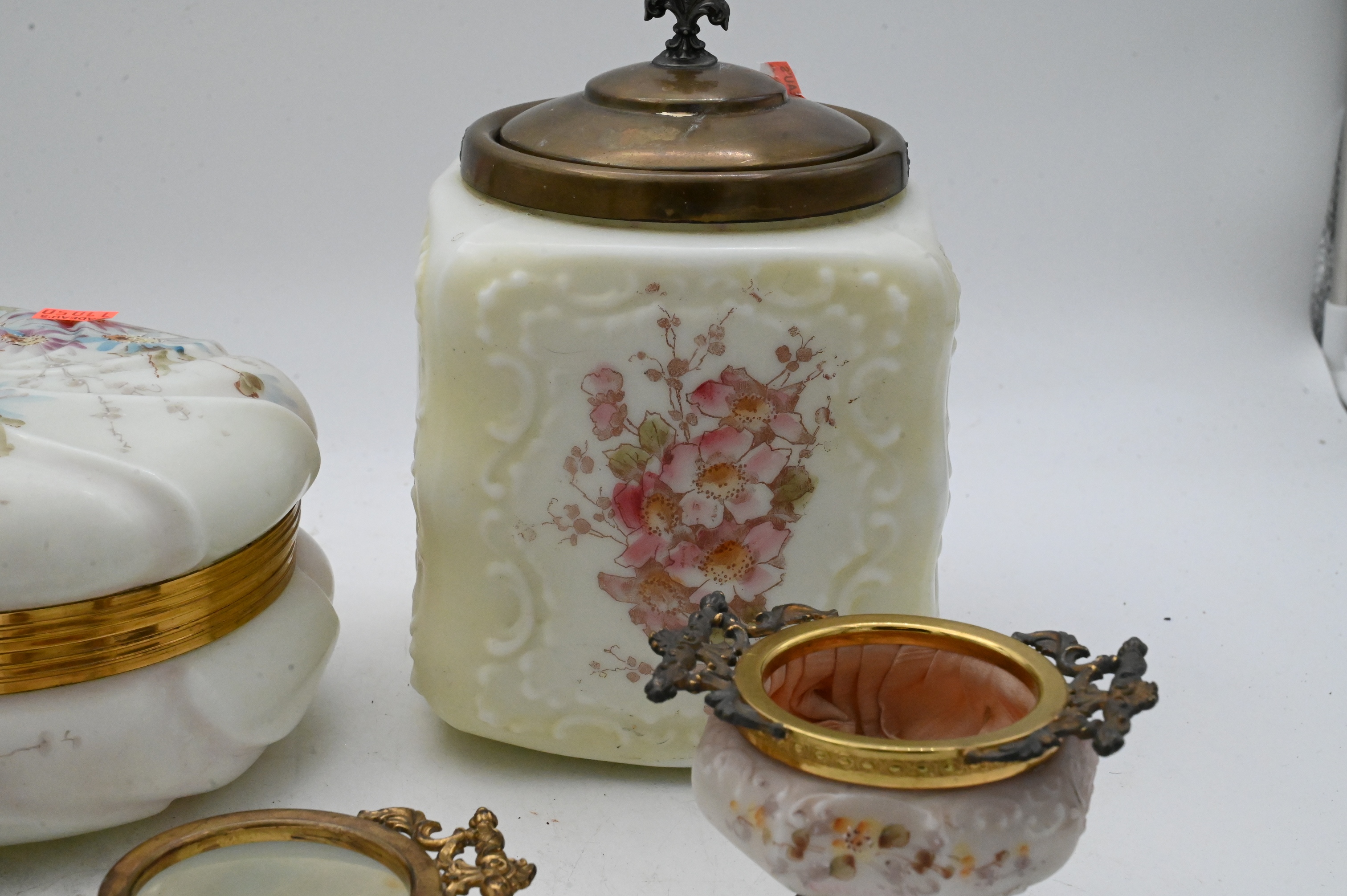 to include large jewel box, three open top pieces, and cracker jar without handle