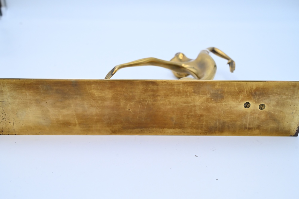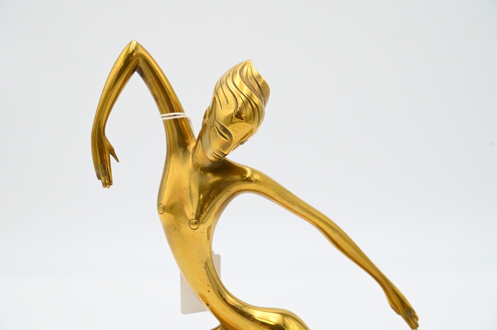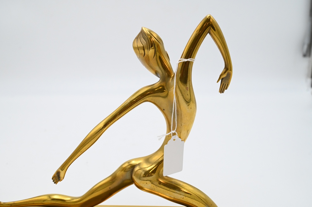 Lot 434: Franz Hagenauer (Austrian, 1906 – 1986), brass sculpture of a woman posing, dancing bookend, marked on base, height 9 3/4 inches, length 14 1/5 inches.