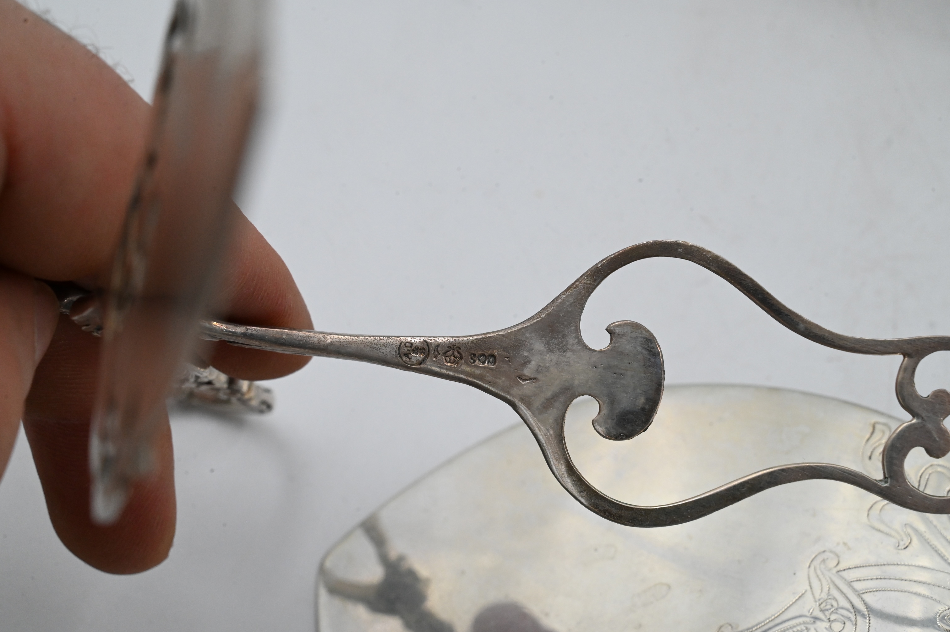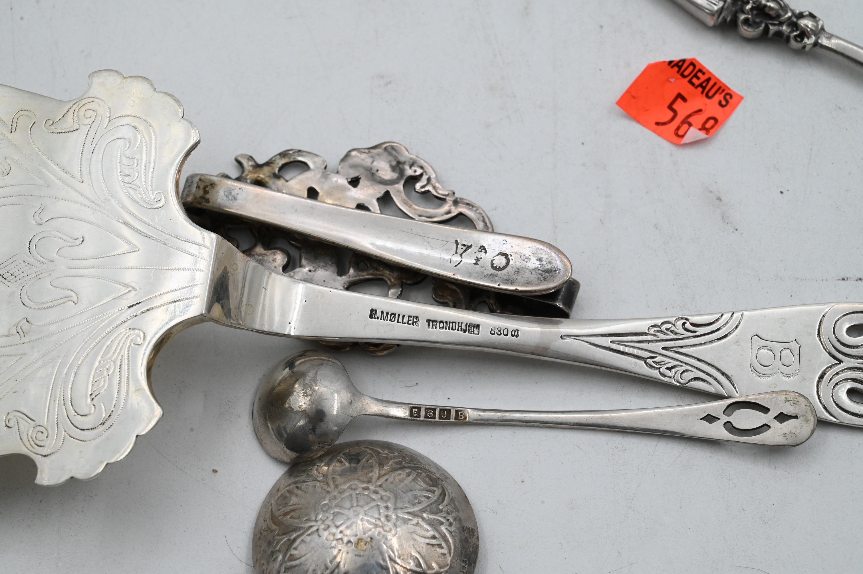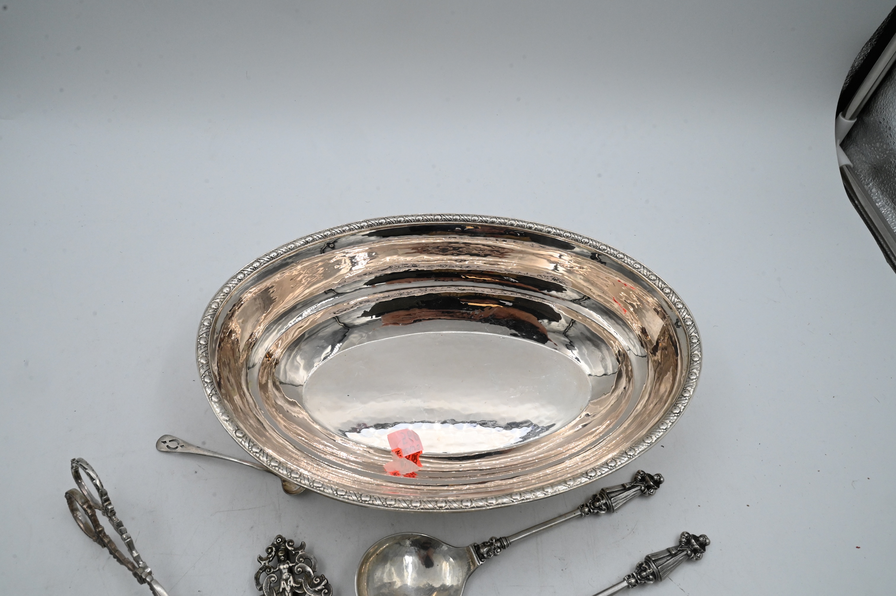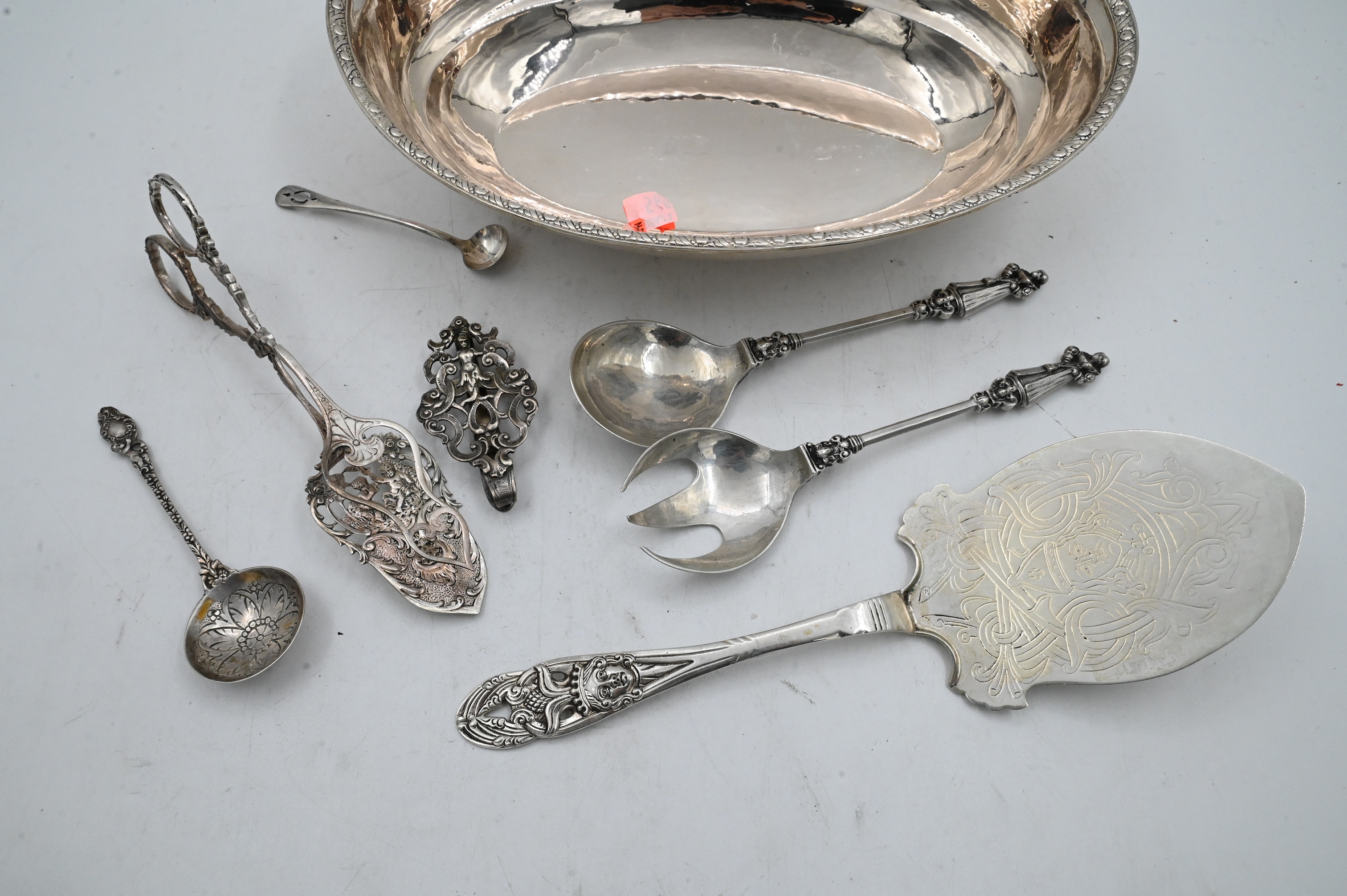 to include oval bowl, money clip, pair of salad spoons and forks, two small spoons, and two serving pieces one of which is marked H. Moller Trandijem