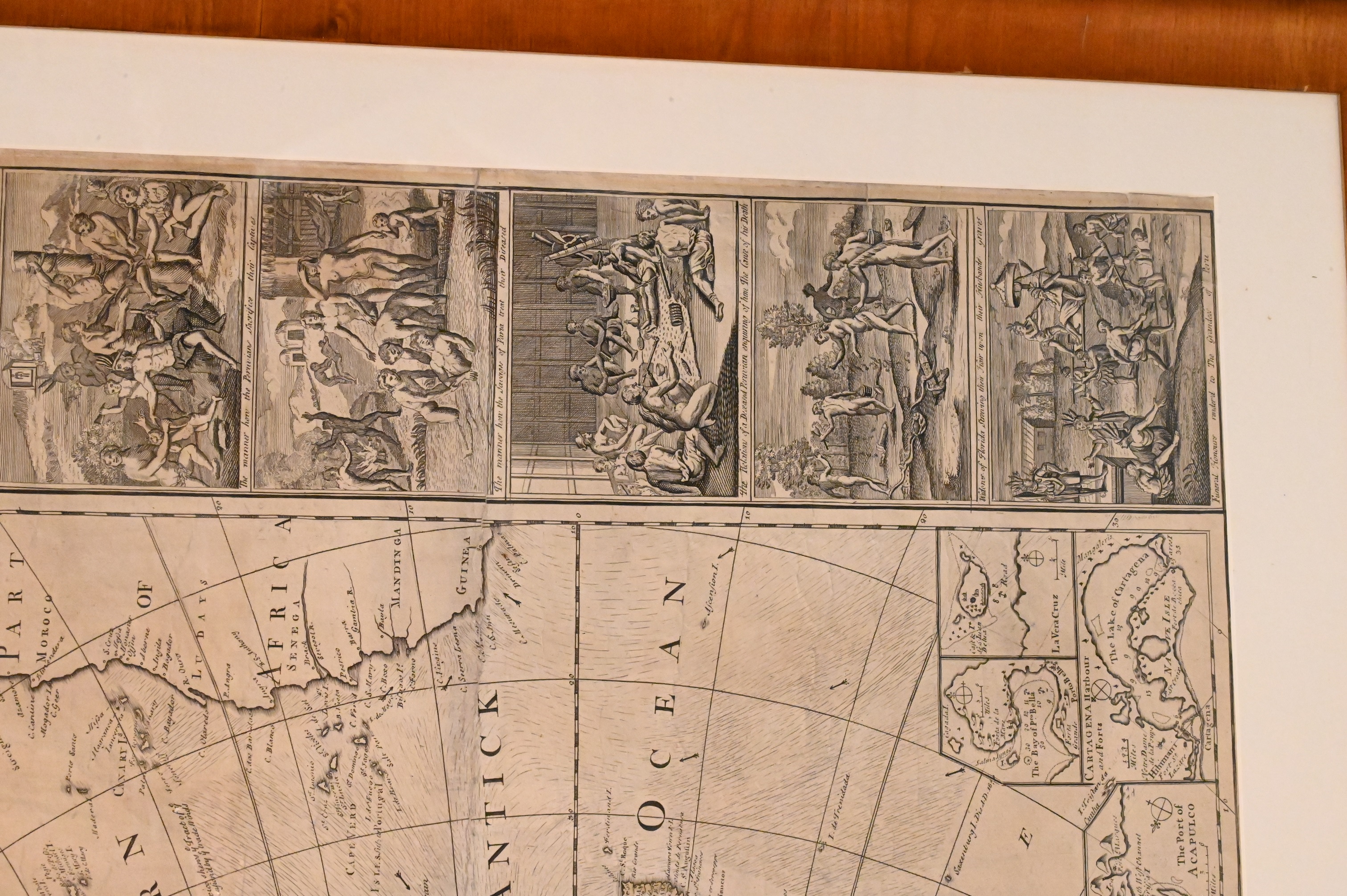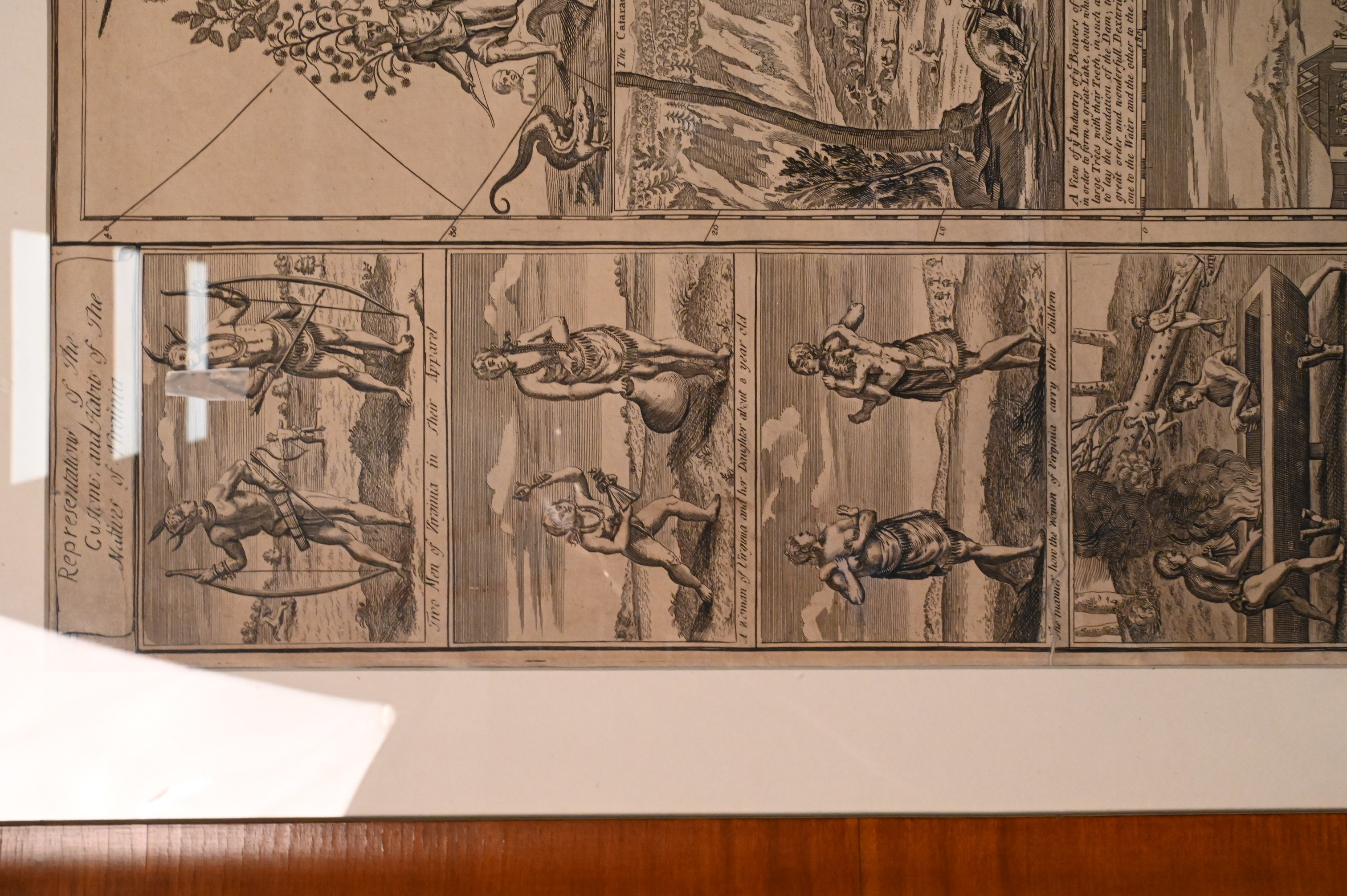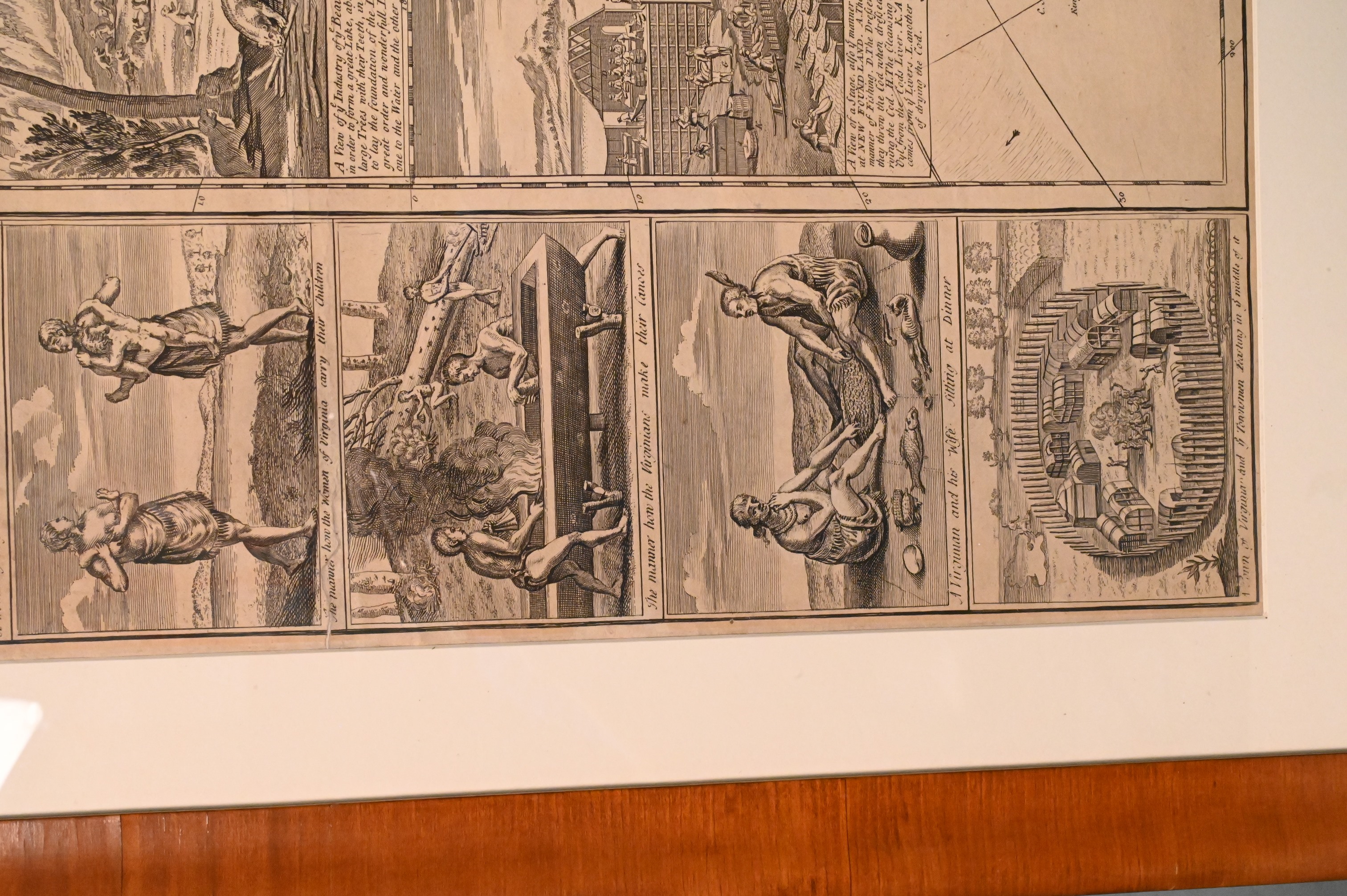 Two sheet map engraving of the “Representation of the Customs and Habits of the Native Virginians, the North Pole, Several Representations of the Customs and Manners of the Natives of Diverse Parts of America”