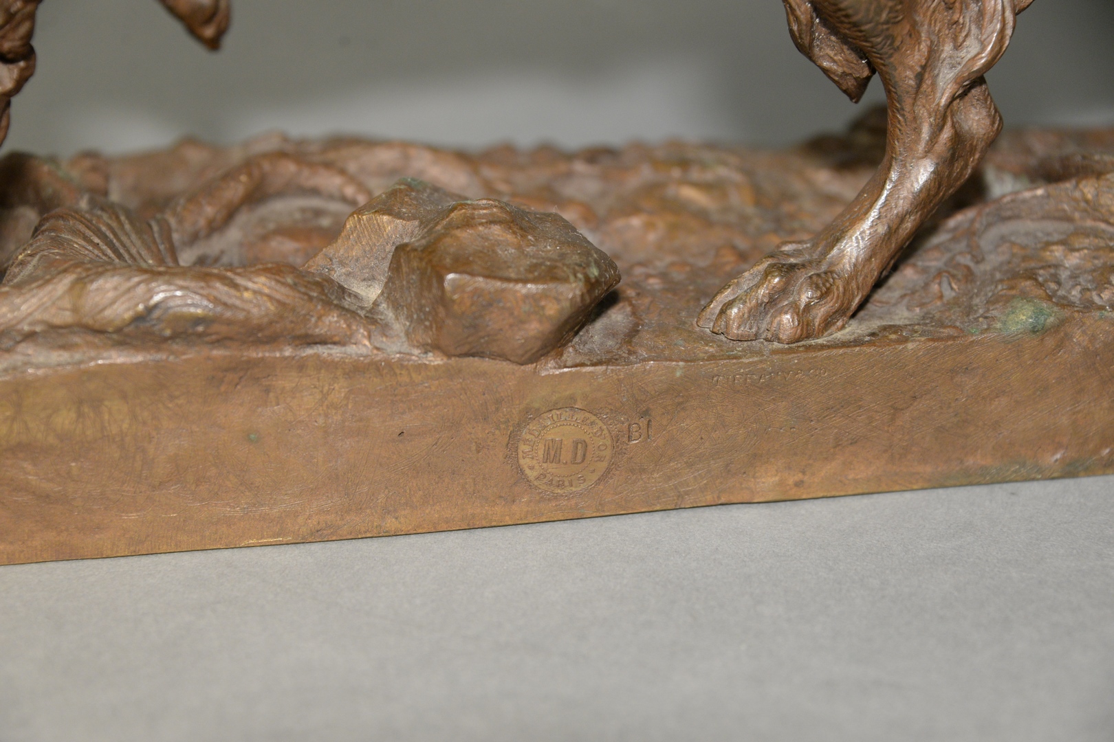 Lot 434: Jules Moigniez French, 1835 – 1894 Tiffany & Company Finding the Scent, Setter bronze with brown patina inscribed on the base J….
