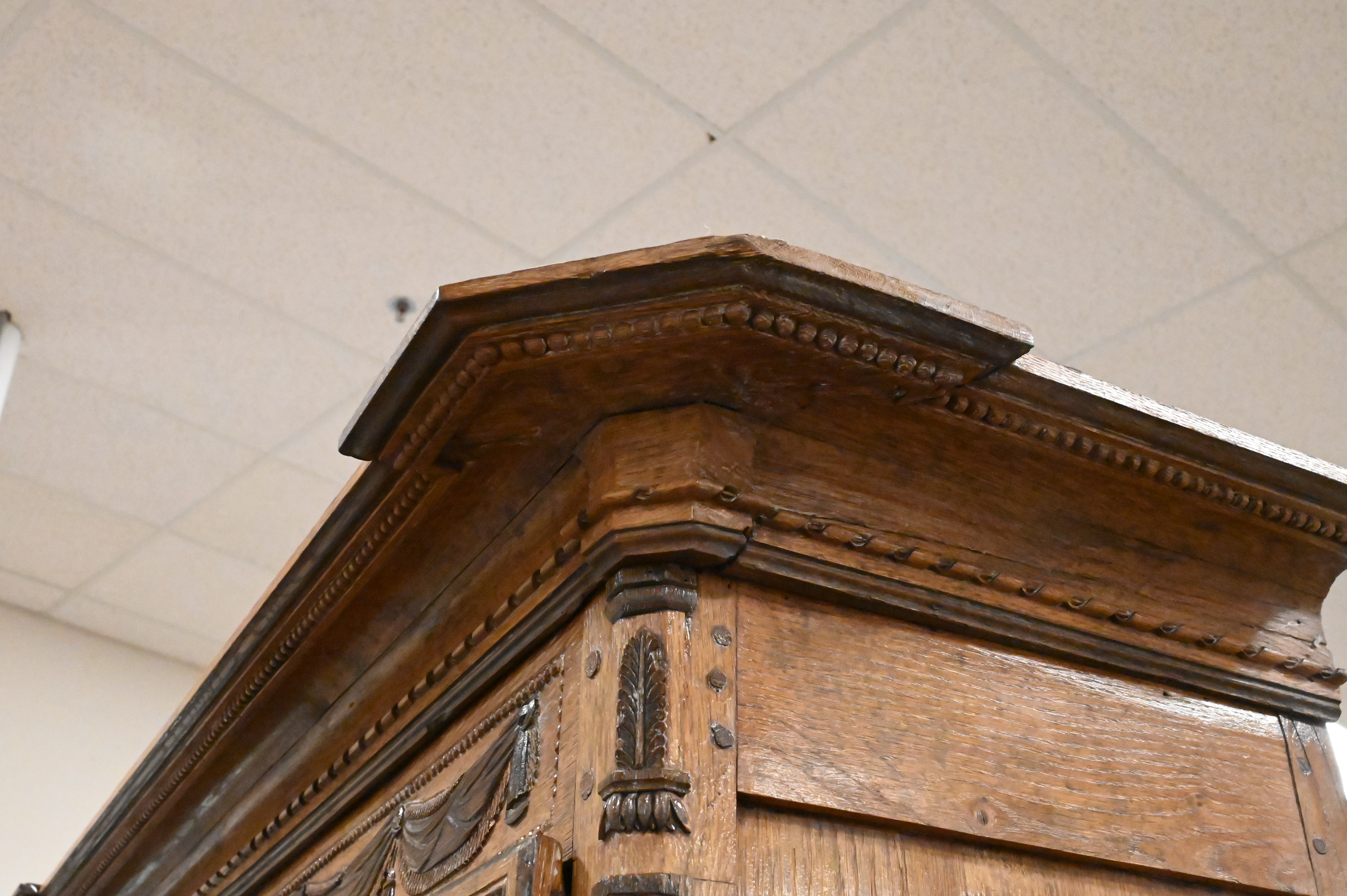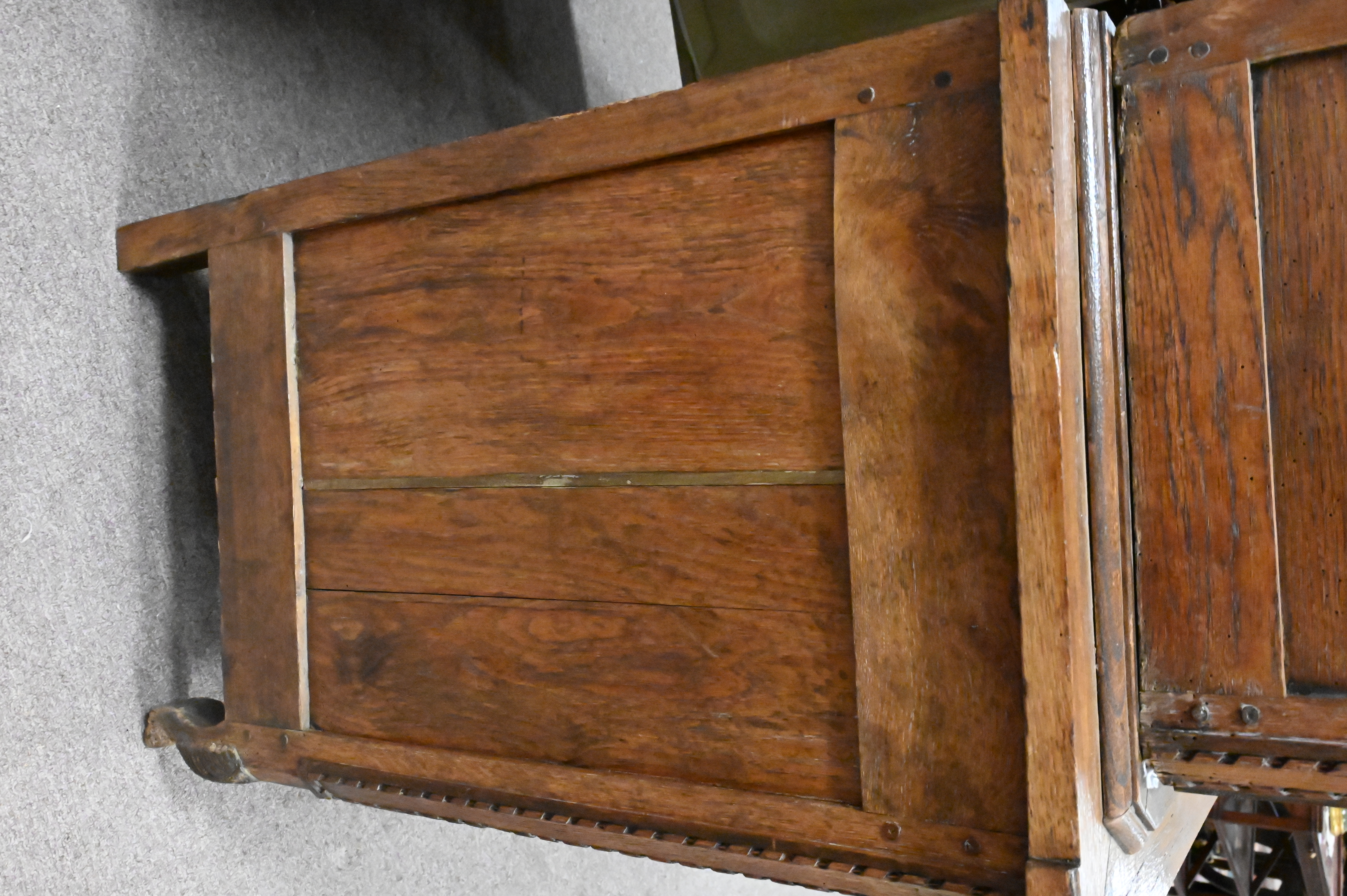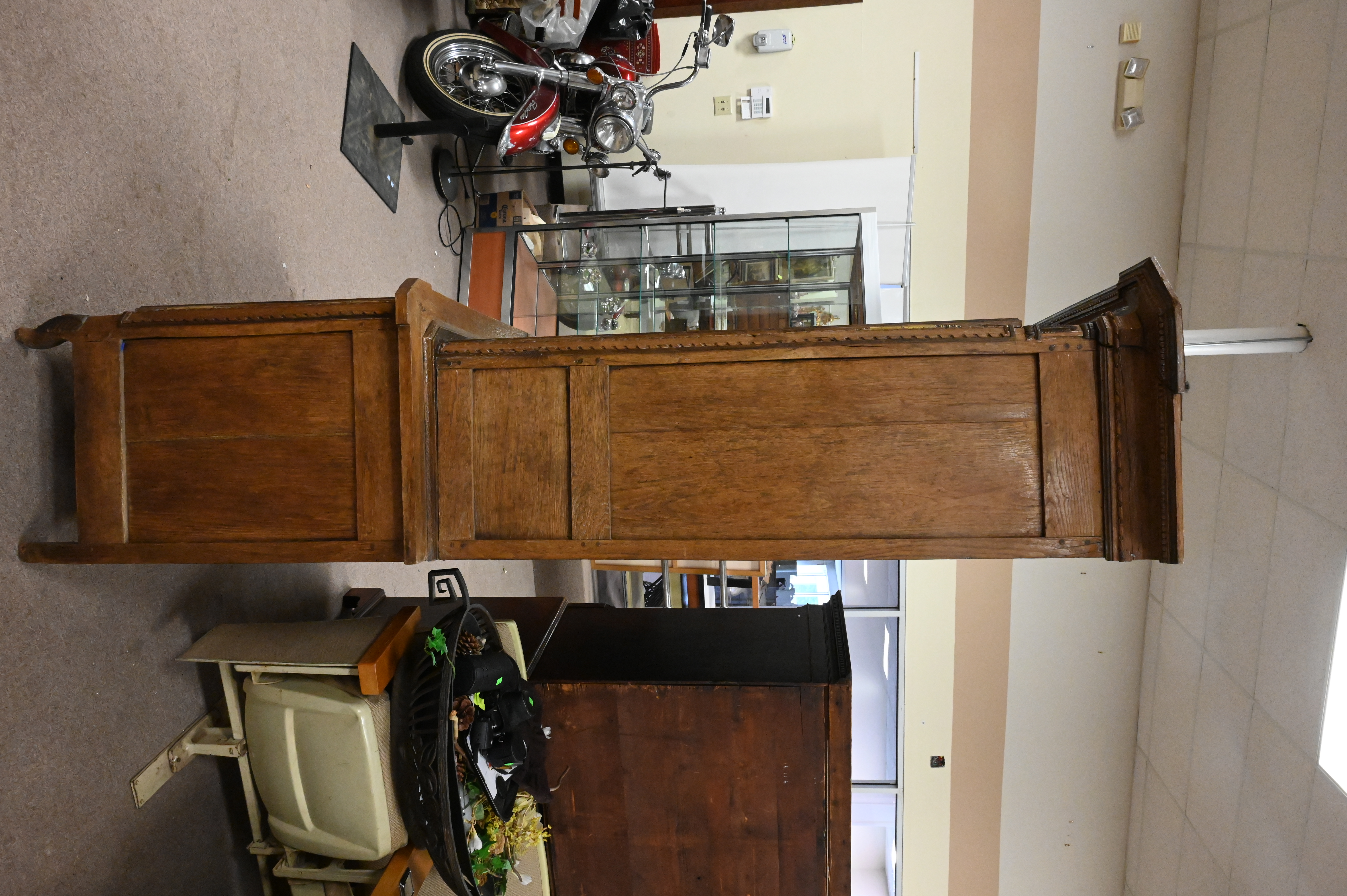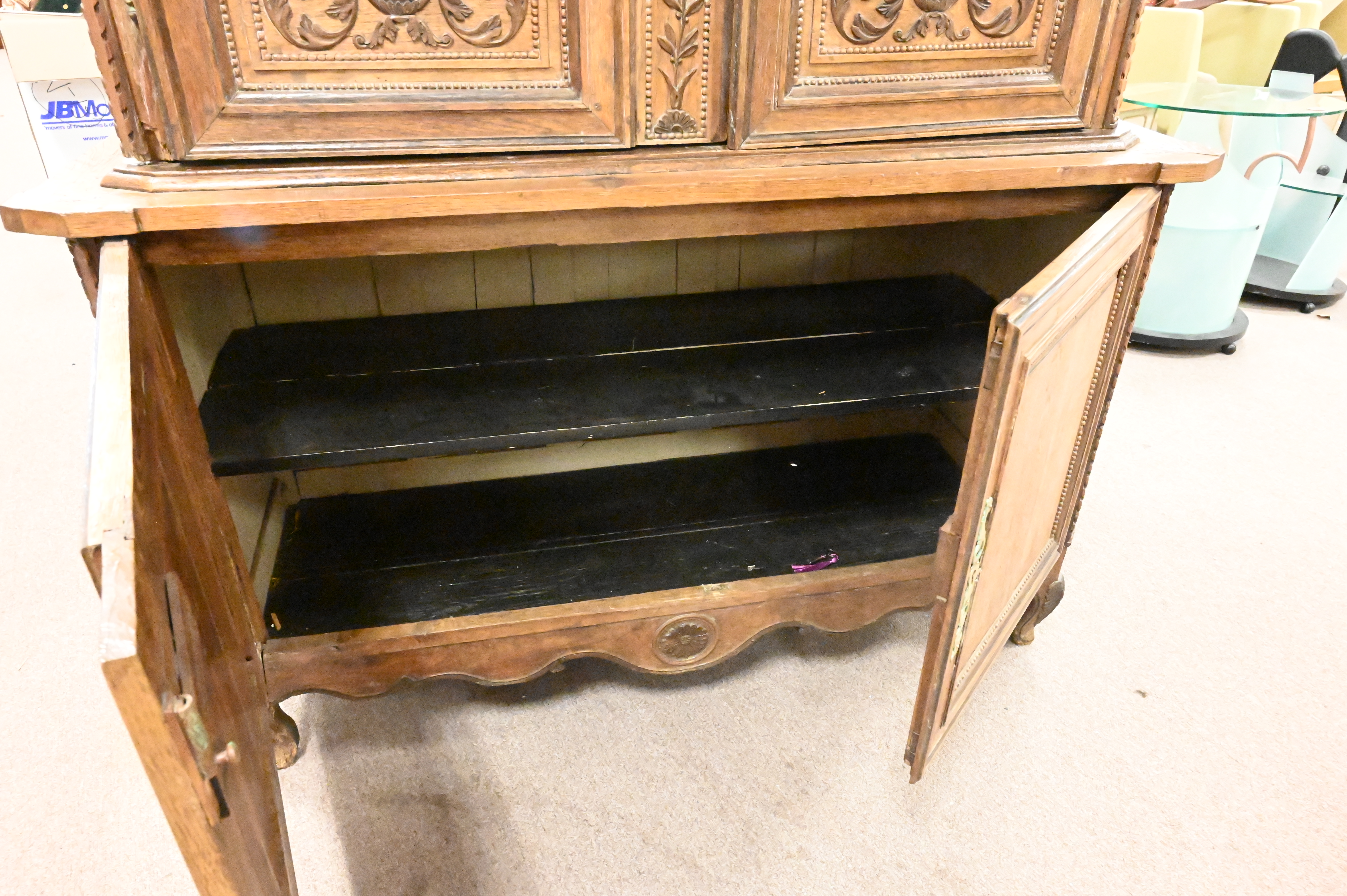 Louis XV Oak Cabinet/Hutch, in three parts, previously had mirror backing inside, no shelving, 18th century, height 87 inches, width 54 inches.