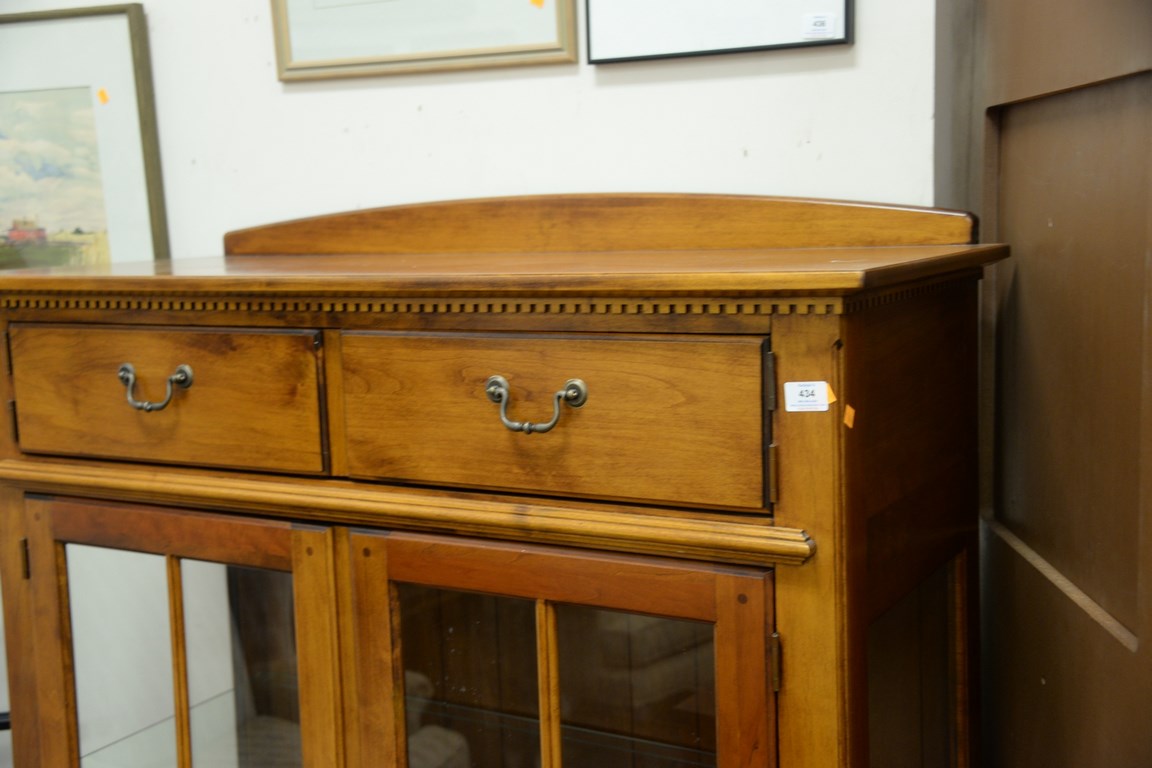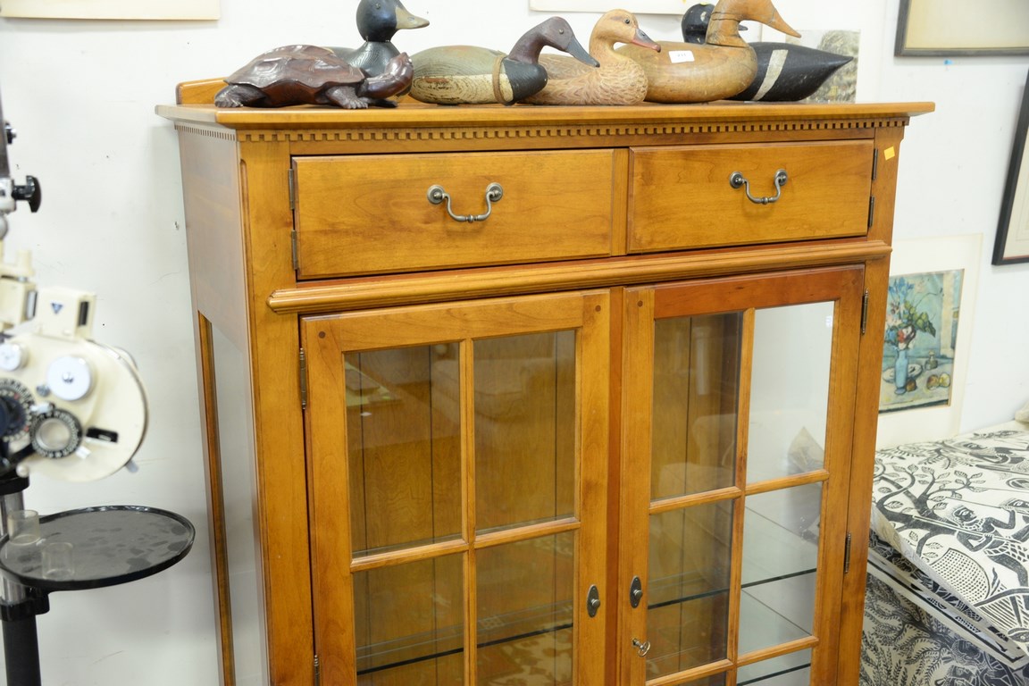 Lot 434: Pair of maple two door china cabinets with two door top and glass shelves, ht. 63 in. wd. 47 in. dp. 19 in.