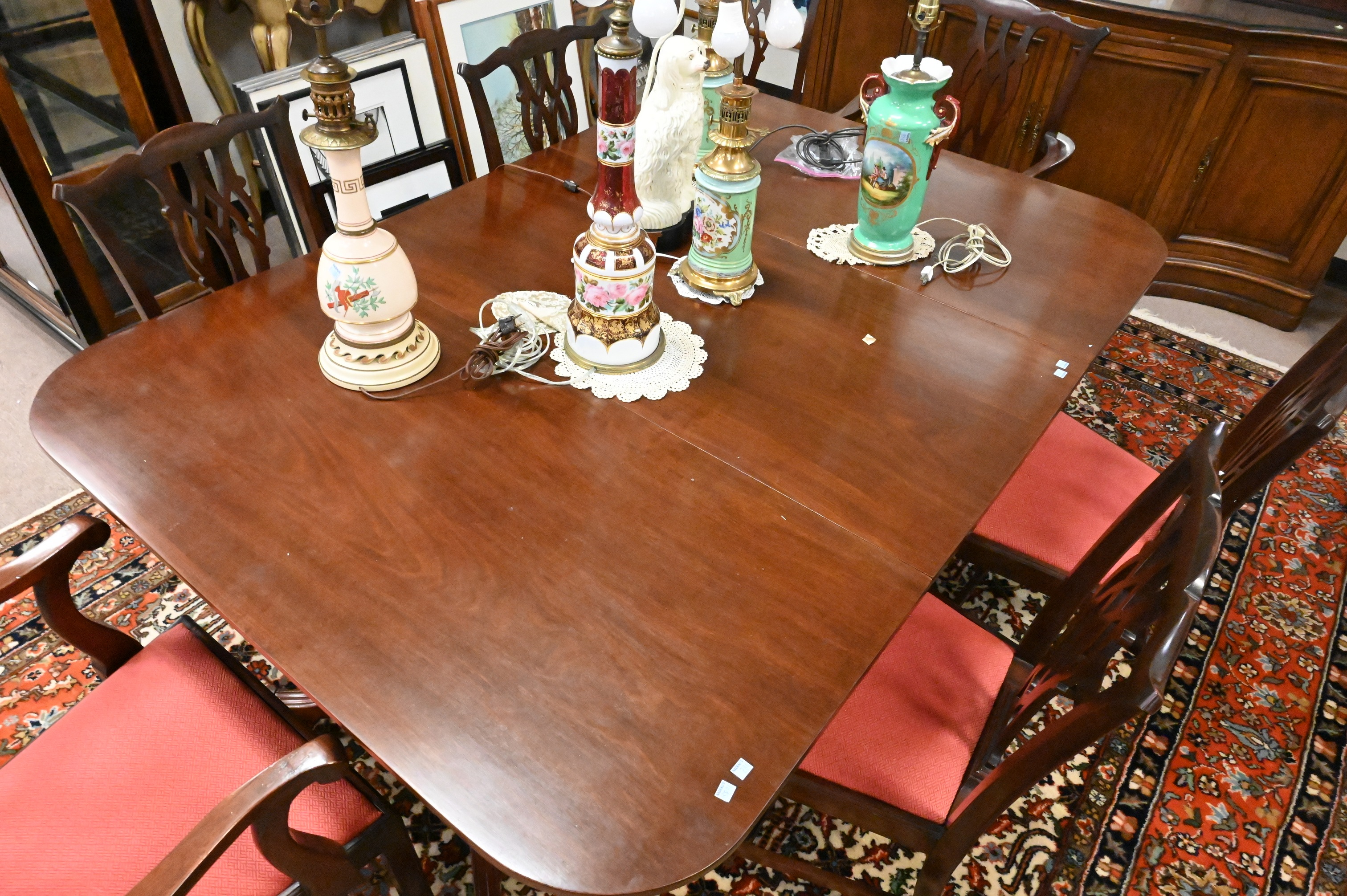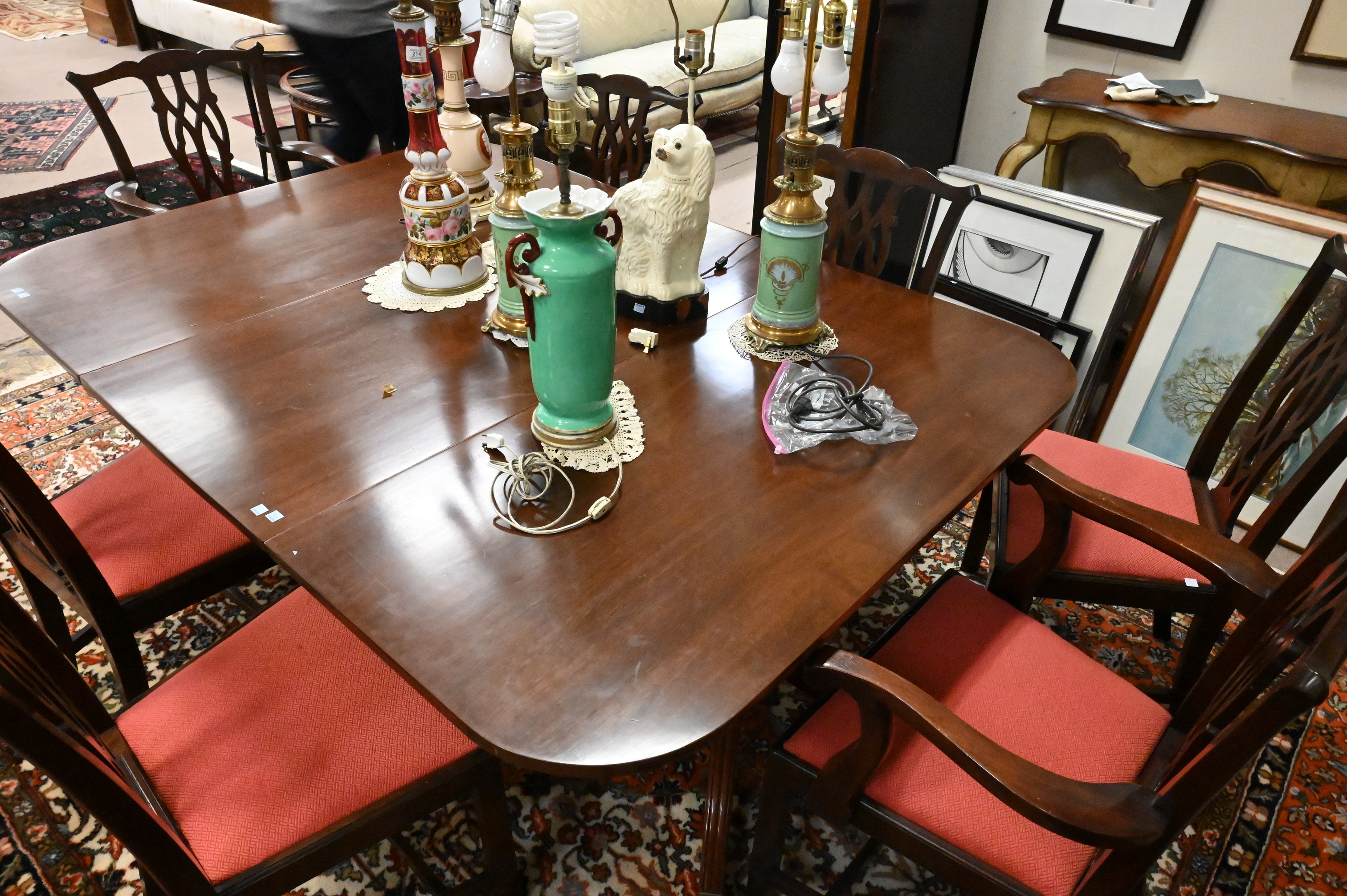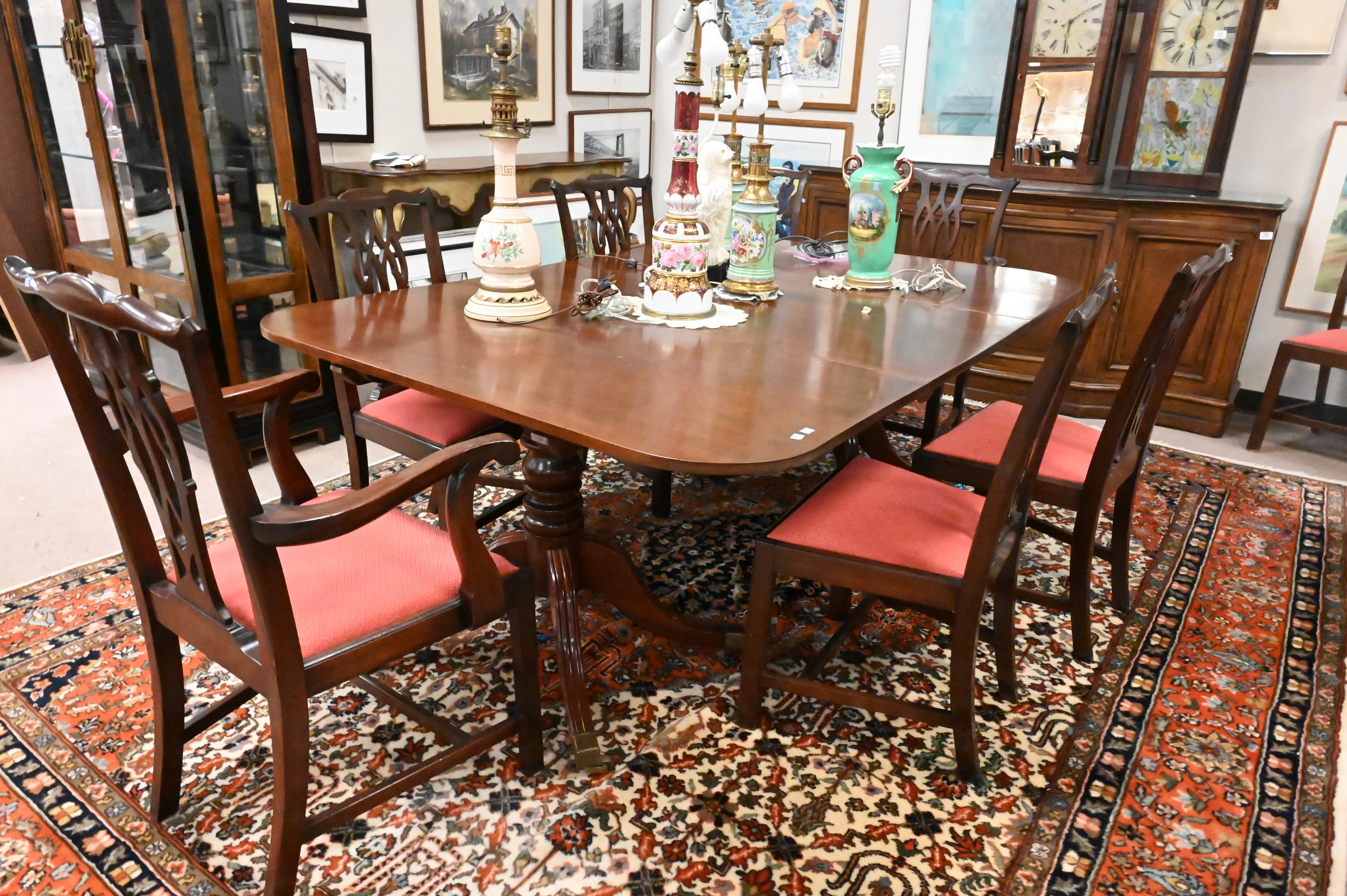 Lot 434: Set of Nine Mahogany Chippendale Style Dining Chairs and a Double Pedestal Mahogany Table