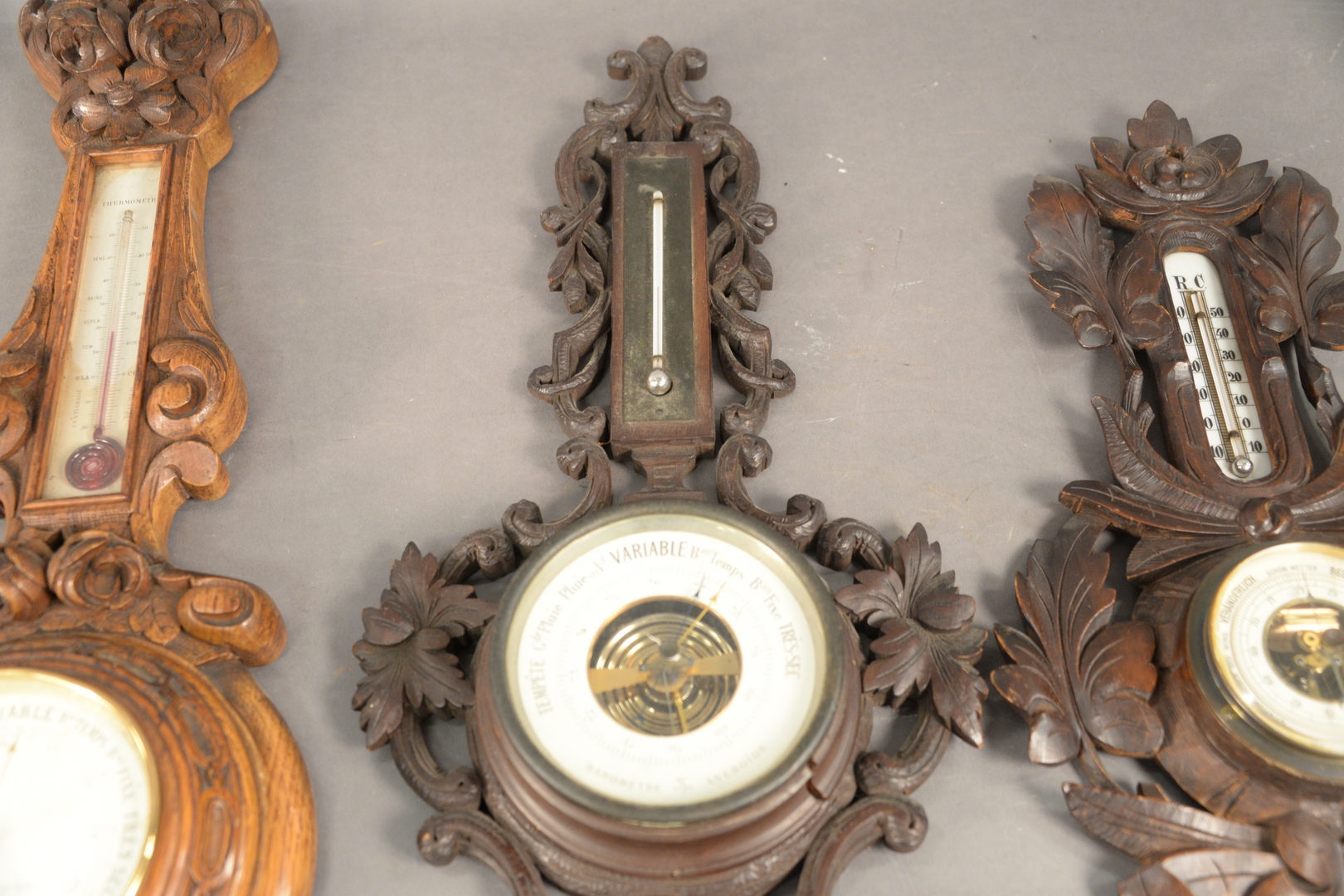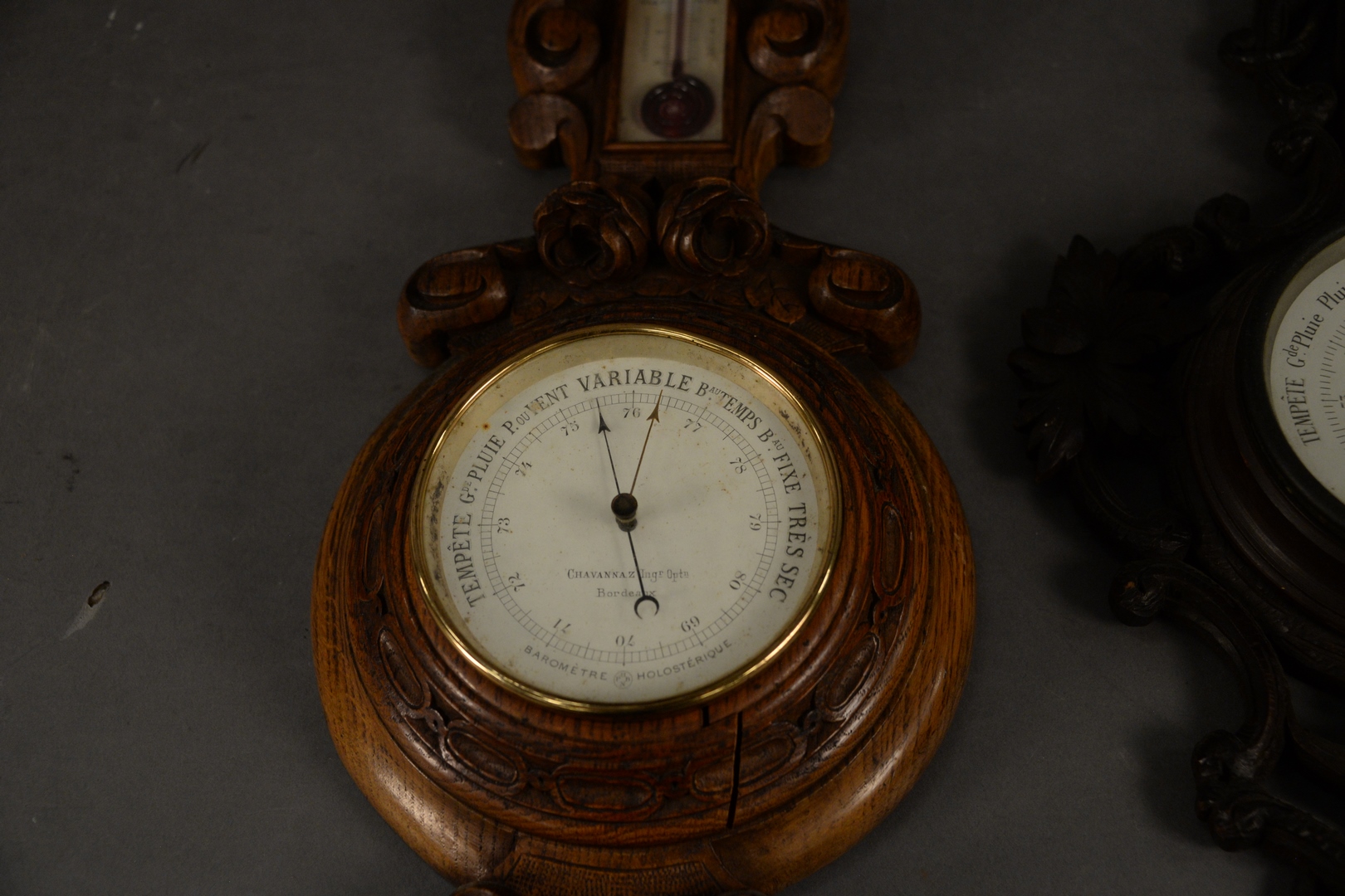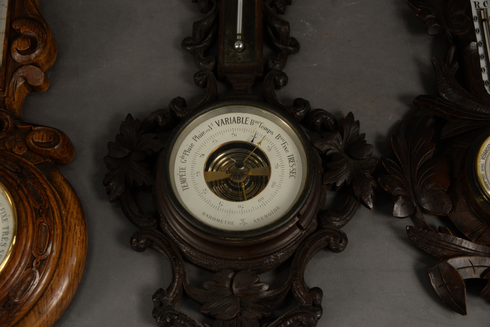 Three French and German Carved Wood Barometers, longest 24 inches.