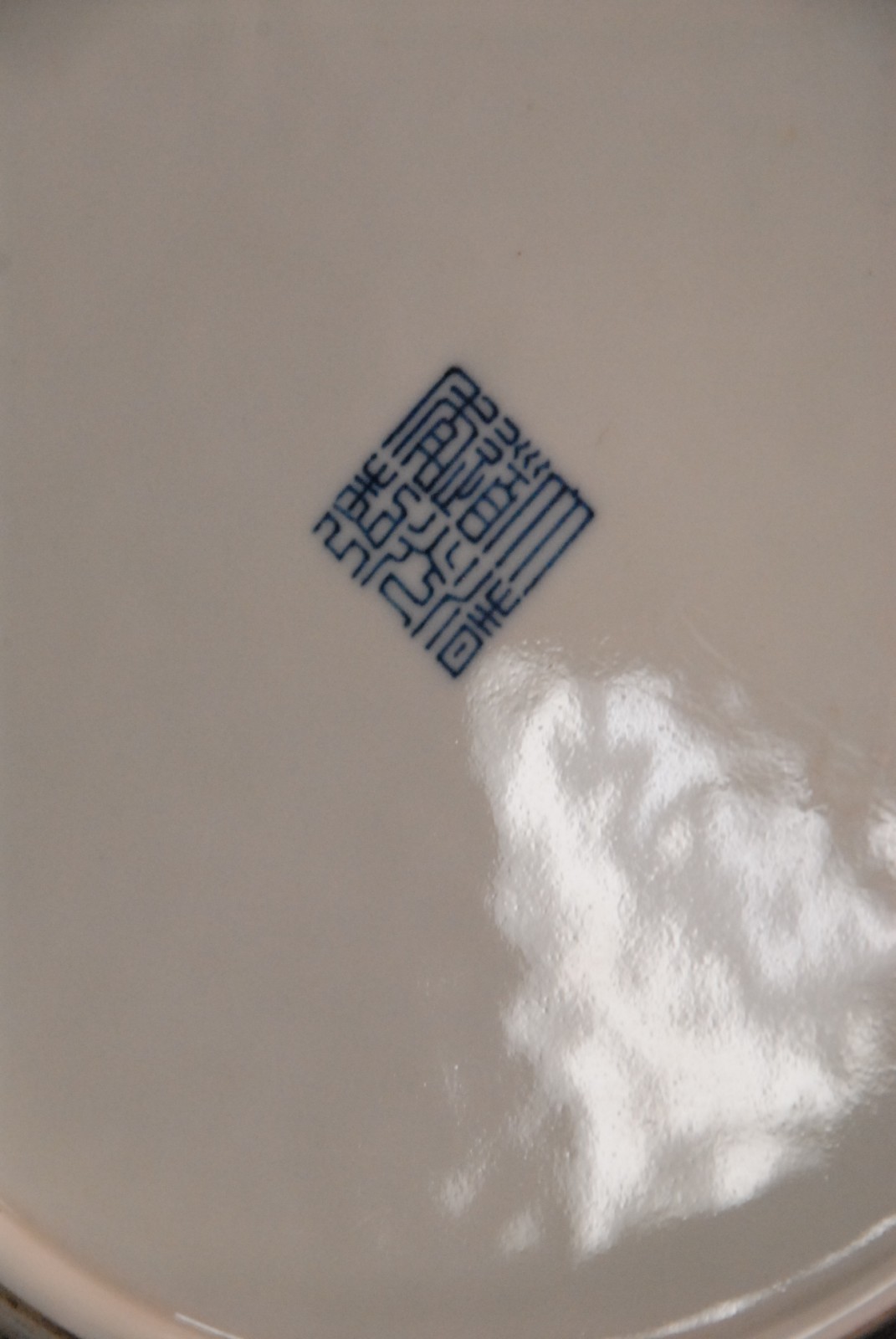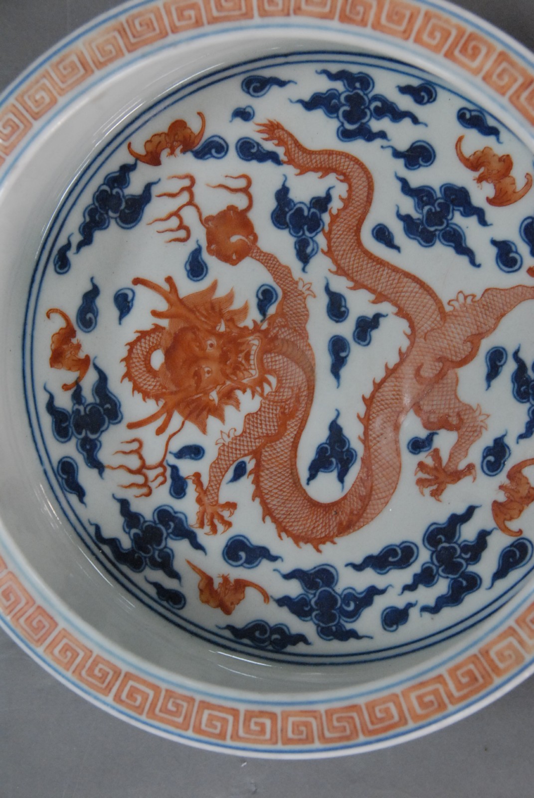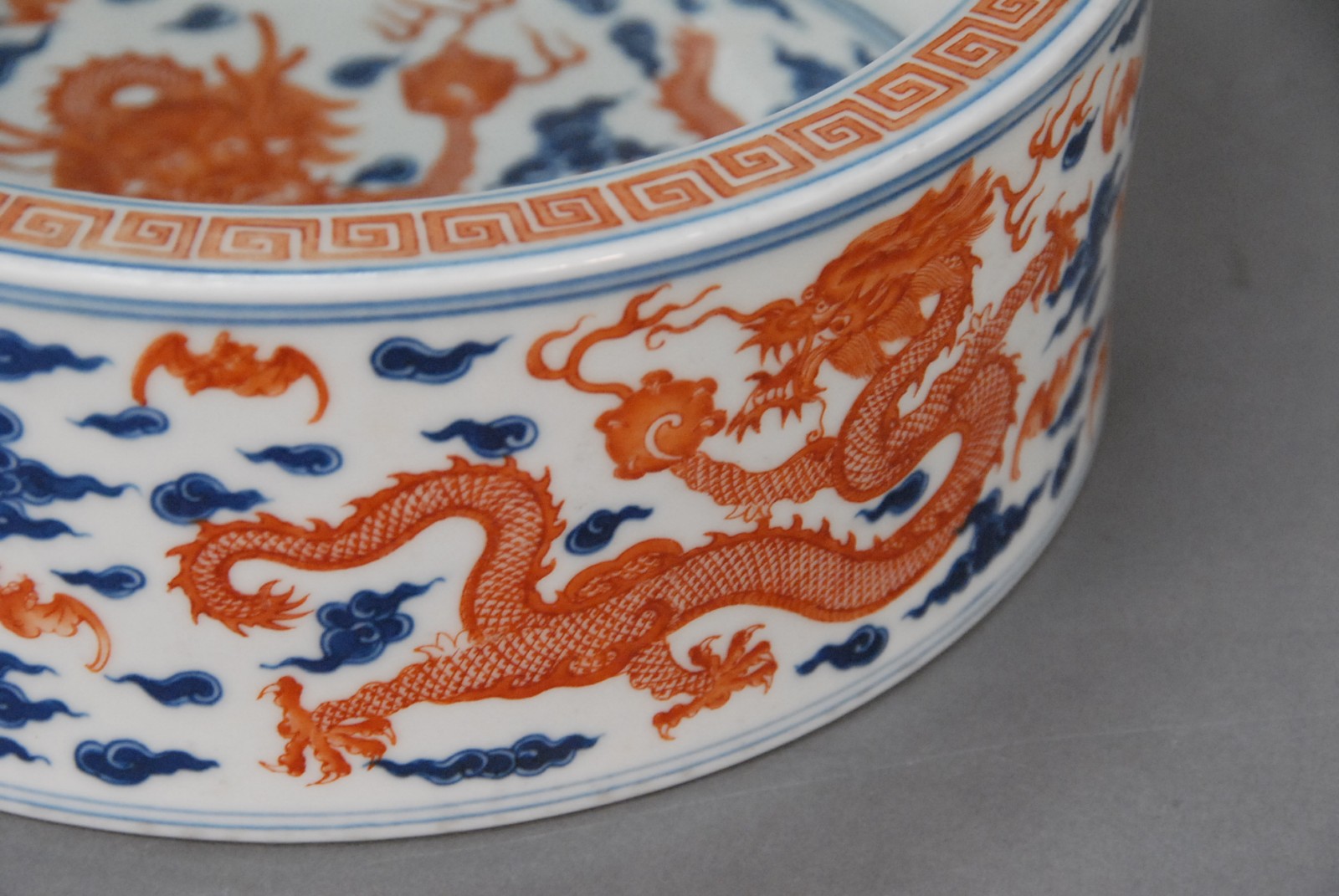 Blue and white porcelain brush washer bowl with coral red design, DaoGuang mark, 19th Century.