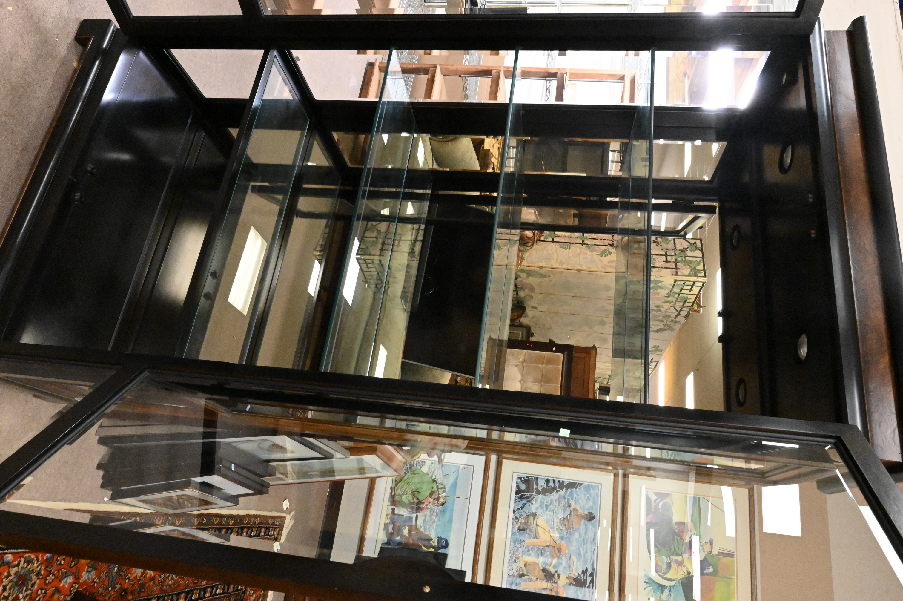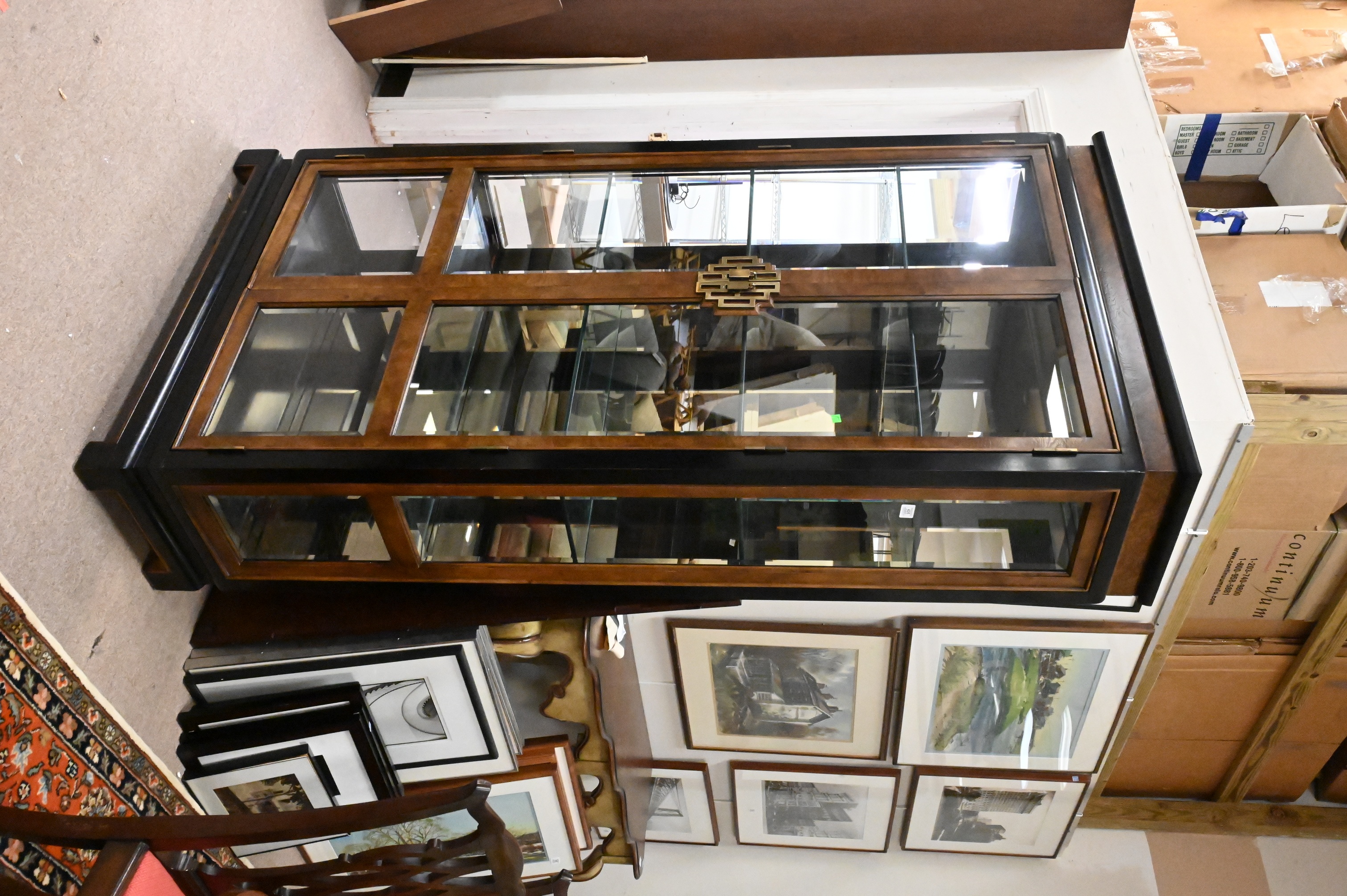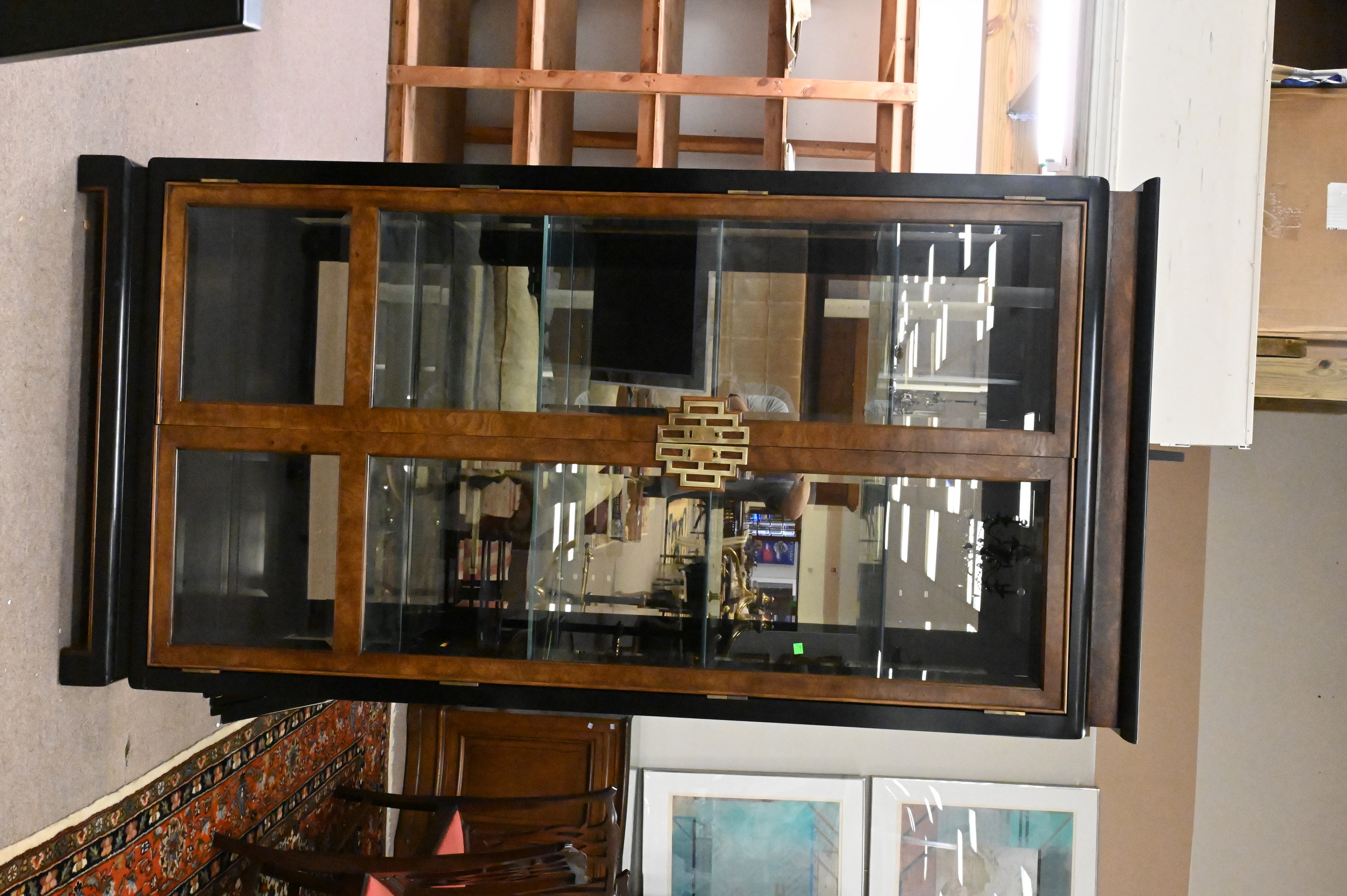 having beveled glass panels and shelving, in Asian taste