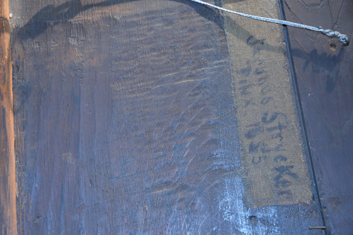 Jacobus Gerritsen Strijcker Strycker 1619-1687 oil on oak panel 17th century portrait bust of Claes Thyssen b. 1588-1658, written on reverse Claes Thyssen, New Amsterdam, married April 5, 1655 Agnietje Strycker sister of Jacobus. 25 1/2 x 20 This is an extremely rare painting by Jacobus Strijcker Strycker, prior to this painting there have been only four paintings known to be painted by the artist. These paintings include 1 Self Portrait which is still owned by the descendants of Jacobus Strijcker Strycker and is currently being exhibited at The Metropolitan Museum of Art, 2 Portrait of Jan Strycker brother of artist and 3 Portrait of Adriaen van der Donck both in private collections and have never been offered for sale, and 4 Portrait of Governor Peter Stuyvensant Currently at the New York Historical Society. It has been said that Jacobus Strycker studied with one of the pupils of Rembrandt possibly Backer, Bol or Flinck.