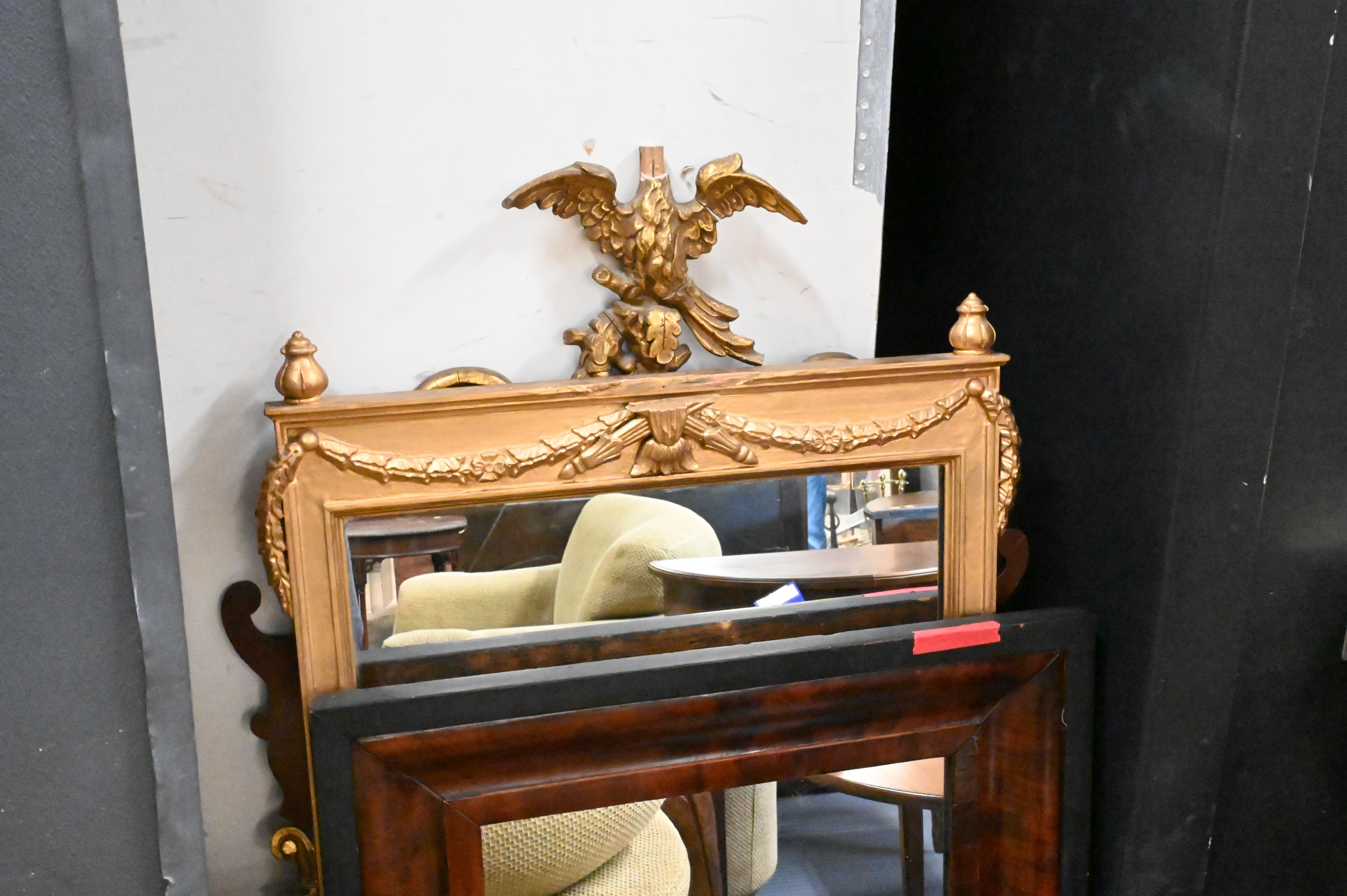 Lot of Five Mirrors, to include Kittinger shaped mirror with shell carving, two ojee mirrors, Chippendale style mirror (as is), along with a federal style mirror (as is), largest 53″ x 26″