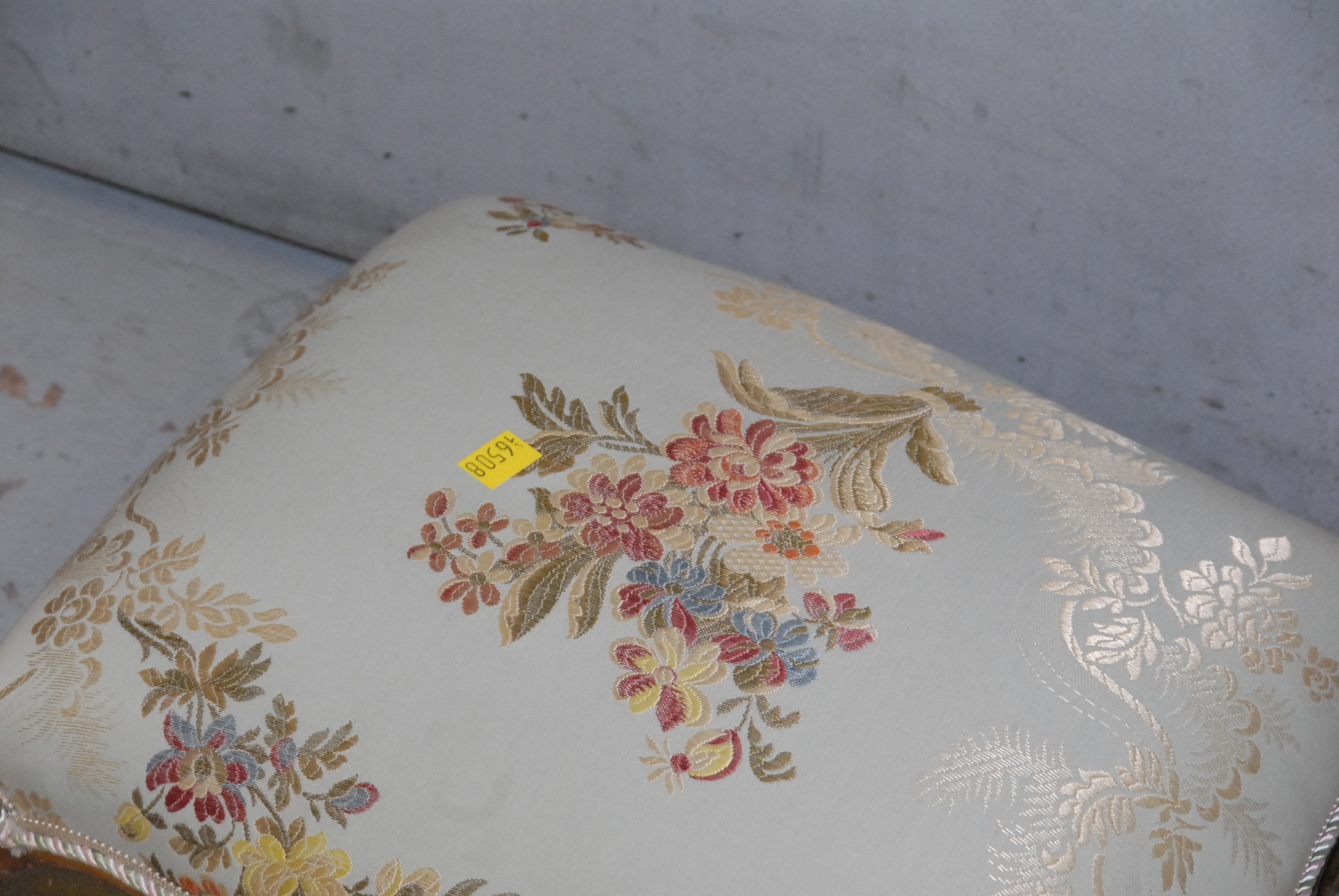 Small French style decorative footstool. Provenance: property from a home in Rockville Center, New York which was decorated by Iris Apfel.
