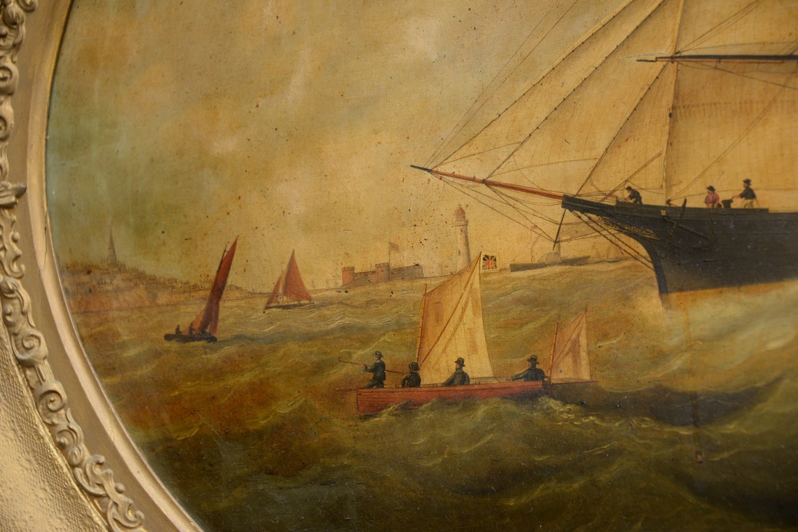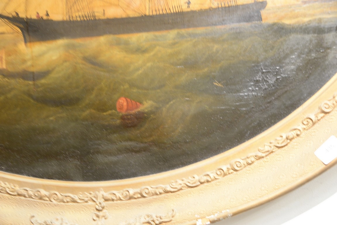 Lot 435: William Gay Yorke 1817-1892 oval oil on canvas American Ship SPIRIDION off Liverpool circa 1860 signed bottom center: Wm Yorke…