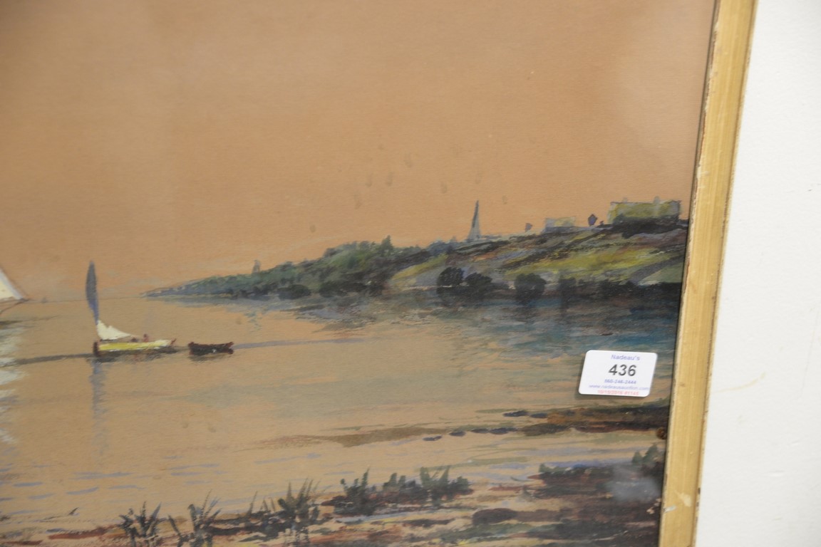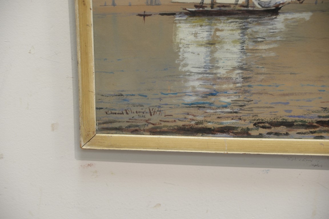Lot 436: Edmund Darch Lewis 1835-1910, watercolor and gouache on paper, Landscape with Sailing Vessels off Shore, signed lower left: Edmund…