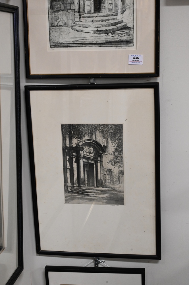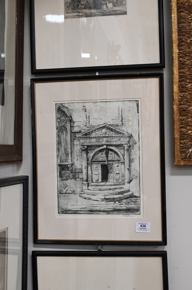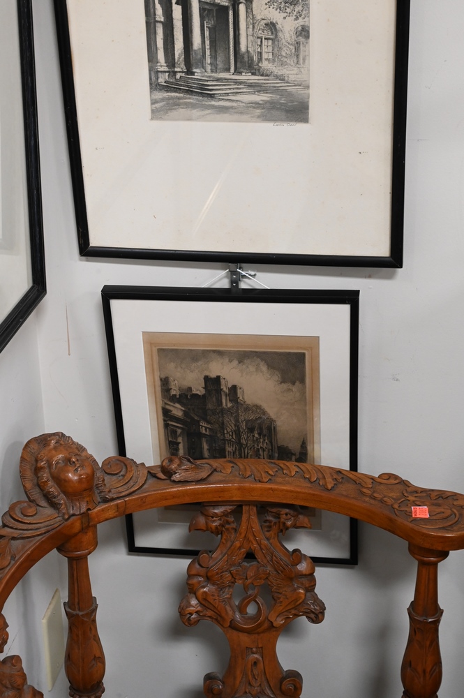 Lot 436: Four Louis Orr (American, 1879 – 1961) Etchings, all of architectural buildings, all pencil signed lower right, largest 11 3/4″ x 8 …