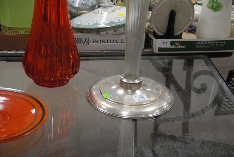 Lot 436: Group of six large art glass pieces to include five large vases and one with silver base and a serving piece.