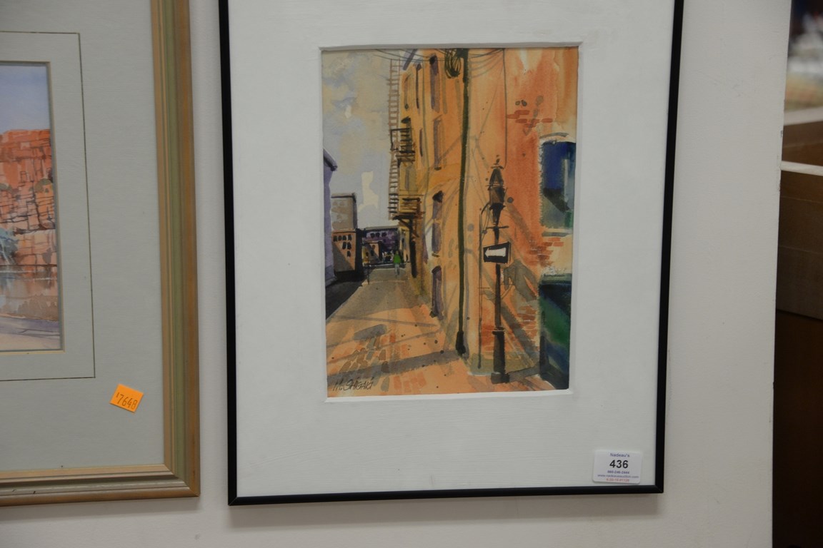 Lot 436: Three framed watercolors including David Byard 1943 Trephina Gorge signed lower right David Byard and two M. Shigaki including …