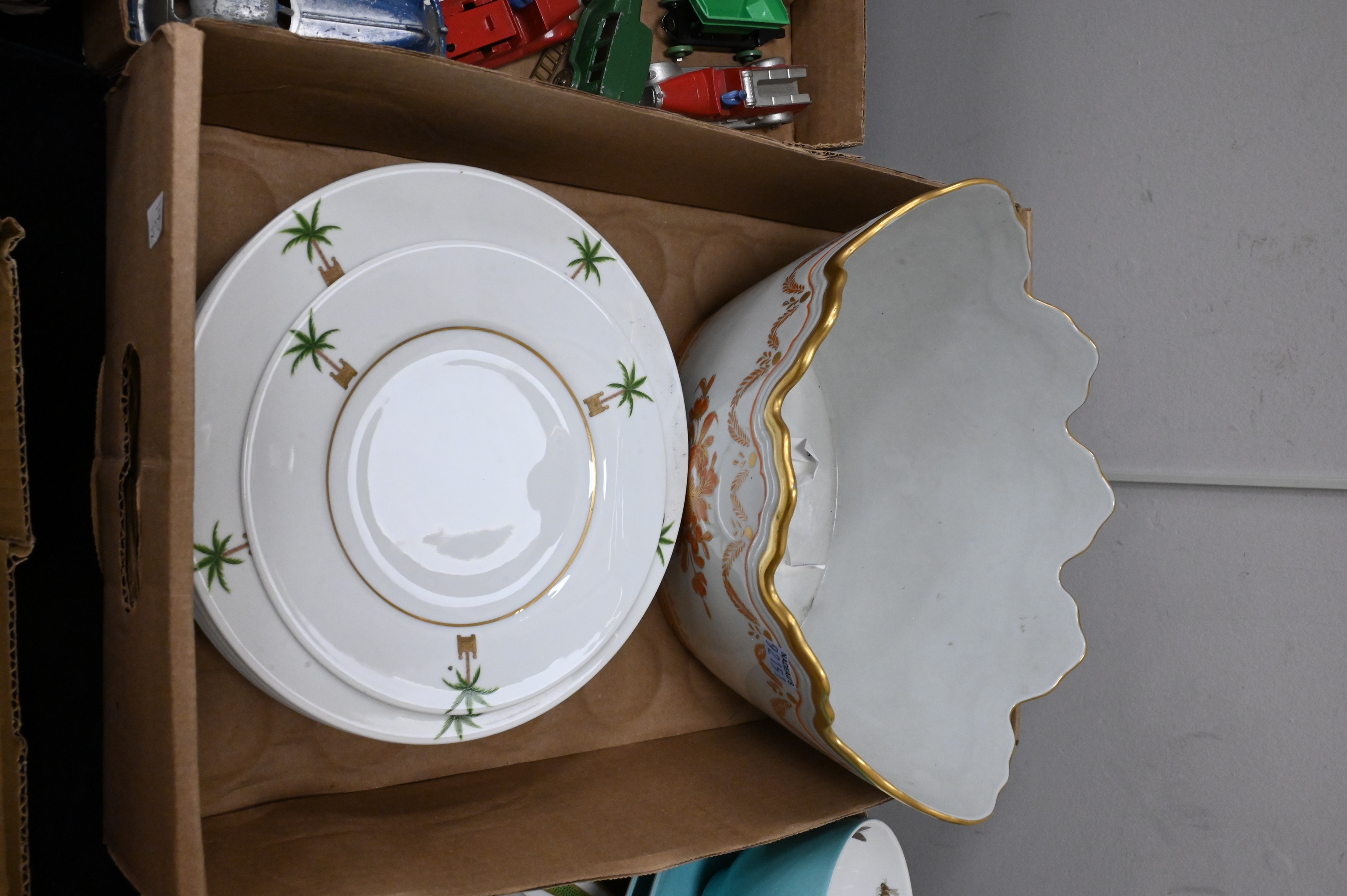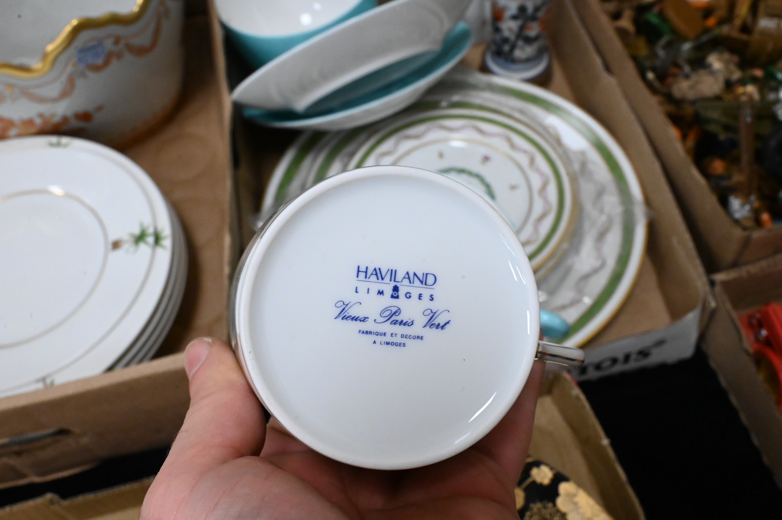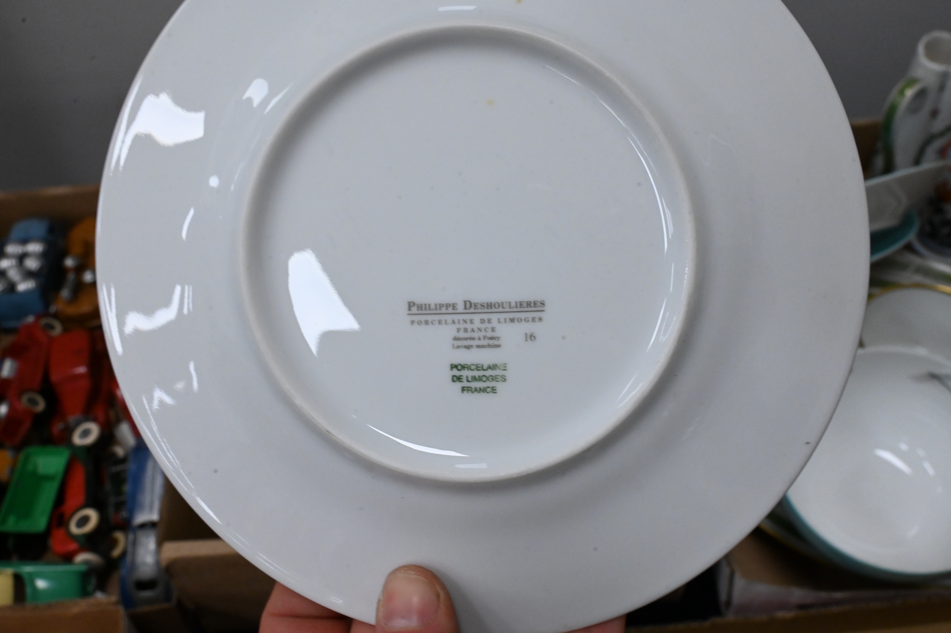 including five deshoulieres for limoges “Maldives” soups, vista alegre mottahedeh cache pot, four haviland limoges “Vieux Paris Vert” pieces, etc. and a set of 16 Fitz and Floyd plates with butterflies and flowers