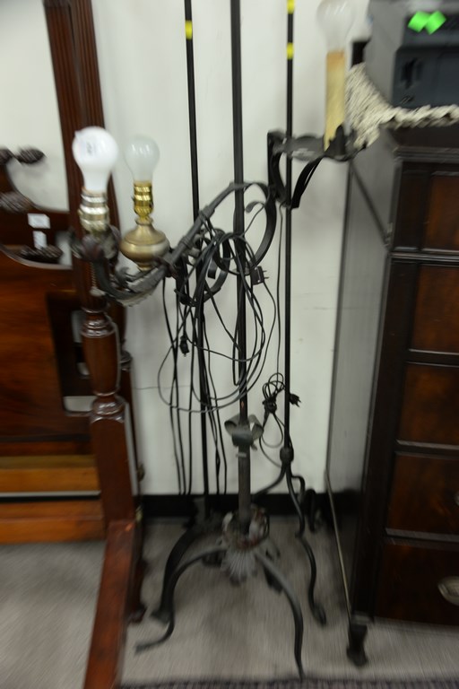 Three Vintage iron floor lamps, ht. 89, ht. 60 in., & ht. 60 in.