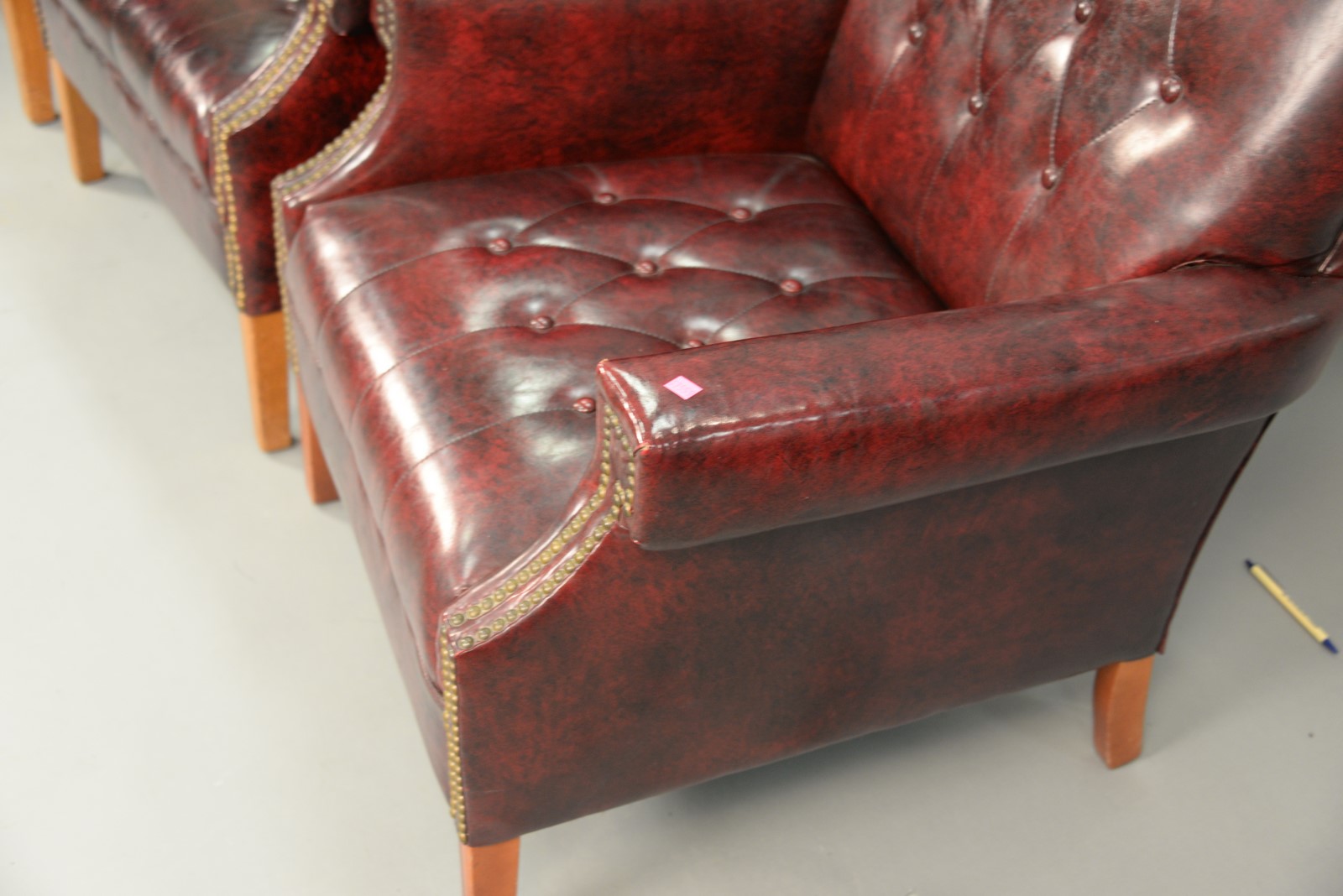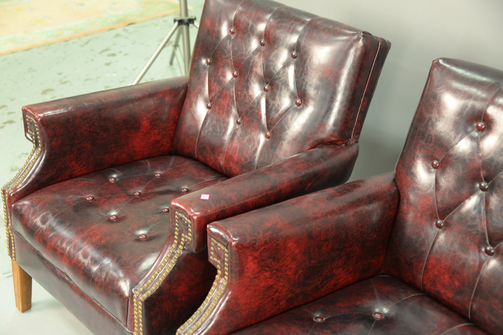 Three vinyl armchairs.