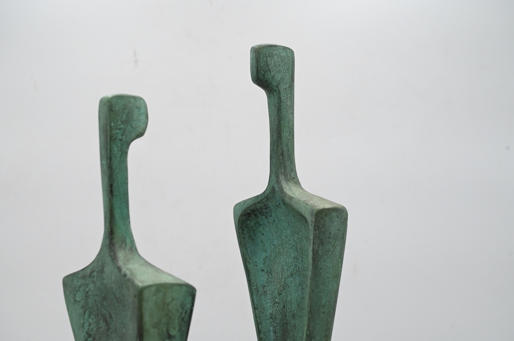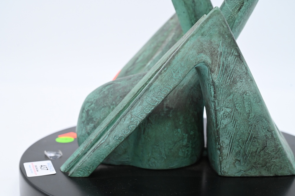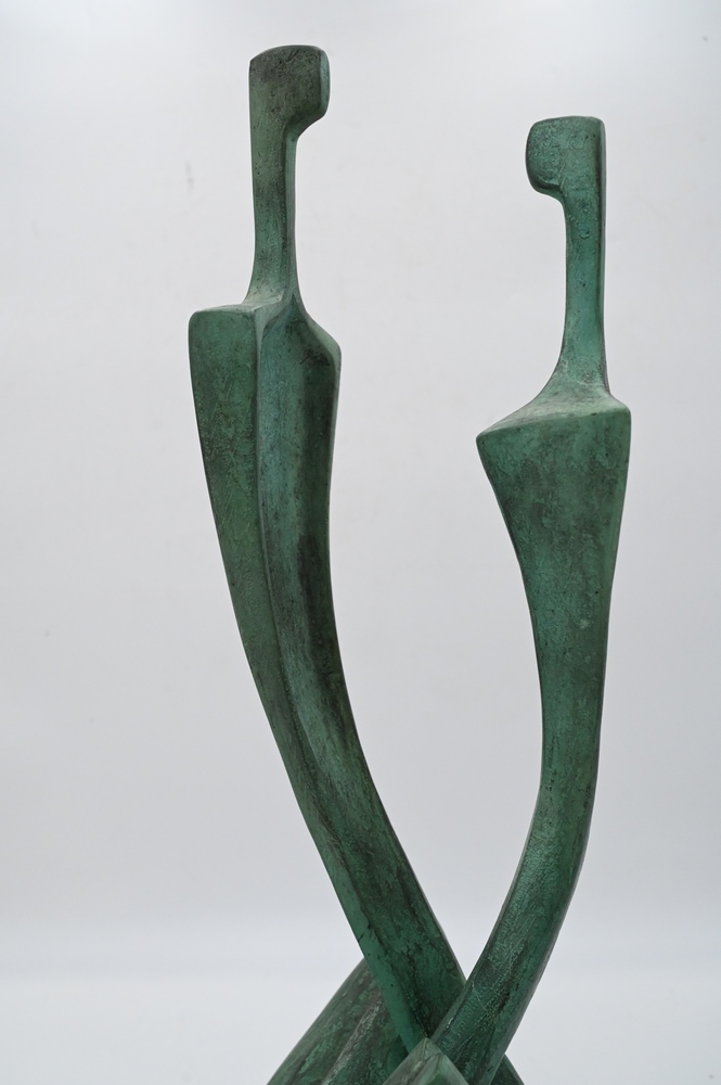 Benshalom, Bronze Sculpture of couple on marble and wood pedestal base, bronze height 30 inches. Provenance: From a private New York City collection.