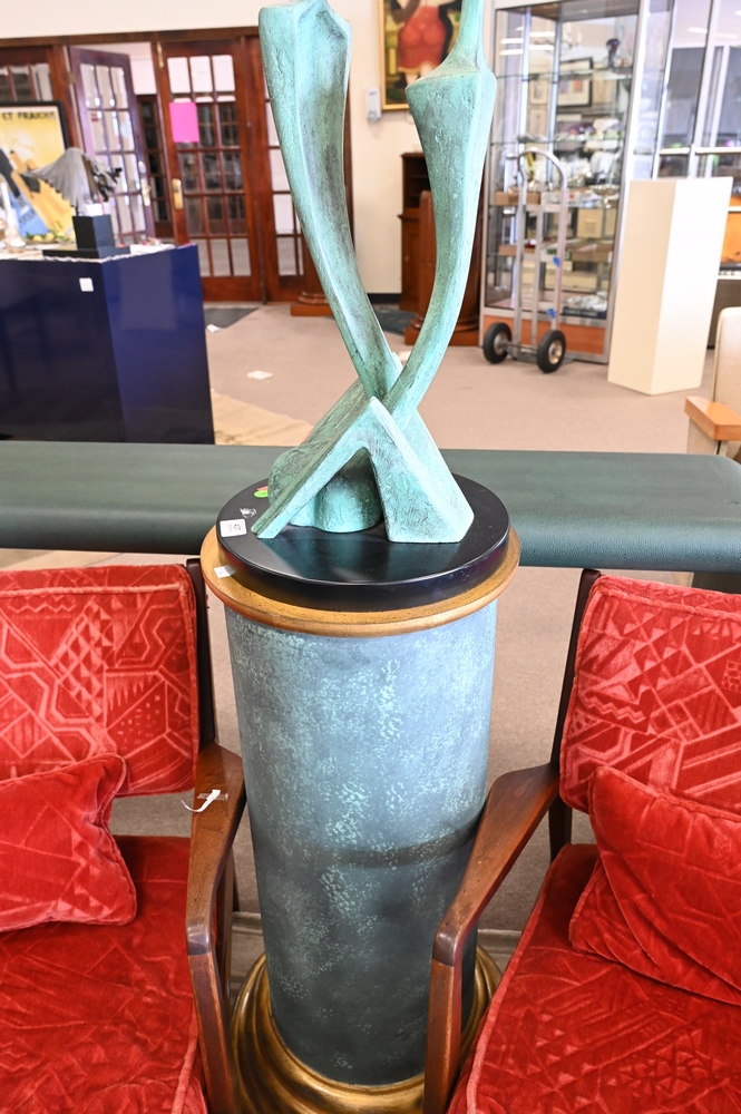 Lot 437: Benshalom, Bronze Sculpture of couple on marble and wood pedestal base, bronze height 30 inches. Provenance: From a private New York City collection.
