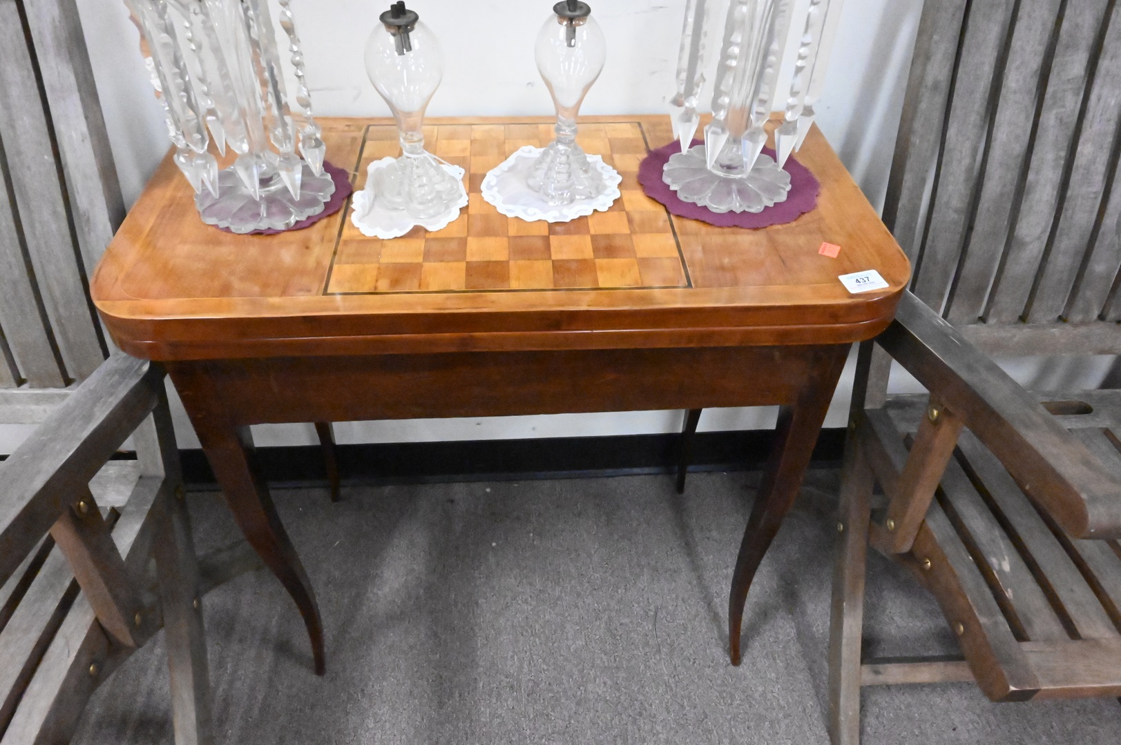 Continental Game Table, having inlaid chess board top, along with a tooled leather interior, 19th century, height 28 inches, top 15″ x 29 1/2″.
