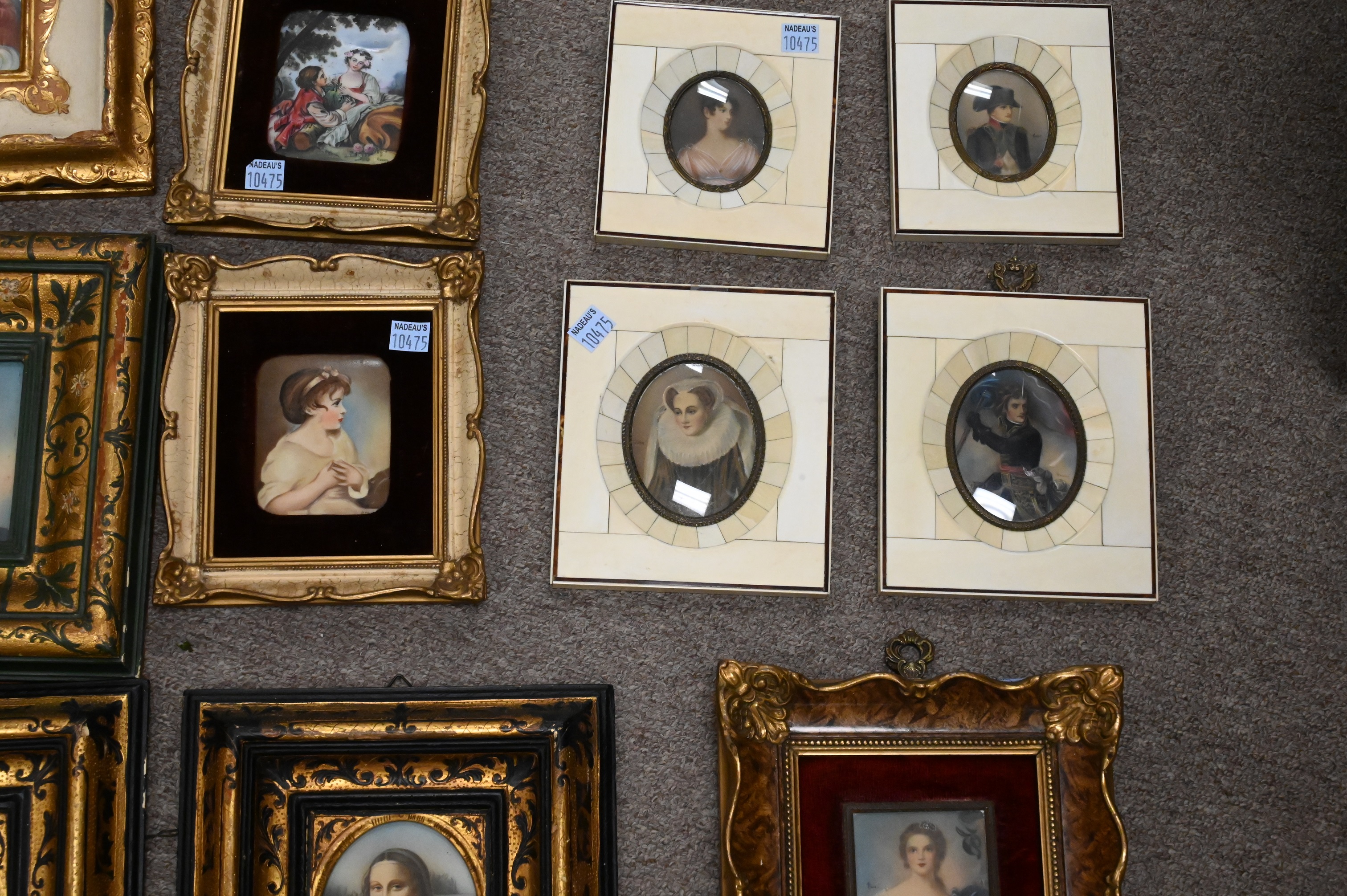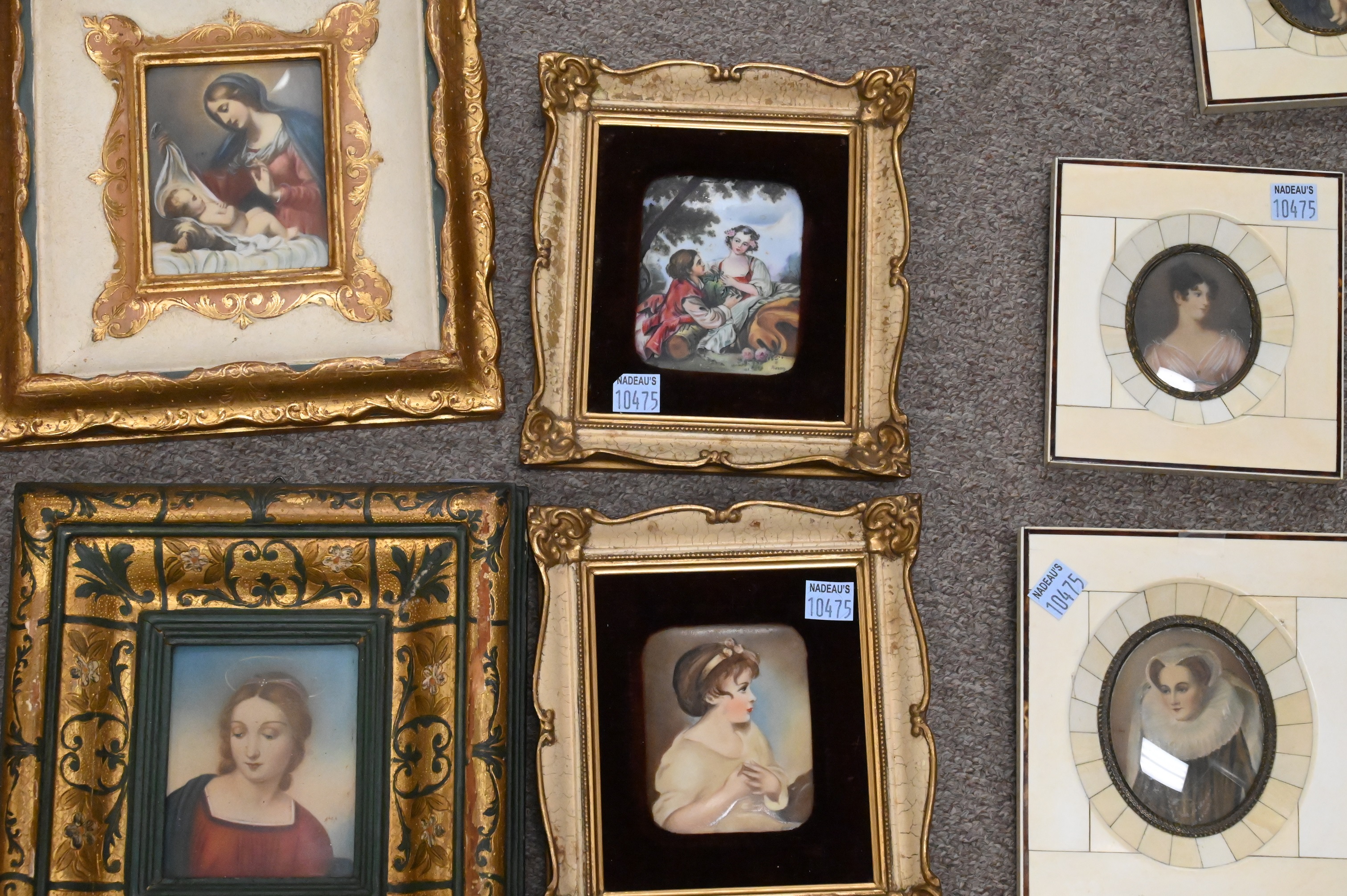 Group of 15 Miniature Paintings and Porcelain Portrait Plaques