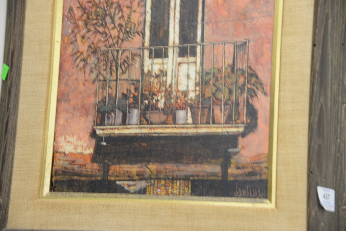 Lot 437: John Lentine 1930-1968 Il Balconcino oil on canvas signed lower right Lentine, Feingarten Galleries label on reverse. 16 x 12