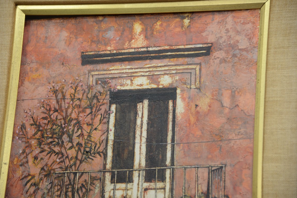 John Lentine 1930-1968 Il Balconcino oil on canvas signed lower right Lentine, Feingarten Galleries label on reverse. 16 x 12
