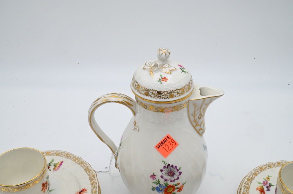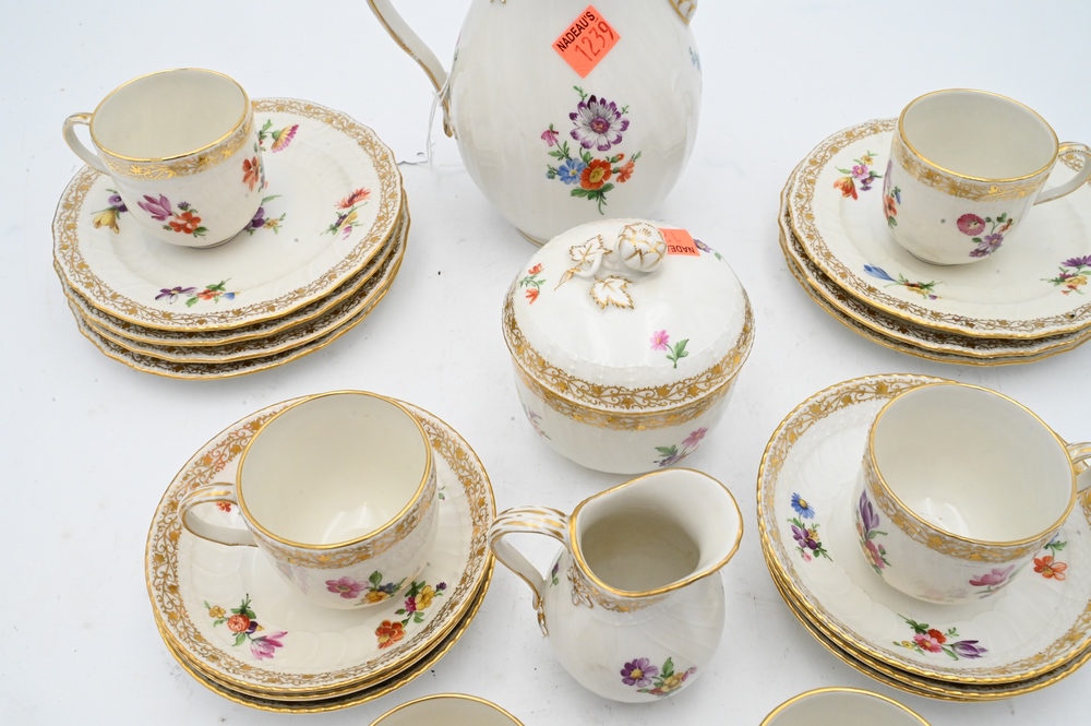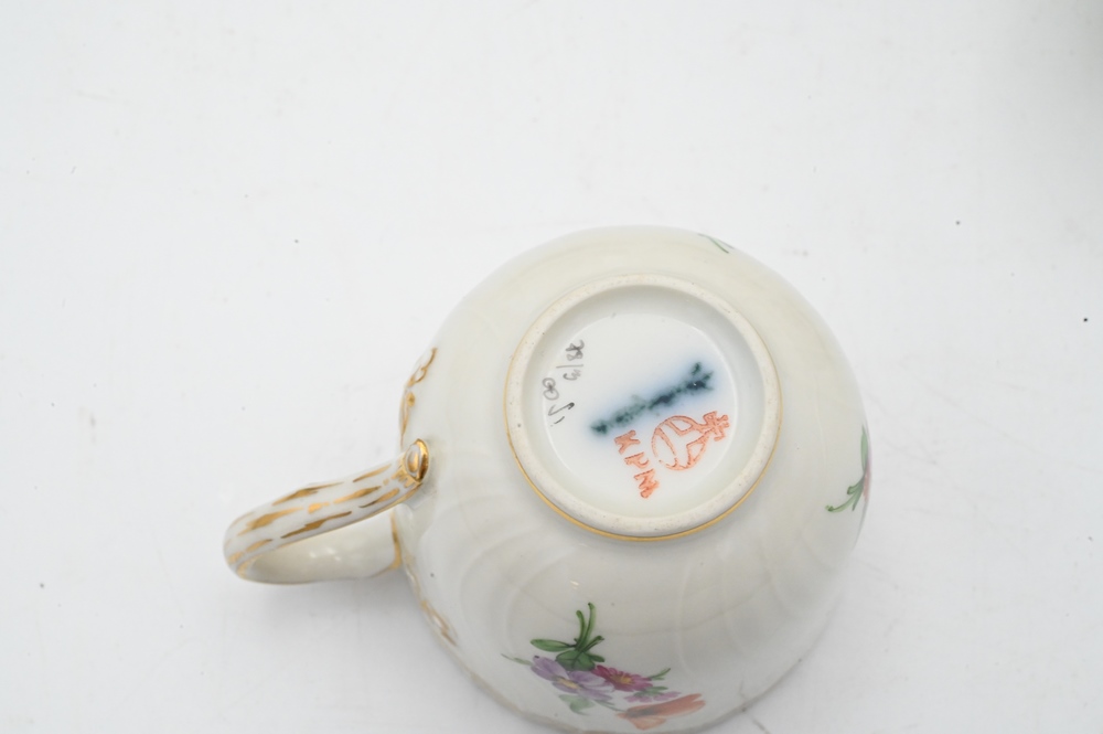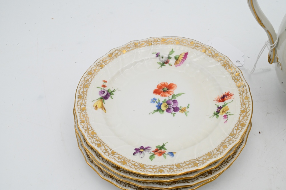 KPM Porcelain, to include a tea set, dessert plates, cups, saucers, teapot, sugar and creamer.