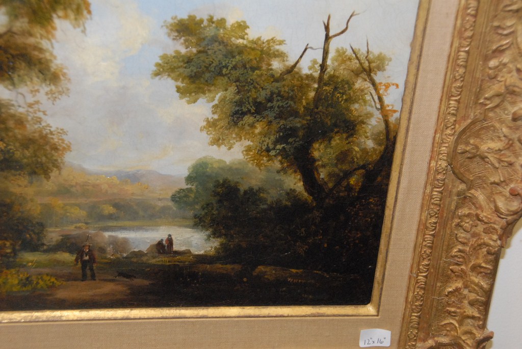 Lot 437: Thomas W. Whitley PLEIN AIR HUDSON RIVER VALLY GOING FISHING oil on canvas signed lower right Whitley 12 x 16