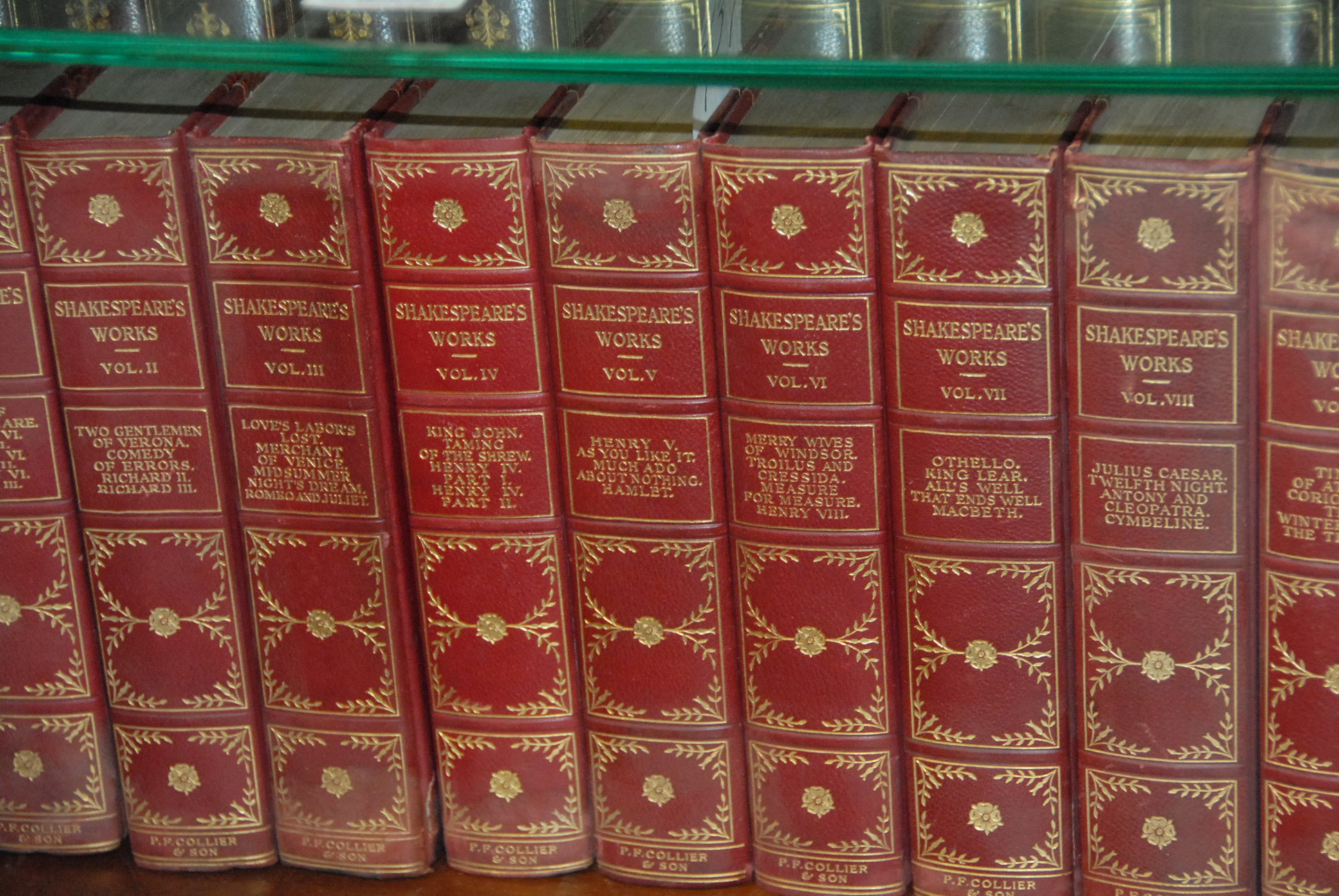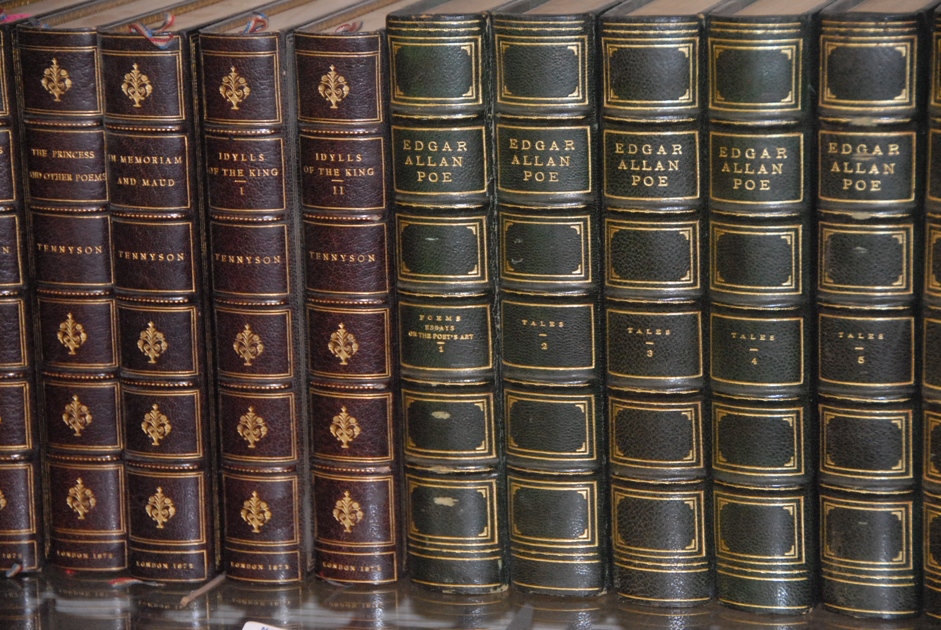 Lot 437: Twenty-Two books including Edgar Allen Poe The Complete Works, 6 volumes, G.P. Putnam’s Sons The Knickerbocker Press 1902 The Works of Tennyson, six volumes and Shakespeare’s Works, 10 volumes, P.F. Collier and Son.
