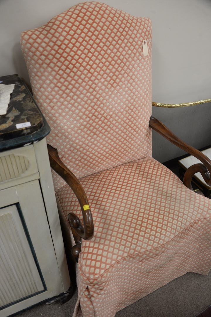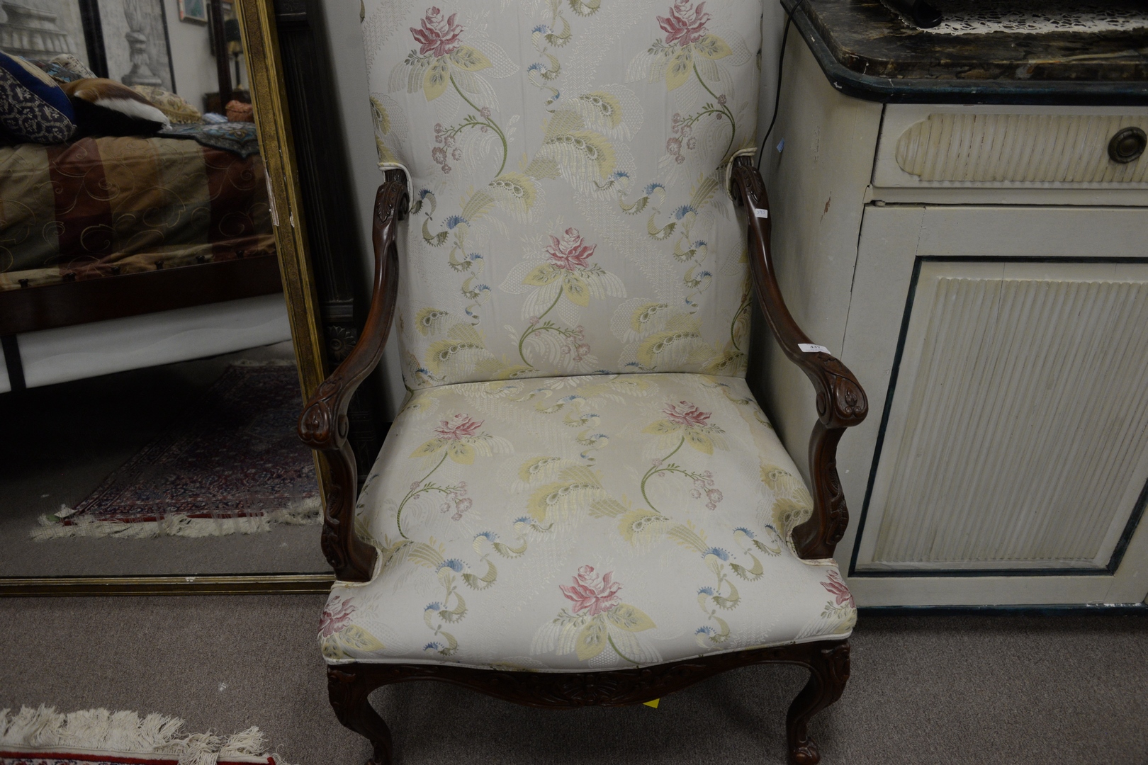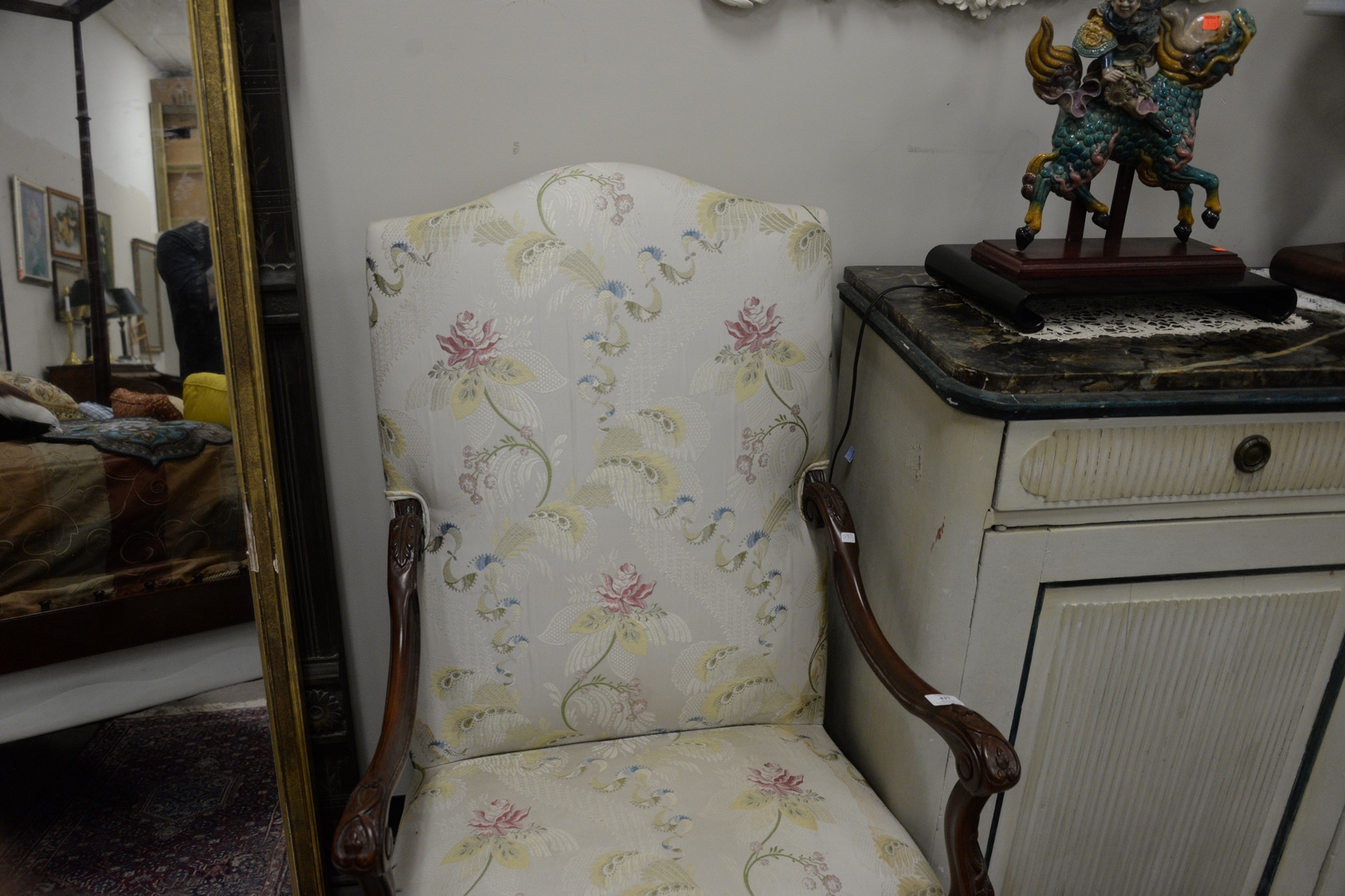 Two Continental Style Occasional Chairs, height 46 1/2 and 49 inches.