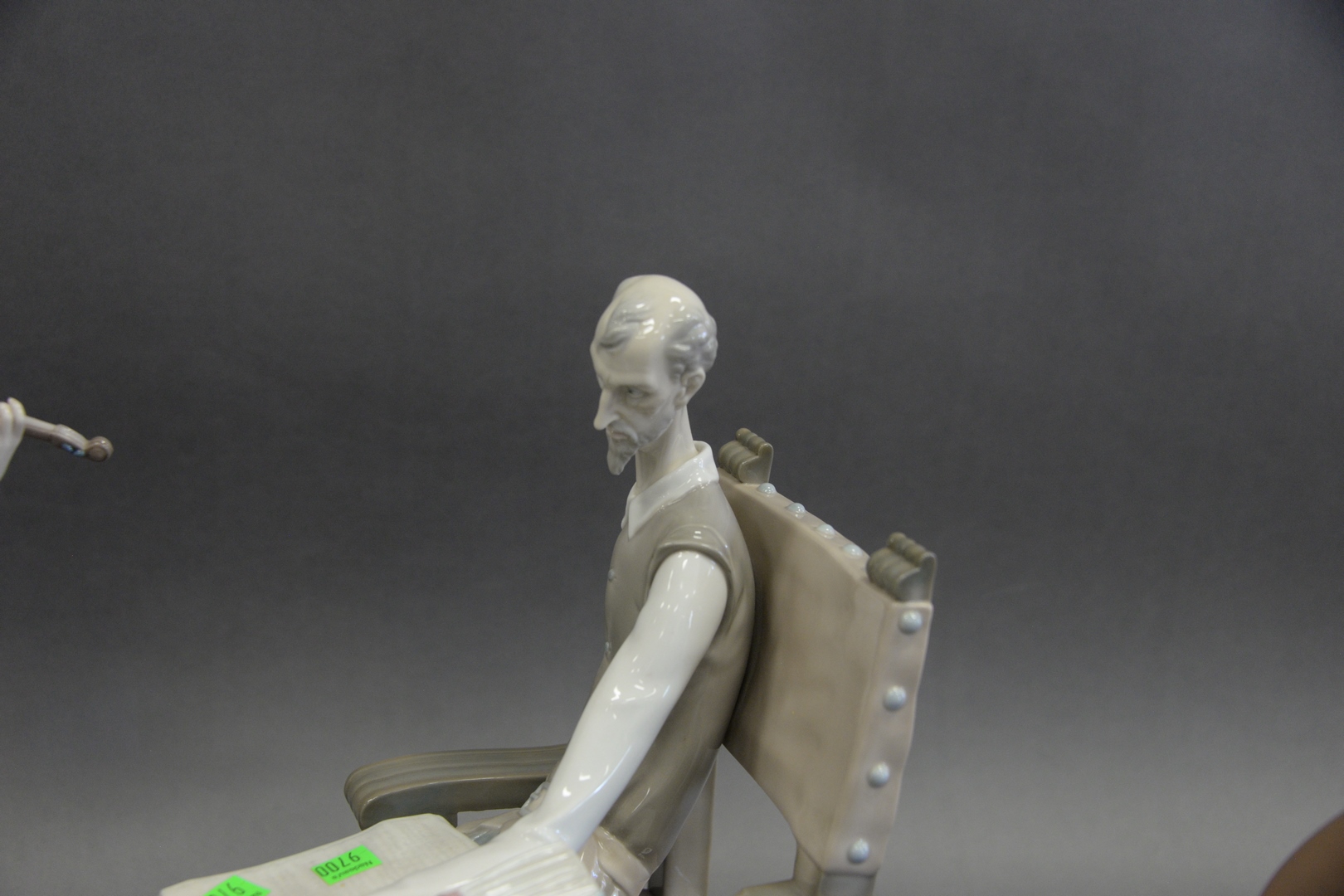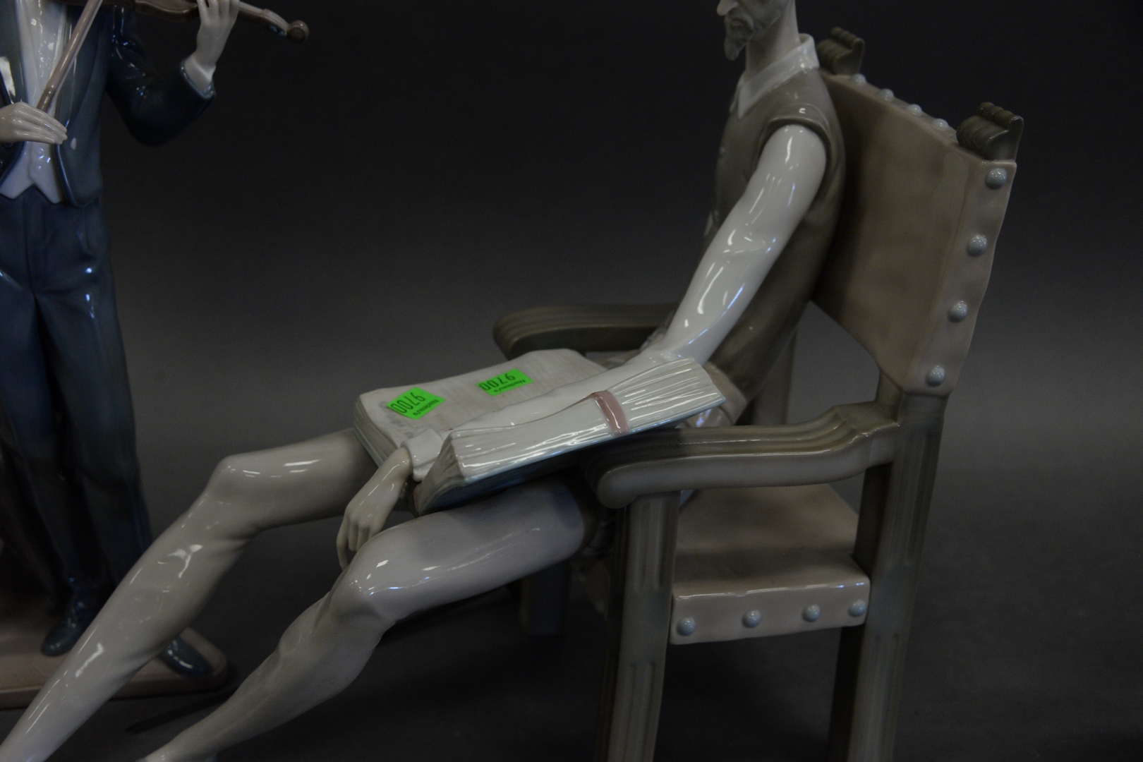 Lot 437: Two Large Lladro Porcelain Figures, to include Don Quixote with a sword, along with a violin player, both marked to the underside, height 16 1/2 inches. Provenance: Estate of James Wadhams
