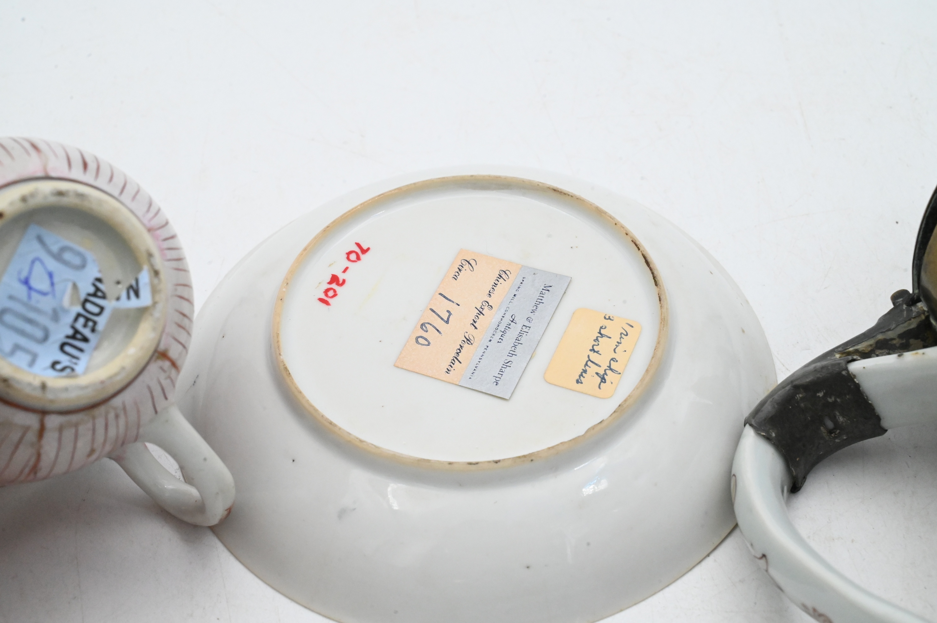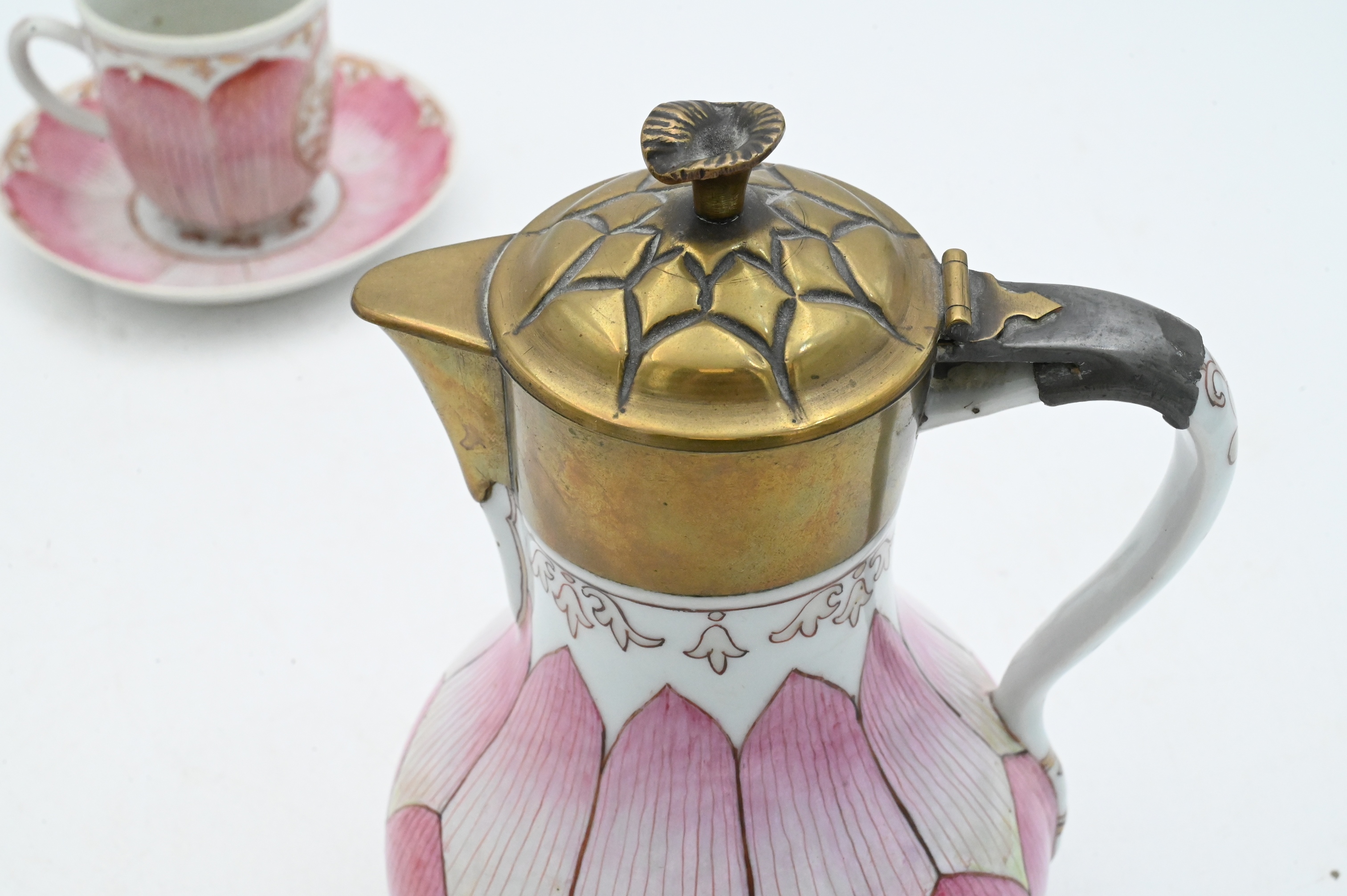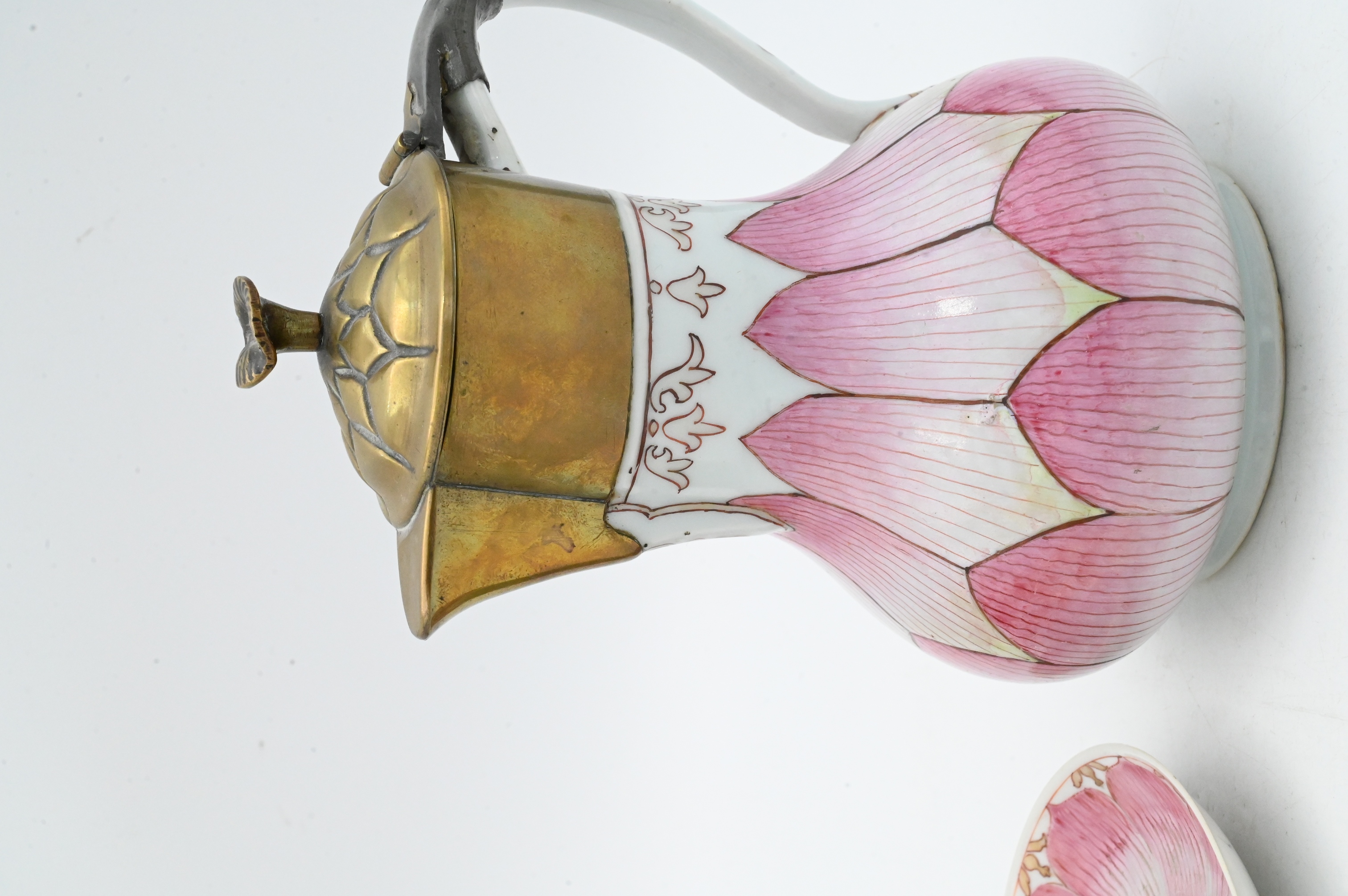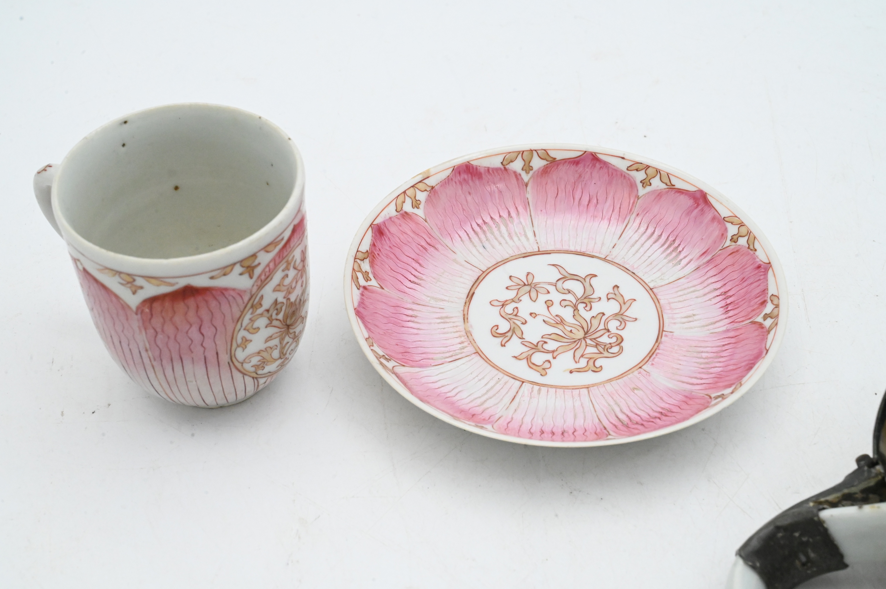 Lot 438: Chinese Pink Lotus Petal Ewer, Tea Cup, and Saucer