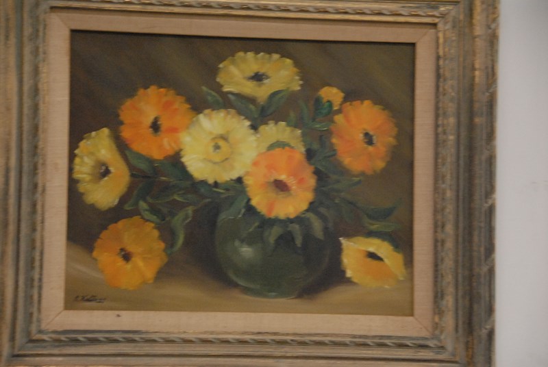 Group of four oil paintings, one nude female, two still life, and one standing black man. 19 x 15 to 30 x 24