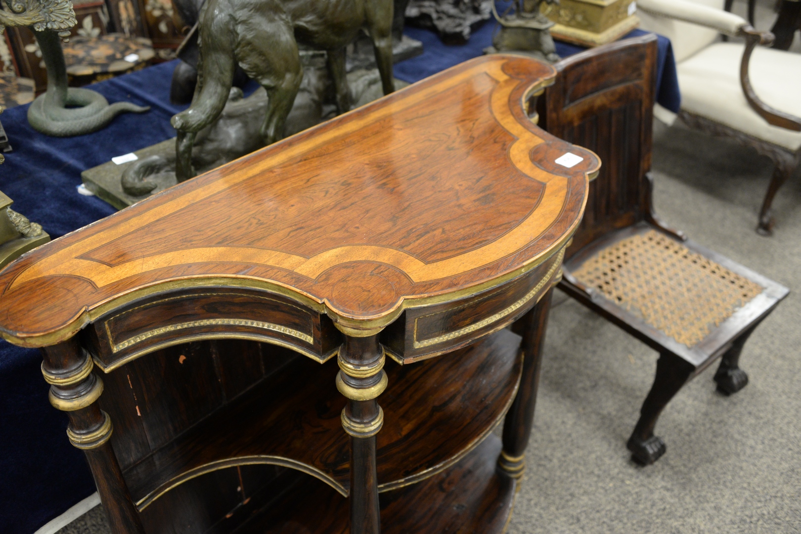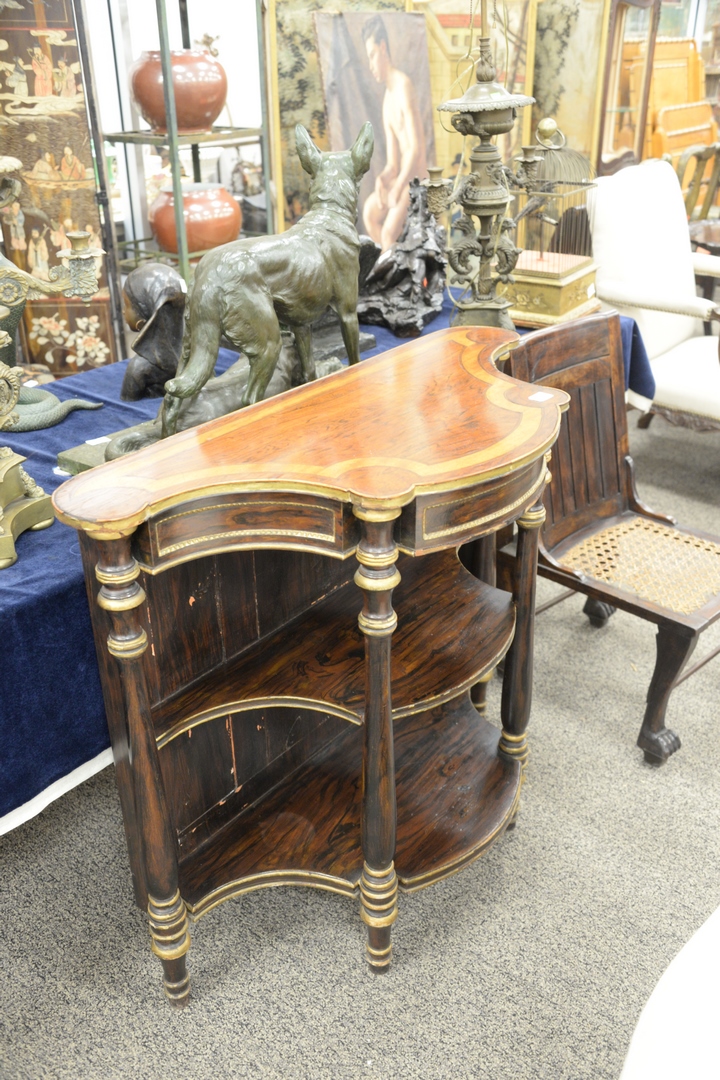 Inlaid Server With Three Shelves, having turret corners, height 35 inches, top 40 x 17.