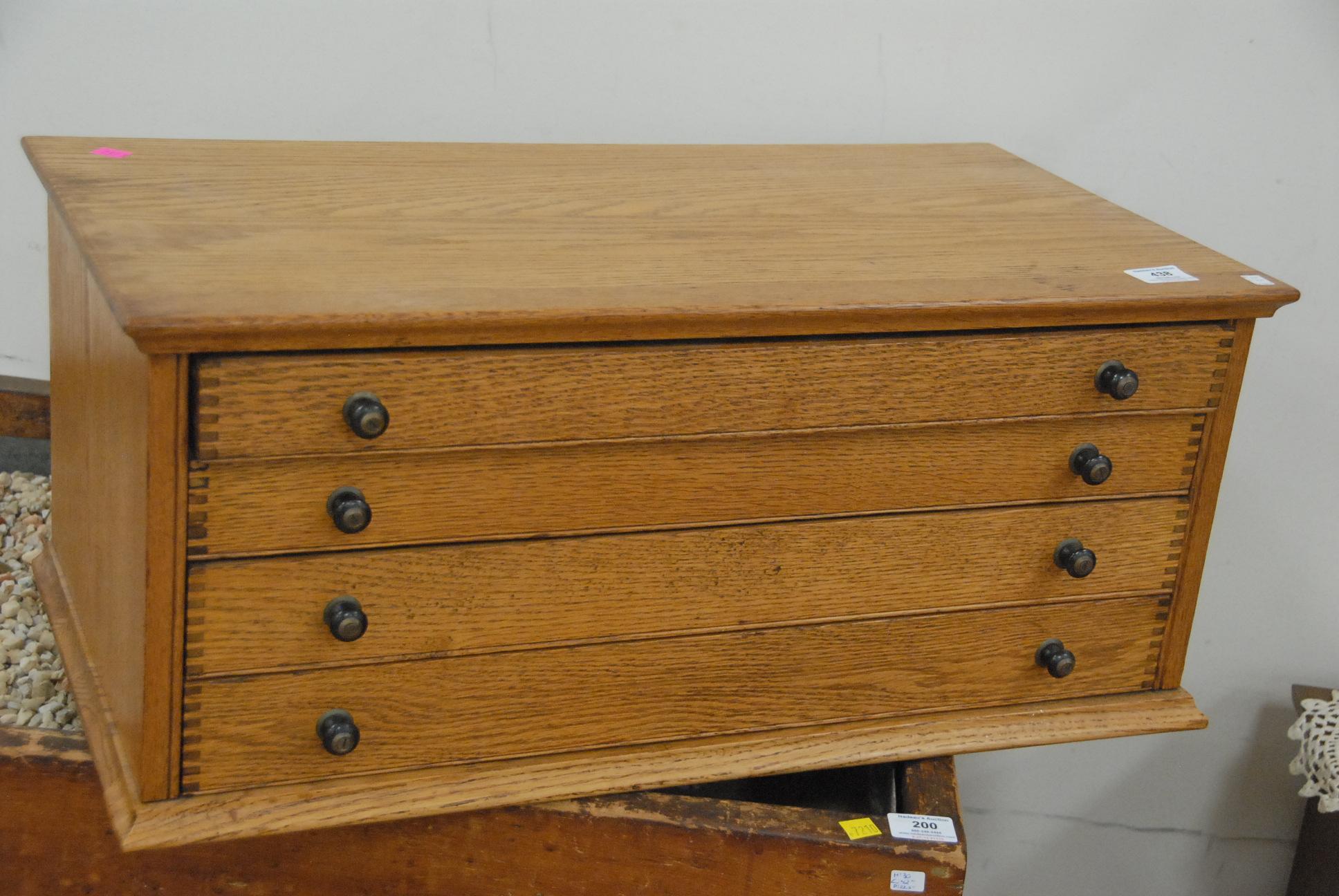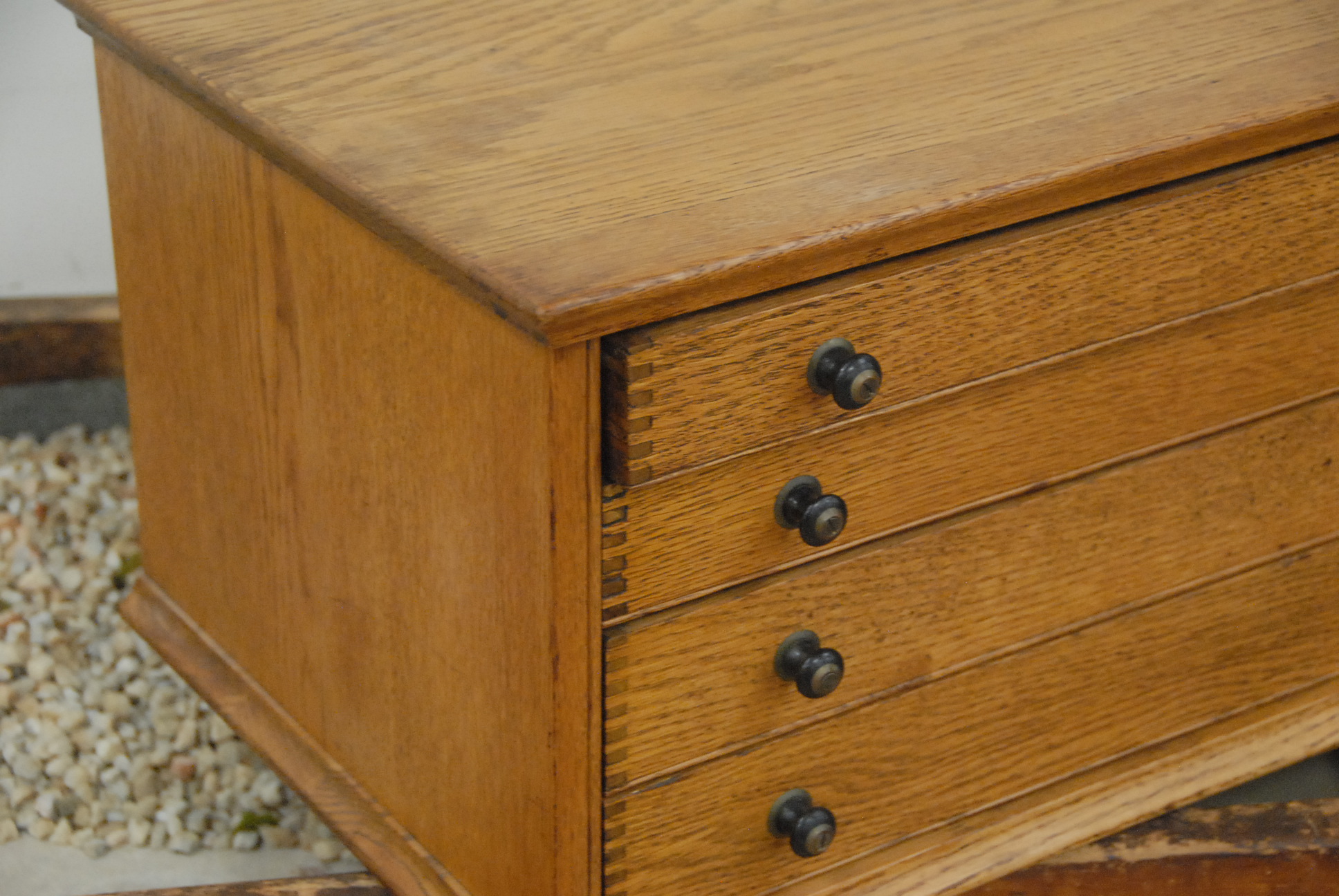 Oak four drawer lens cabinet.ht. 12 in. wd. 27 in.