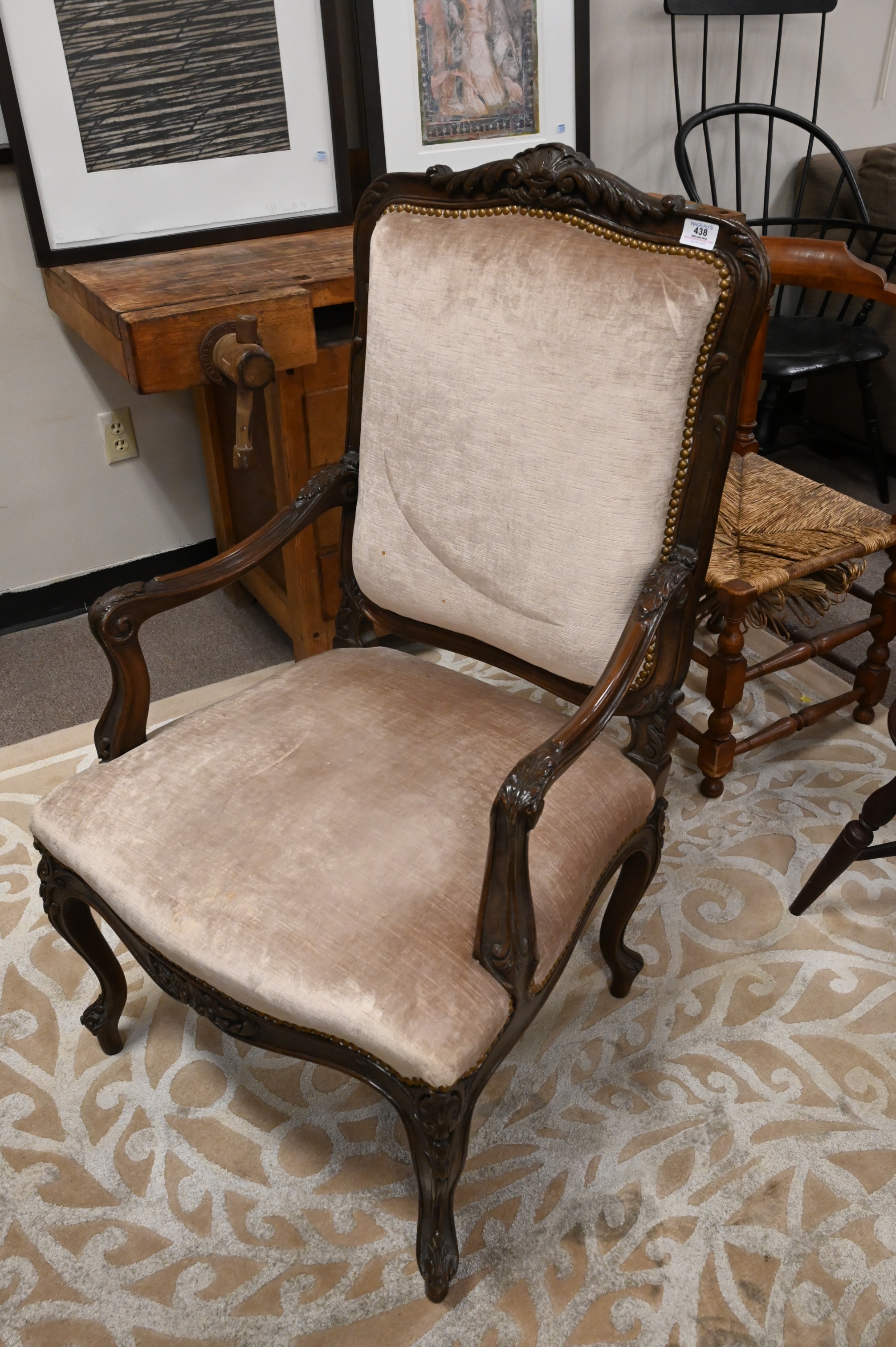 Lot 438: Pair of Louis XV Style Carved Open Arm Chairs