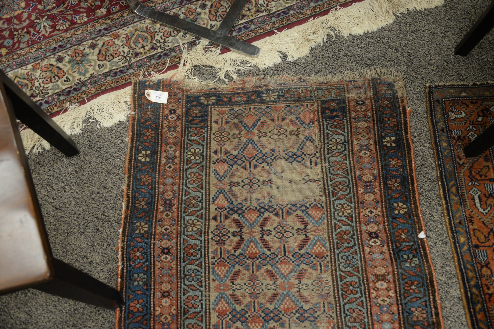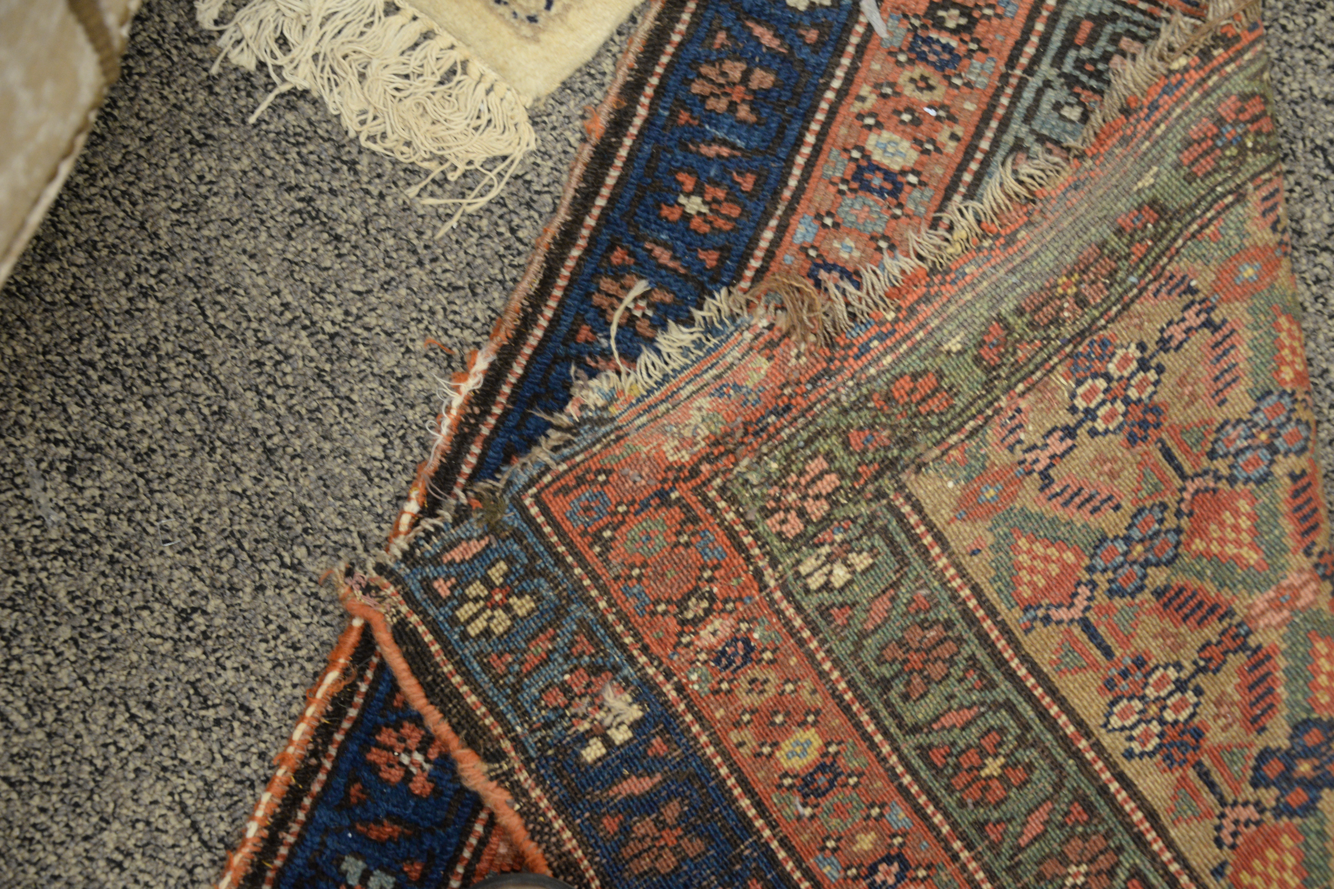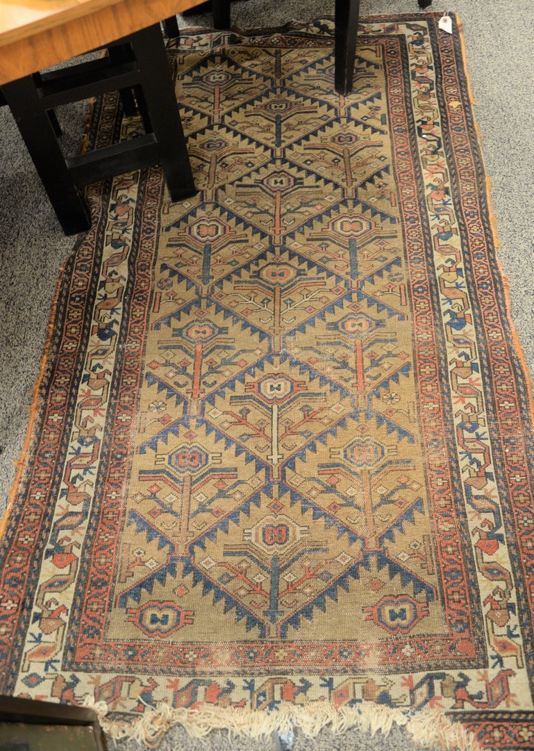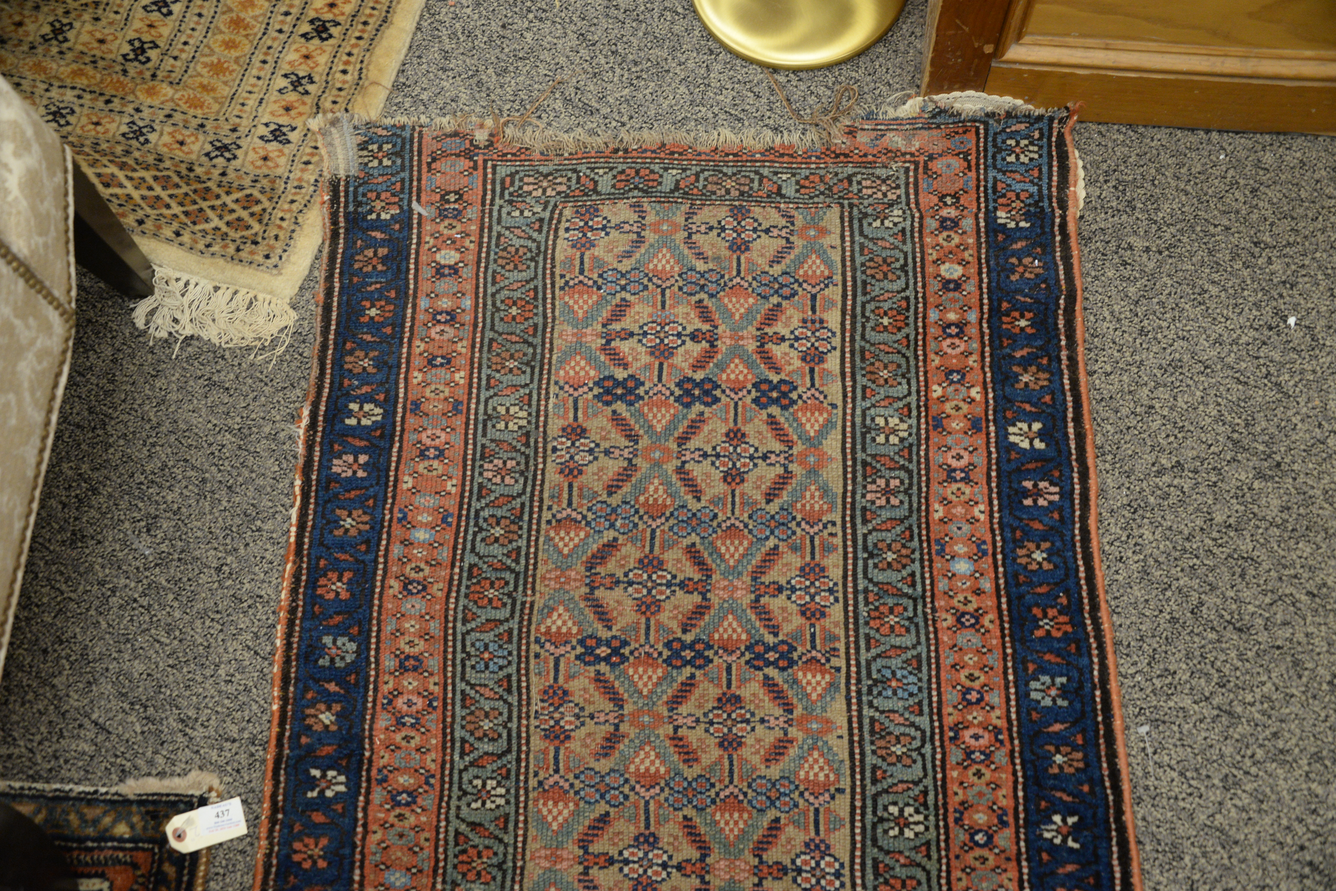 Lot 438: Two Oriental Rugs, to include one runner, both with ends frayed, 3’5″ x 6’4″ and 2’7″ x 11’10”. Provenance: The Estate of Alan Gans, Mulberry Point, Guilford.