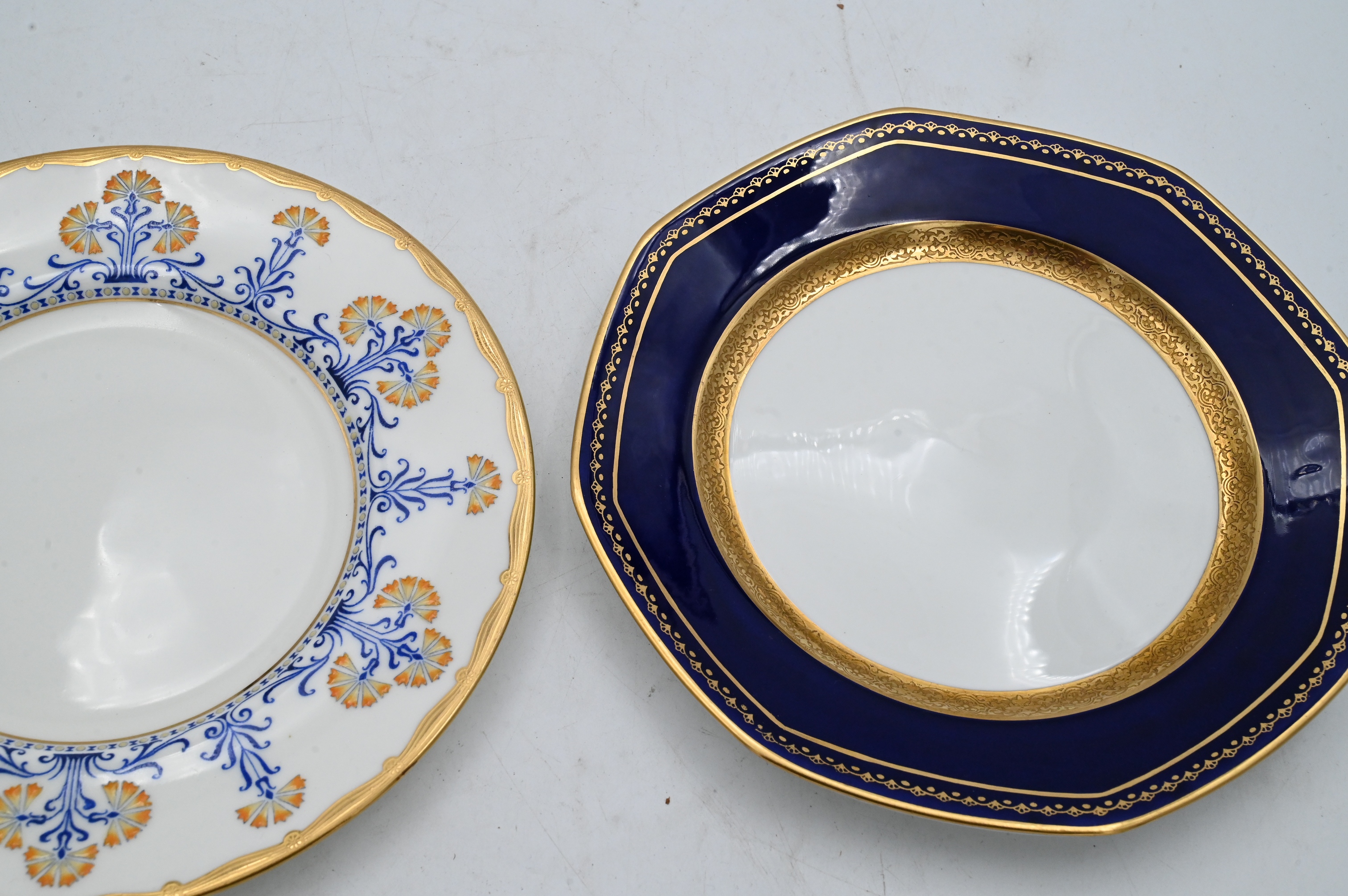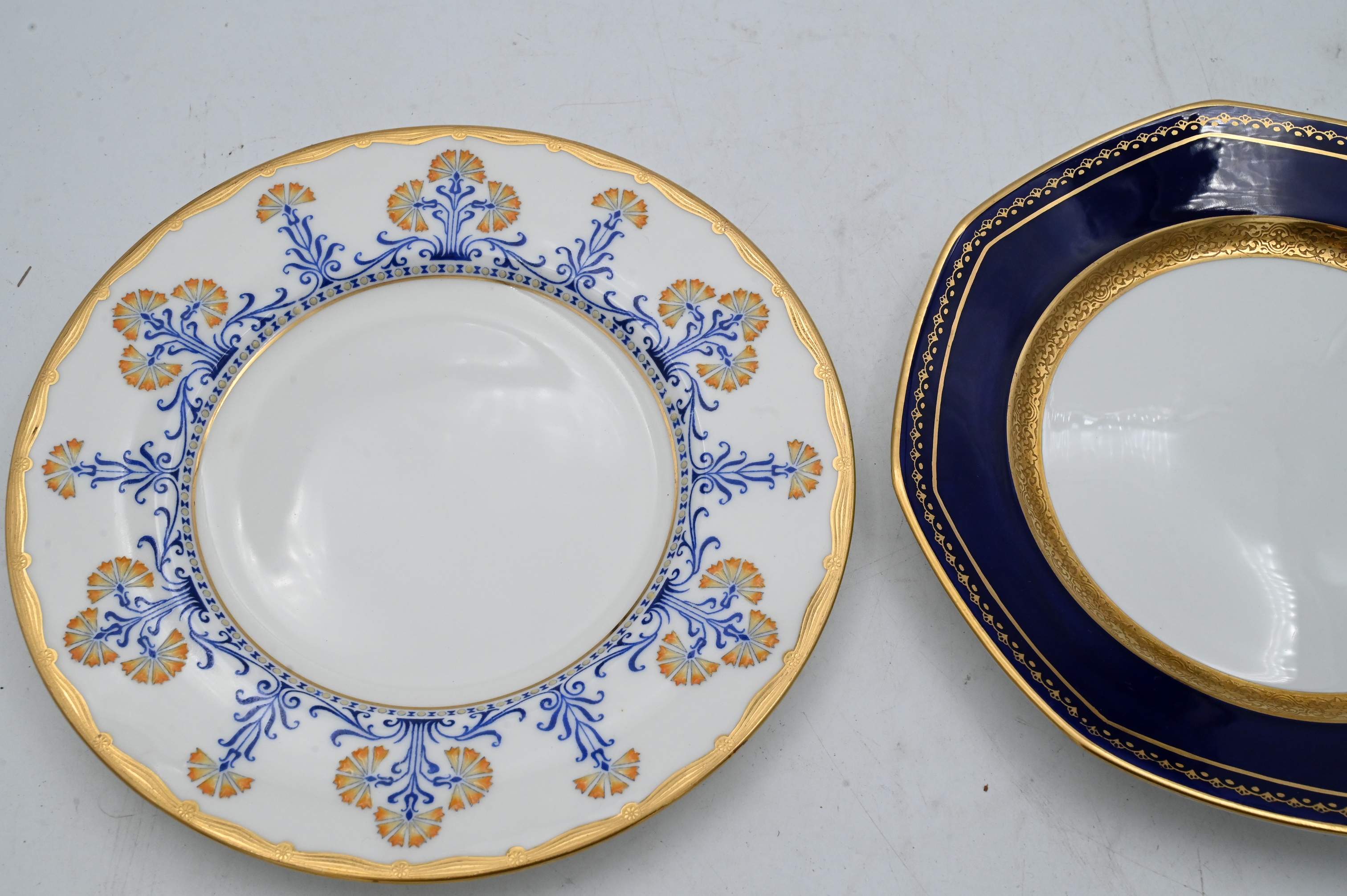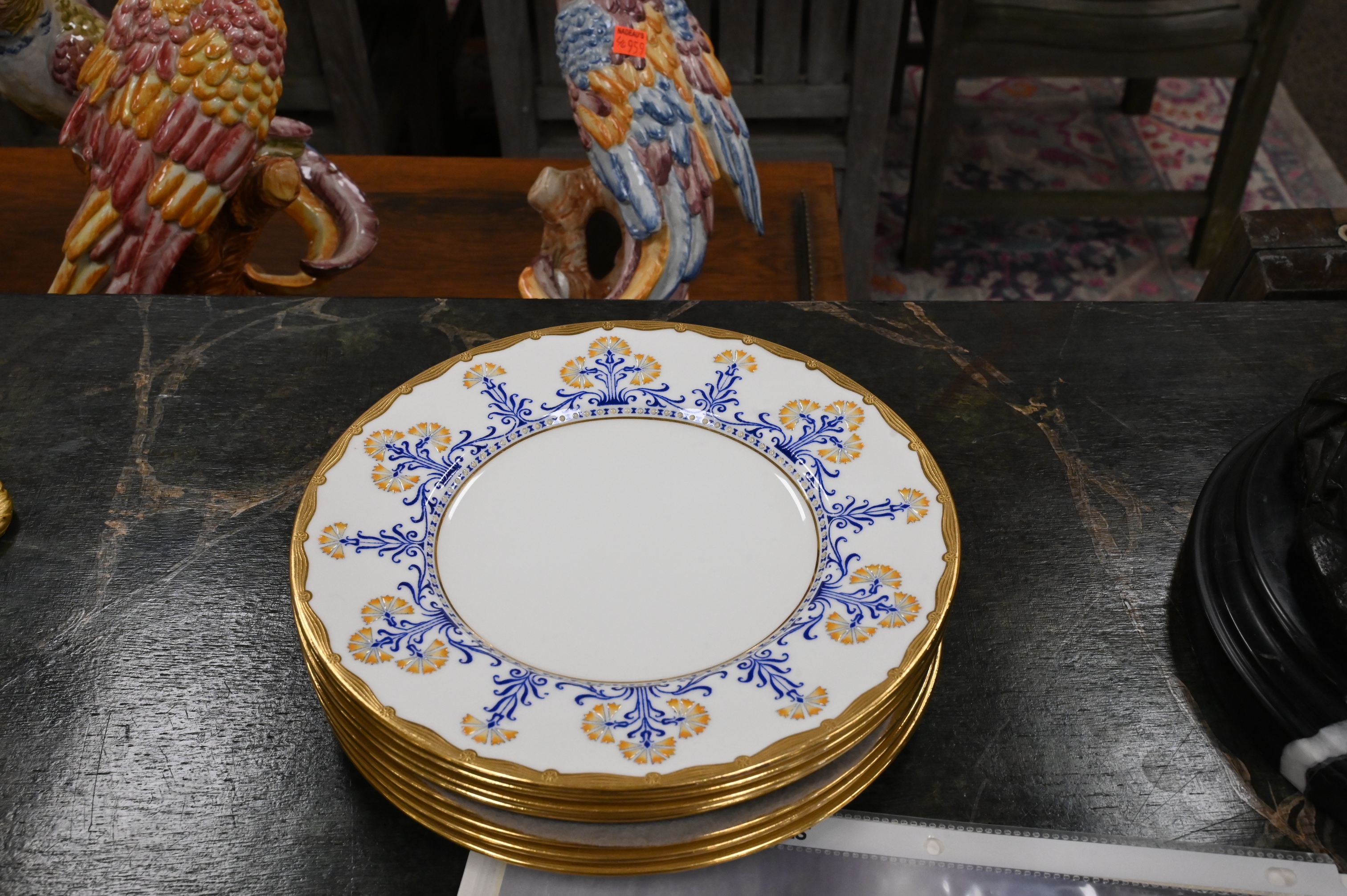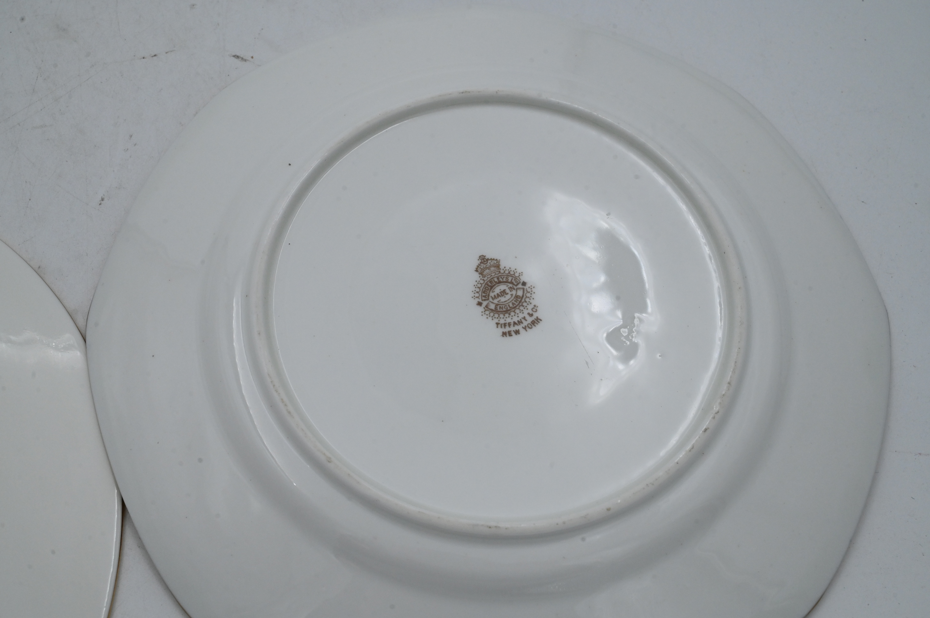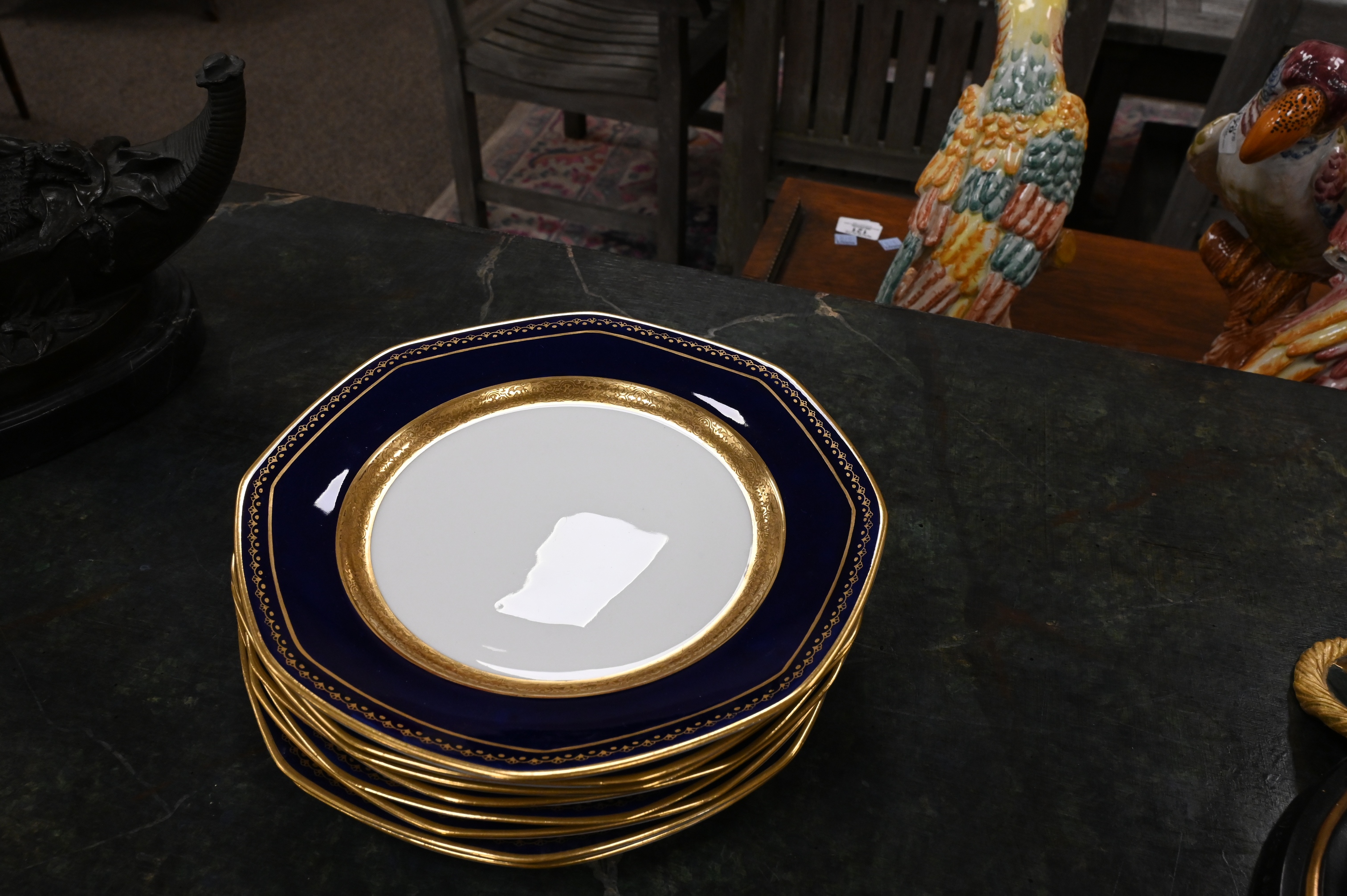 12 Adderly’s Tiffany & Co. cobalt and gilt plates 12 Minton Burley & Co. git rimmed luncheon plates