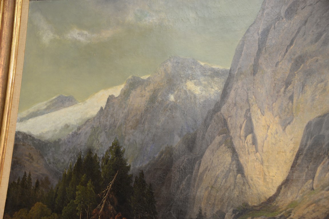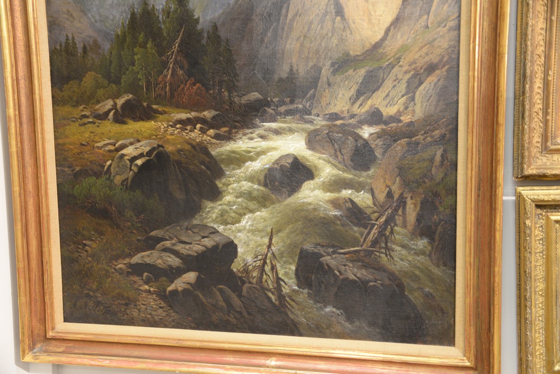 Lot 439: Alois Wolf Mountainous Landscape with Rushing River oil on canvas signed lower left: A
