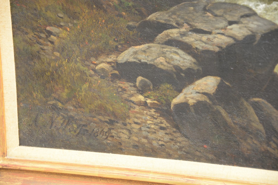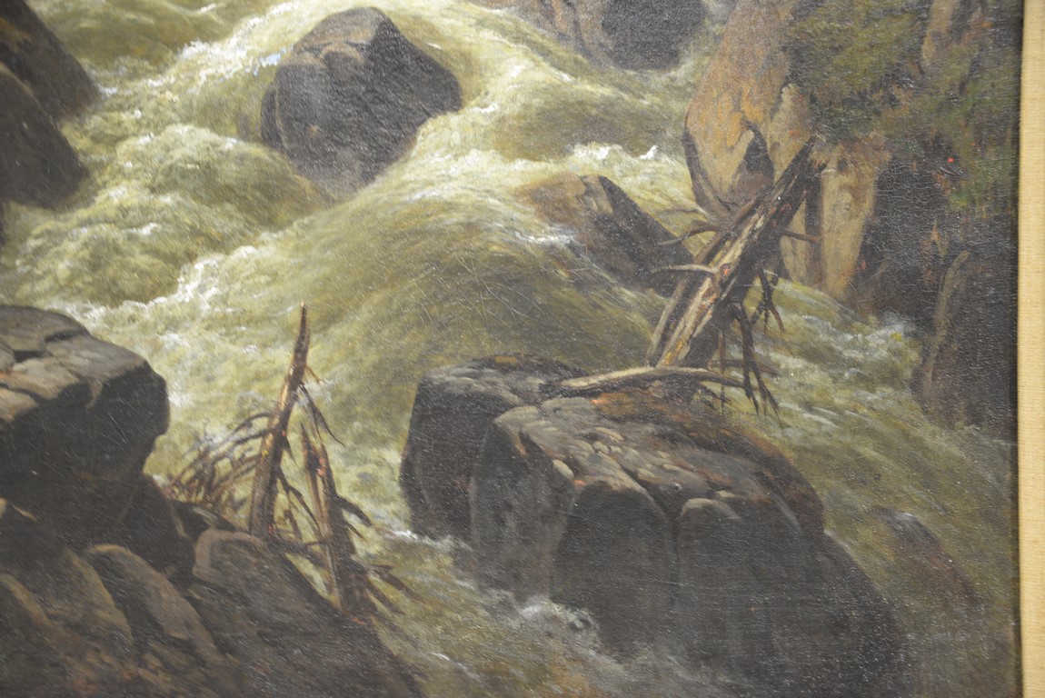 Alois Wolf Mountainous Landscape with Rushing River oil on canvas signed lower left: A. N. Wolf 1869 42 x 31 1/2