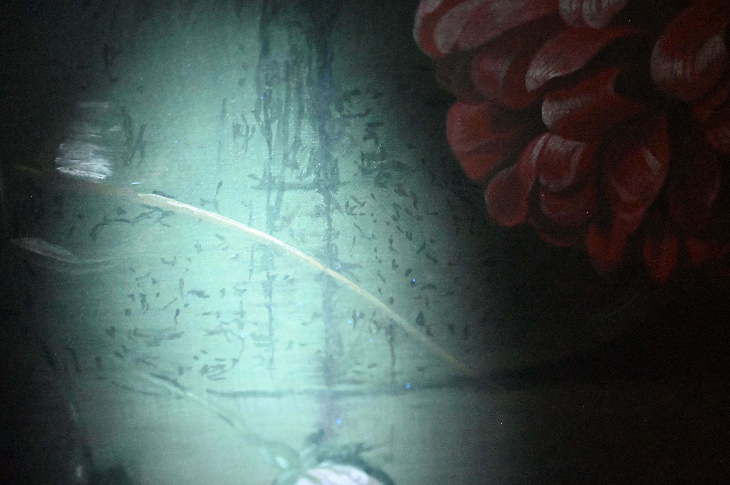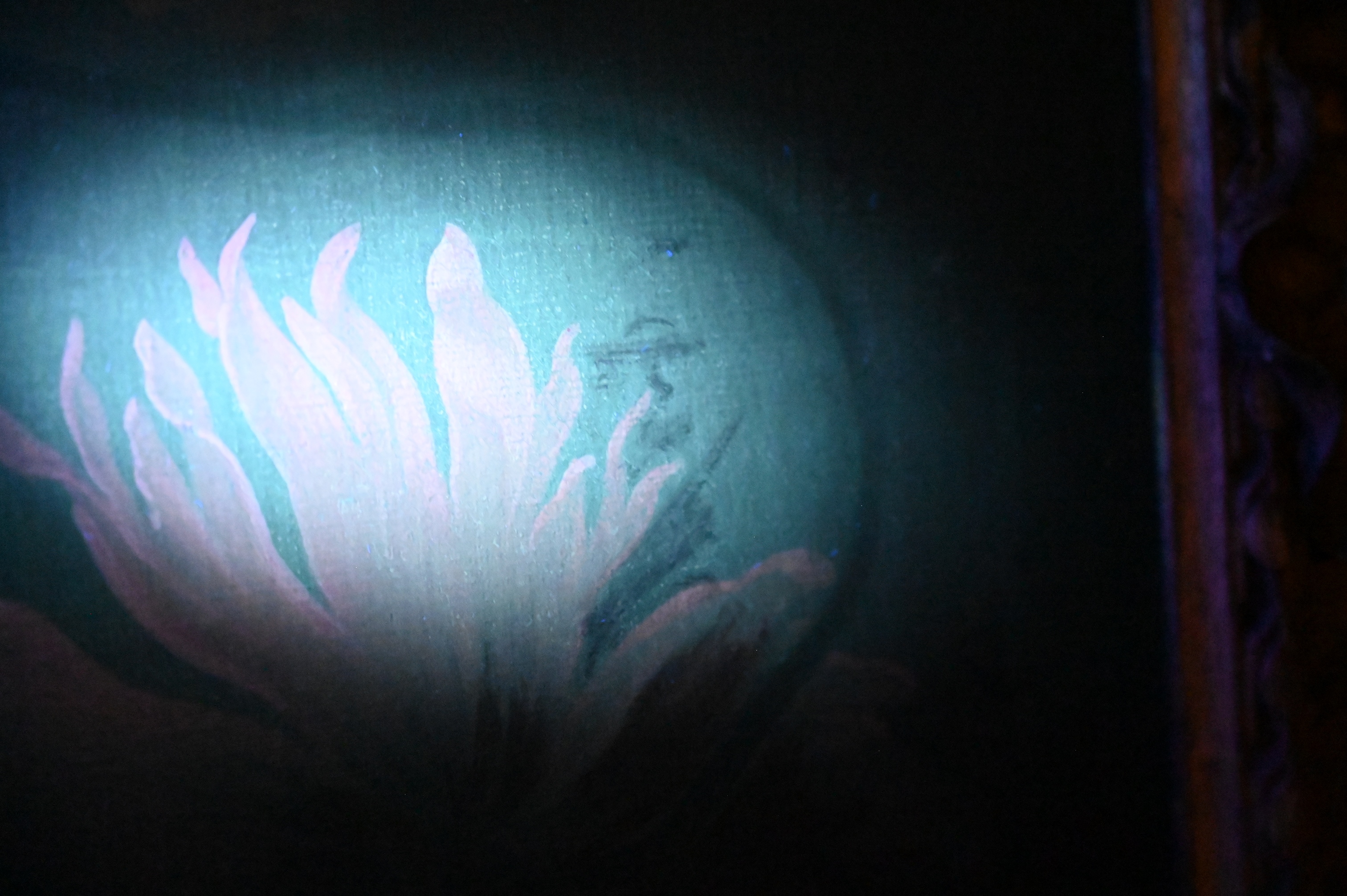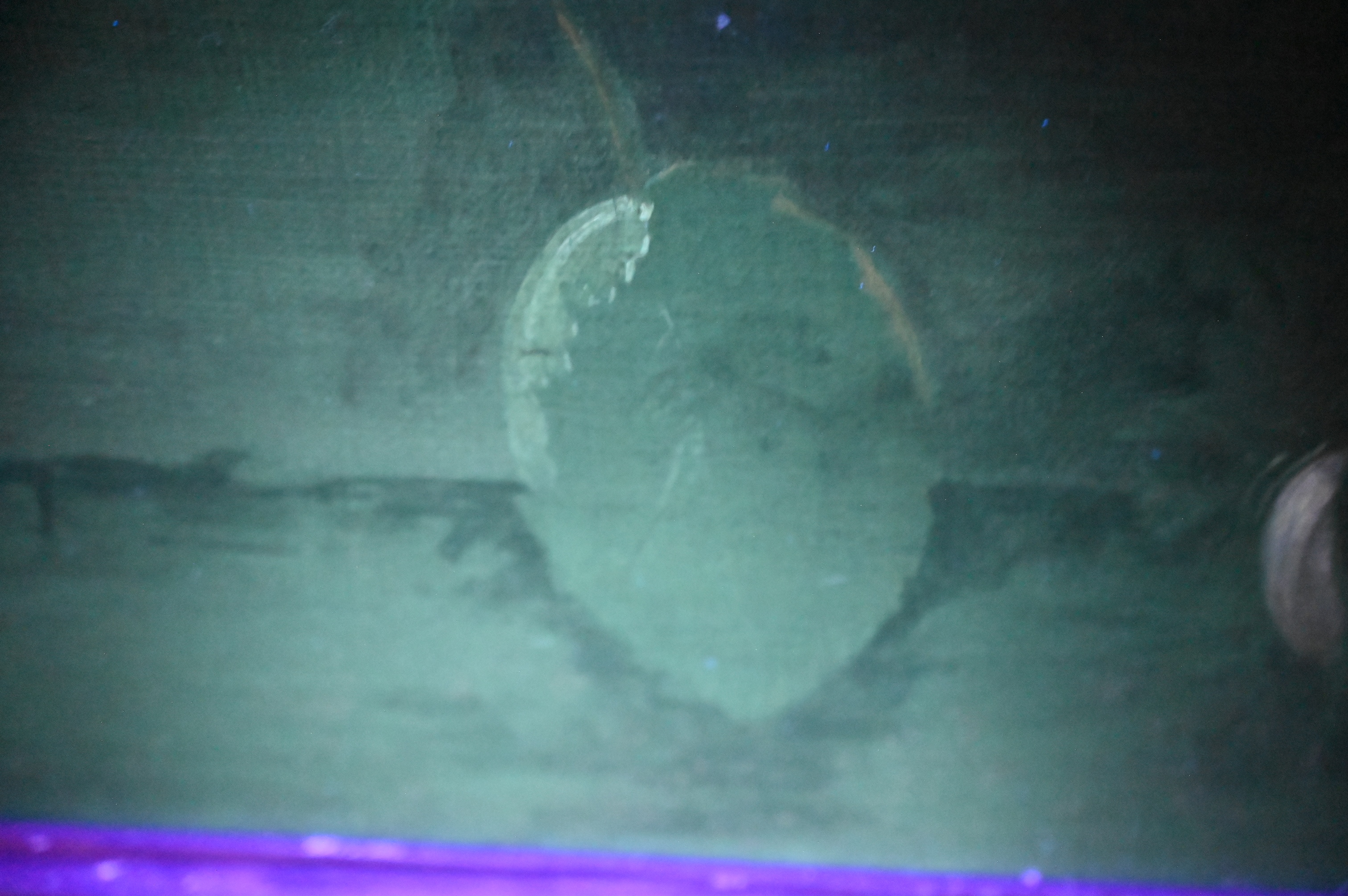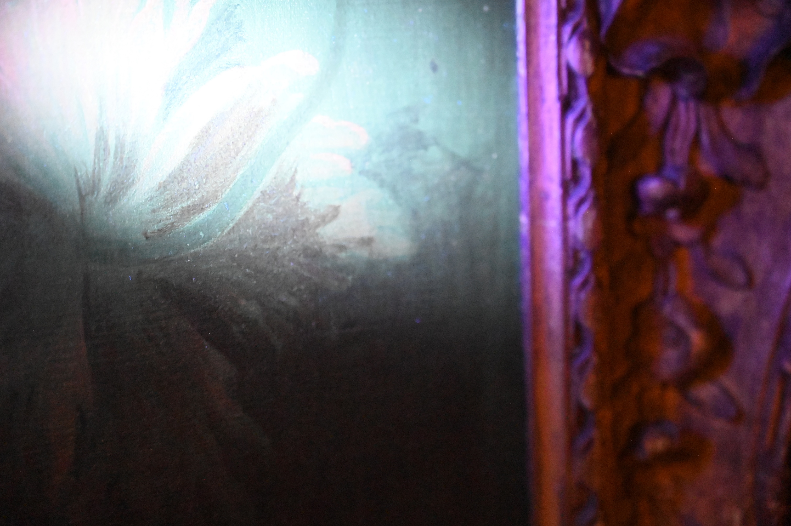 Condition: presents well, relined and restretched canvas, subtle craquelure throughout, repaired central vertical abrasion, small repairs throughout, inpainting throughout.