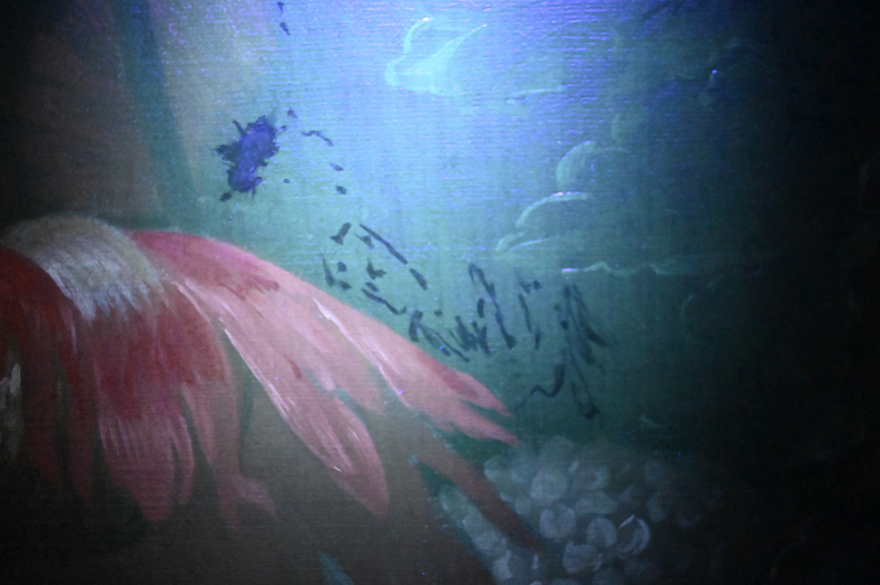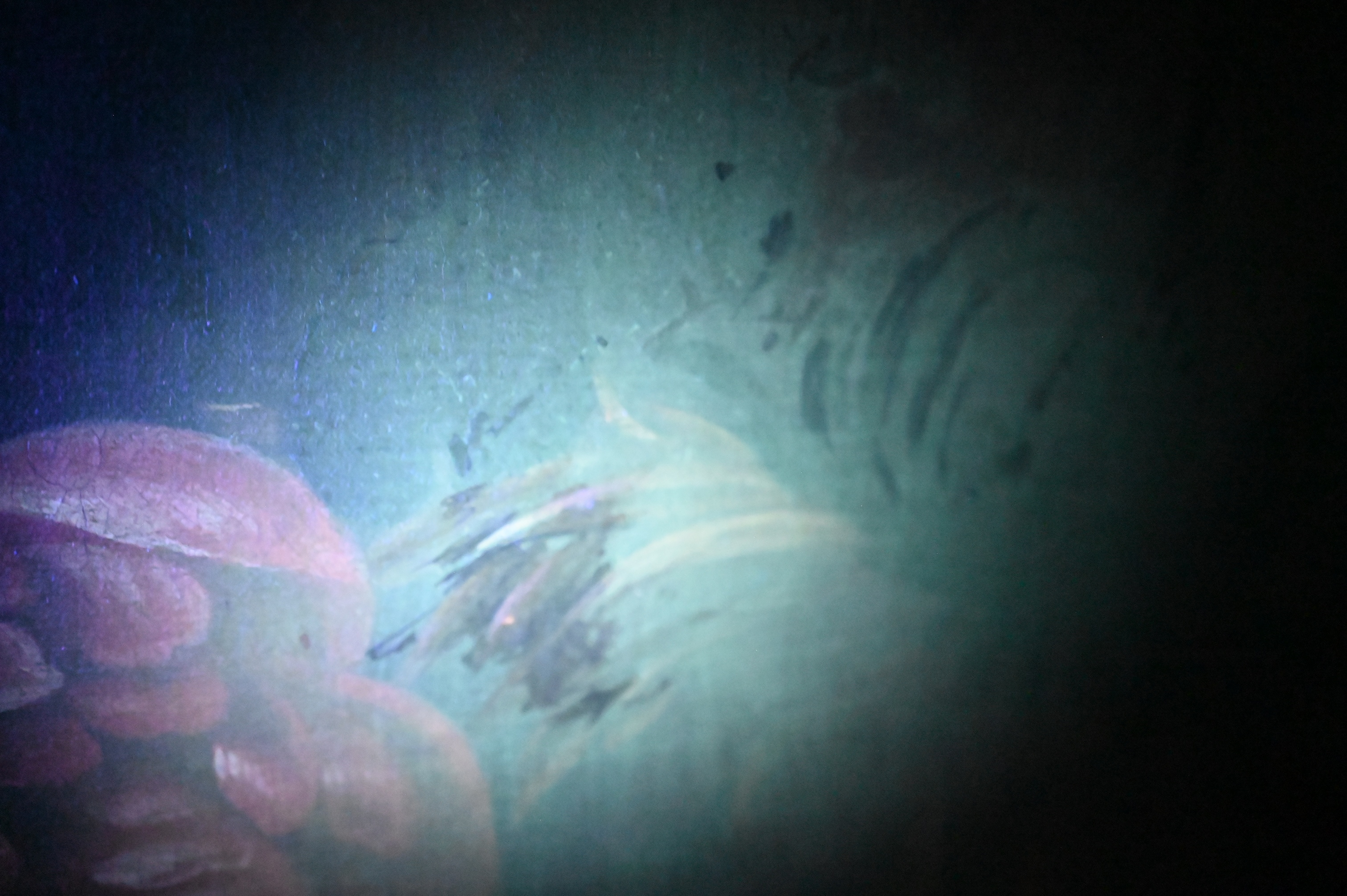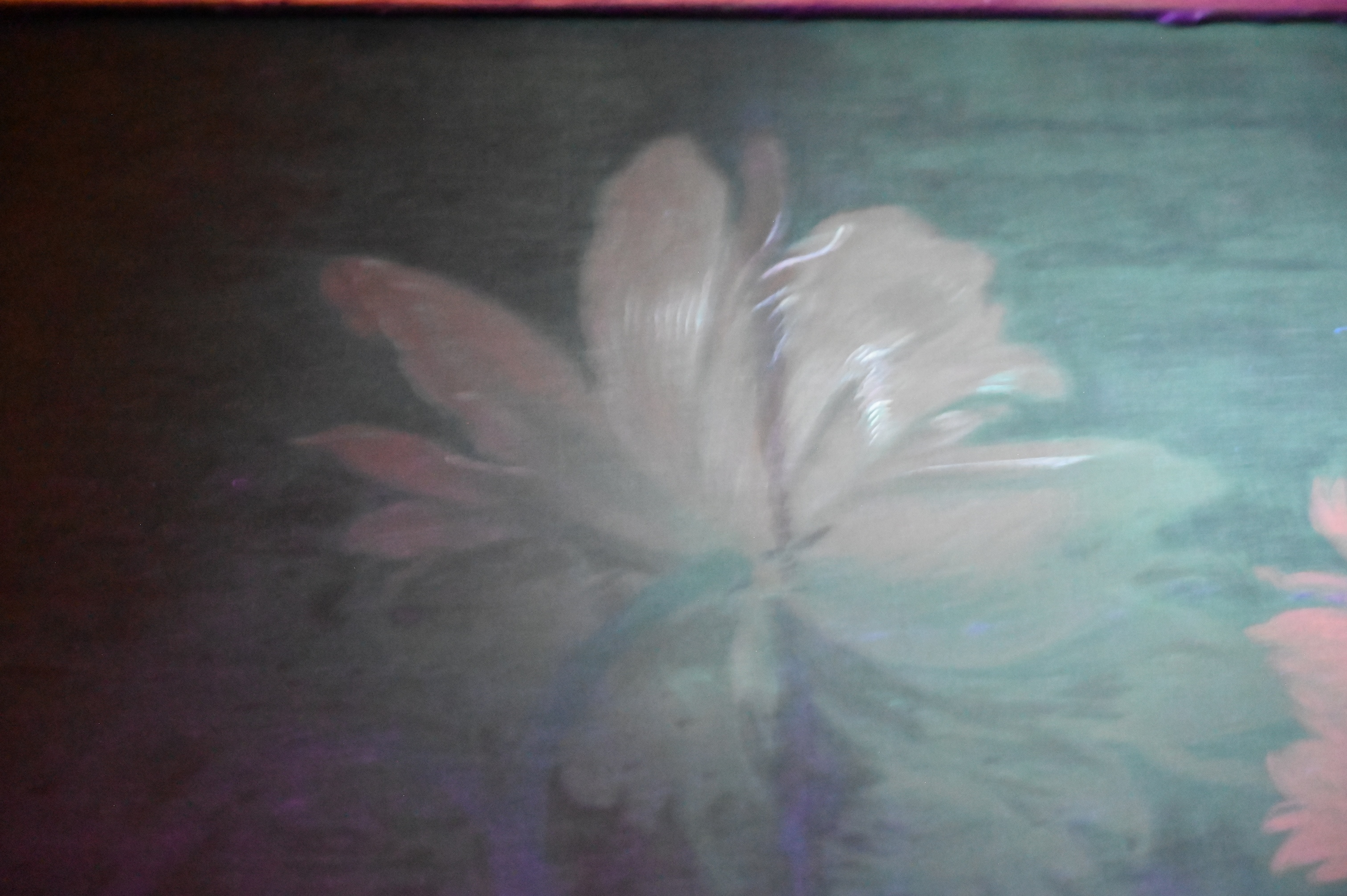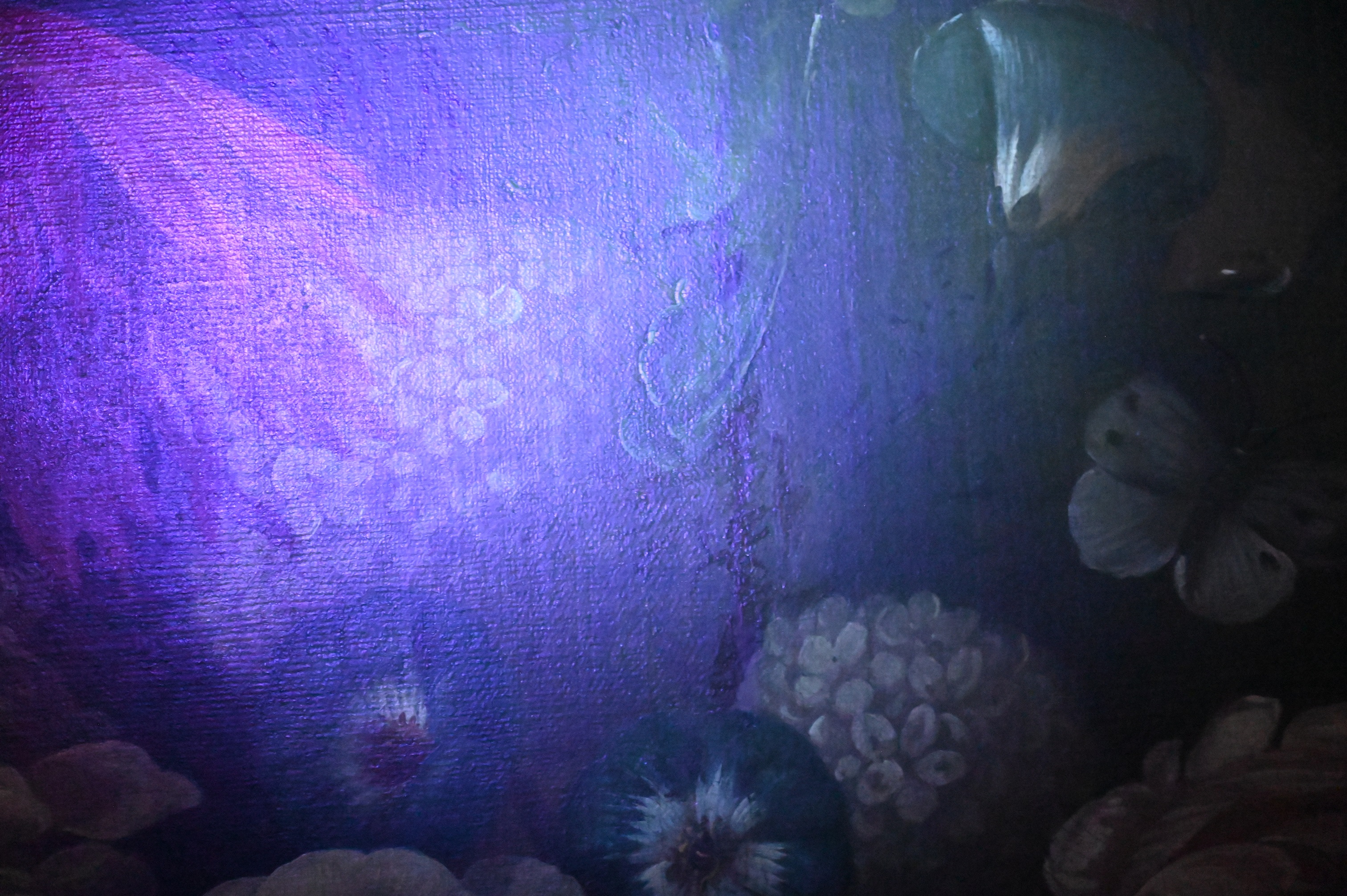Condition: presents well, relined and restretched canvas, subtle craquelure throughout, repaired central vertical abrasion, small repairs throughout, inpainting throughout.