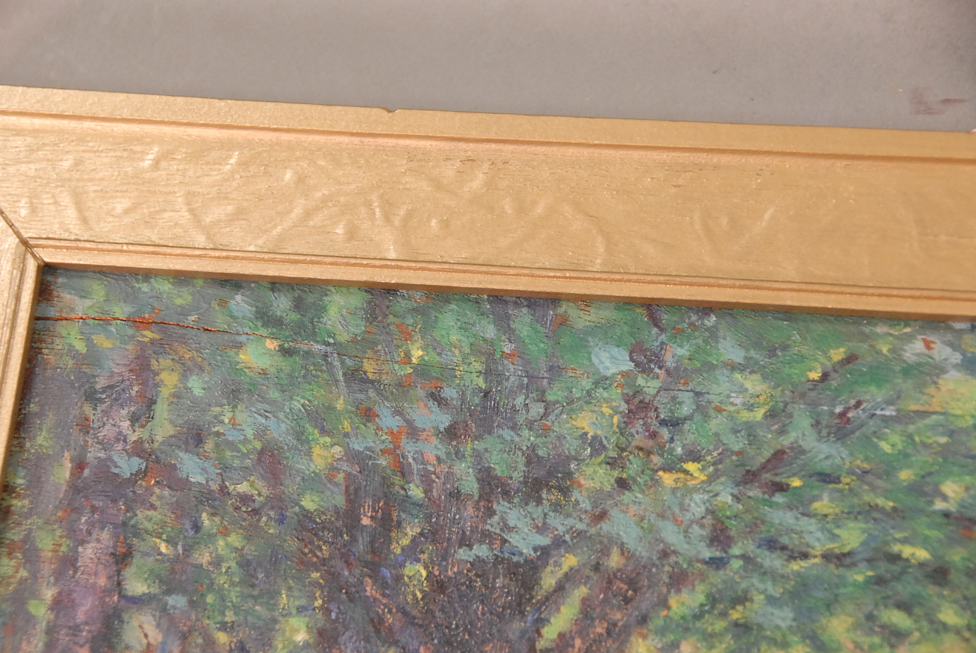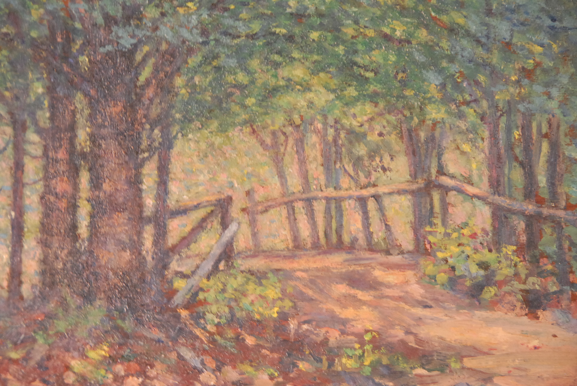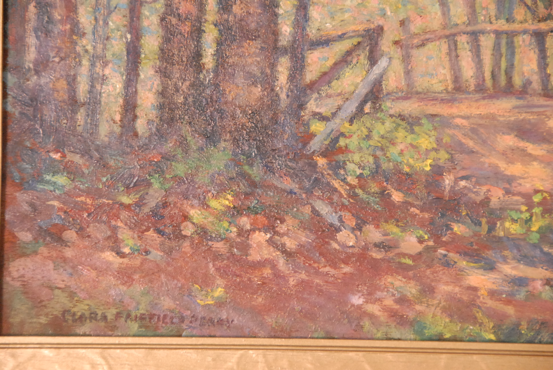 Clara L. Fairfield Perry 1870 – 1941 PATH THROUGH SHADED WOODS oil on panel signed lower left Clara Fairfield Perry