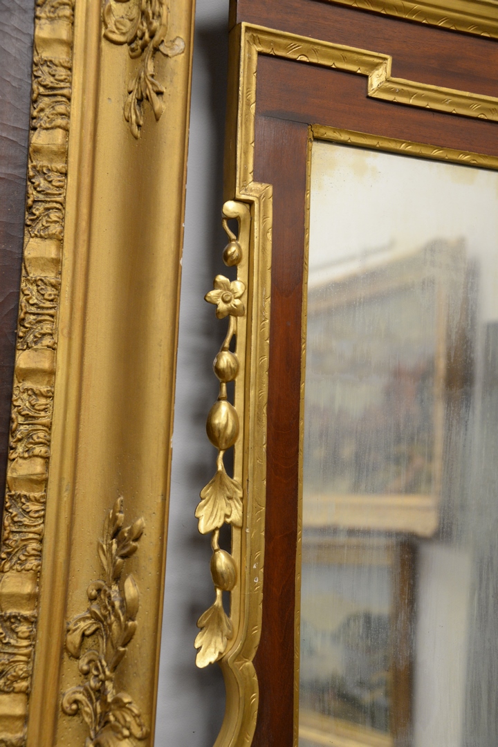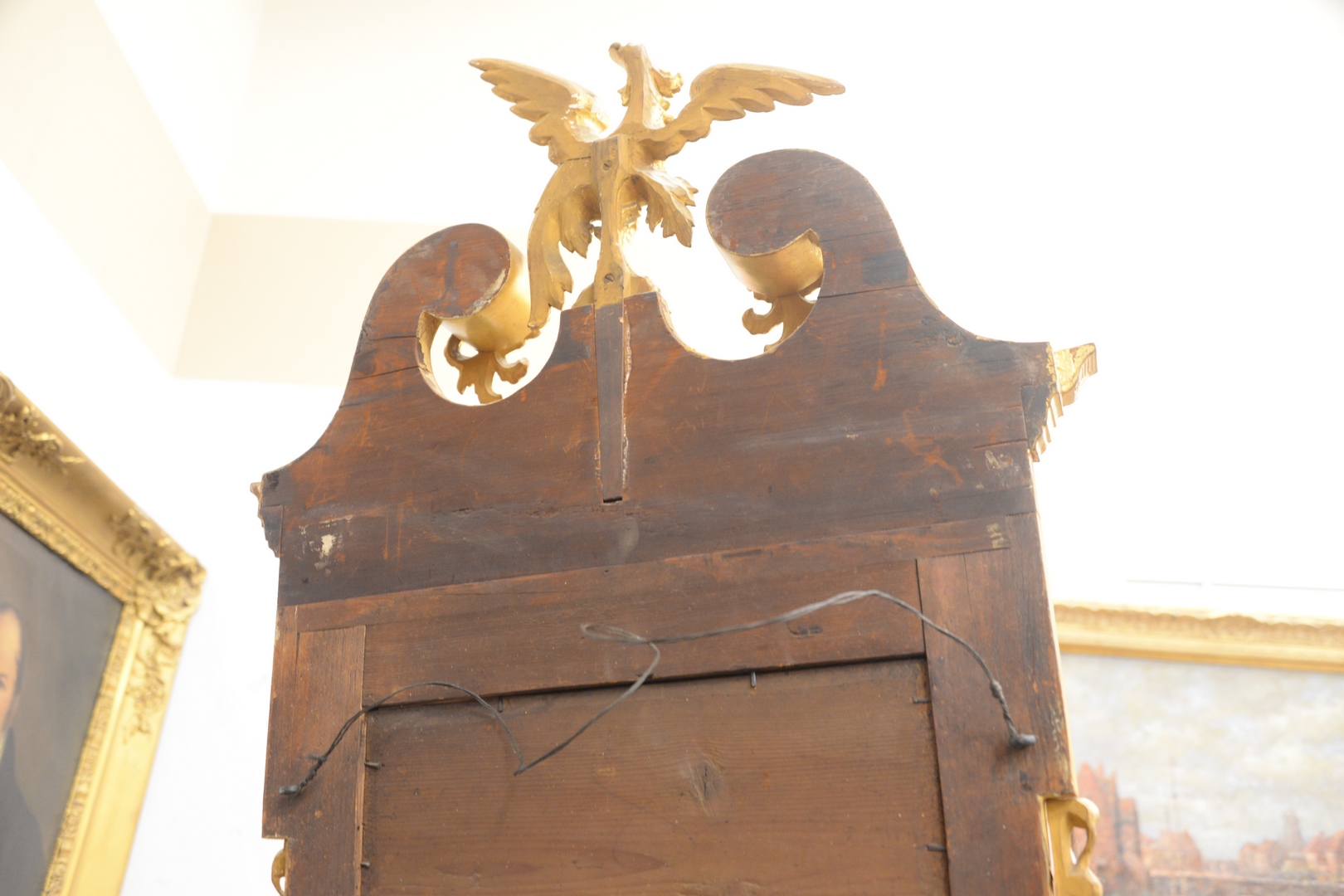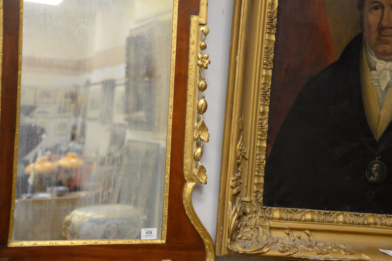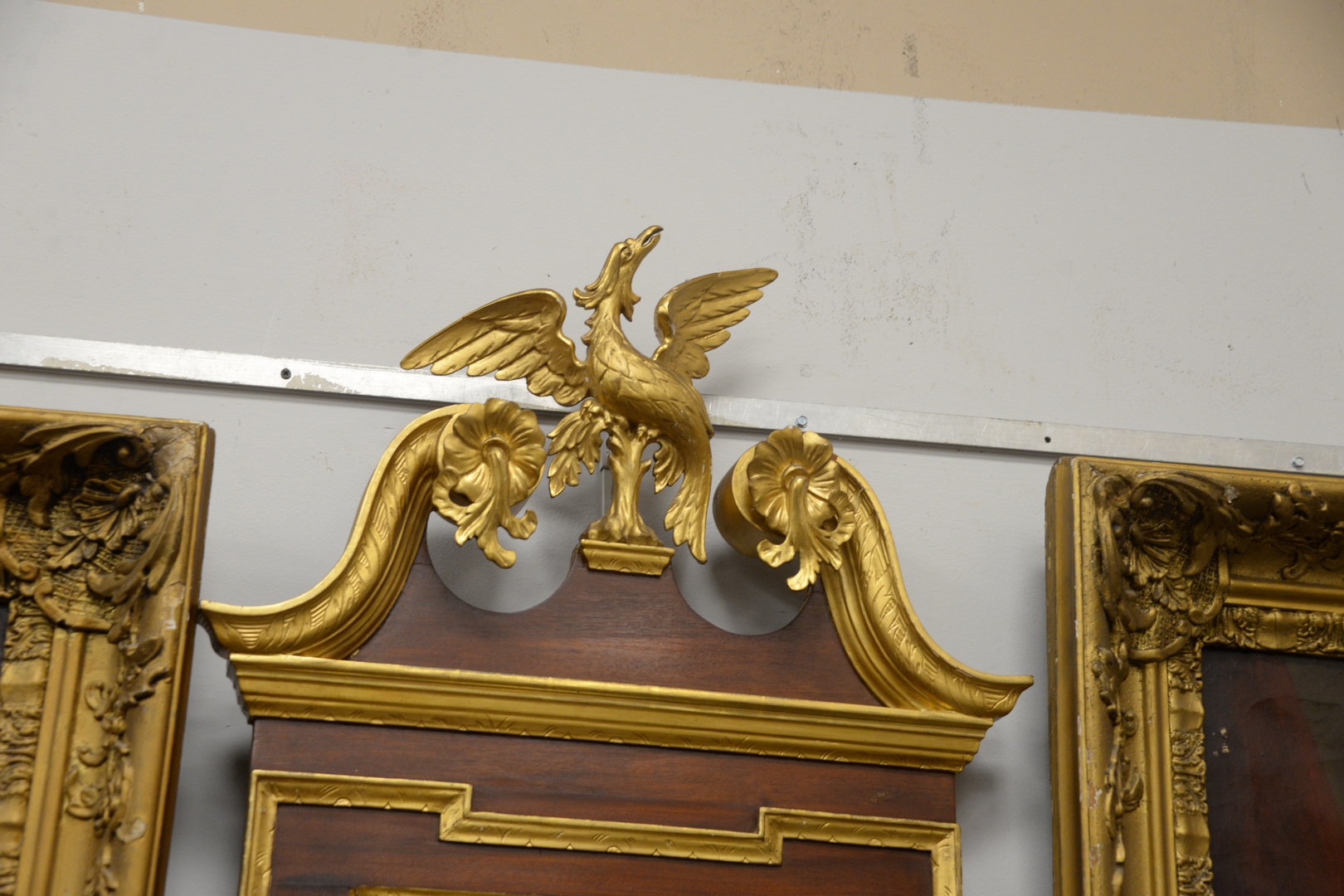 Lot 439: Federal Style Mahogany Mirror, having gilt eagle crest and finial, height 50 1/2 inches, width 24 inches.