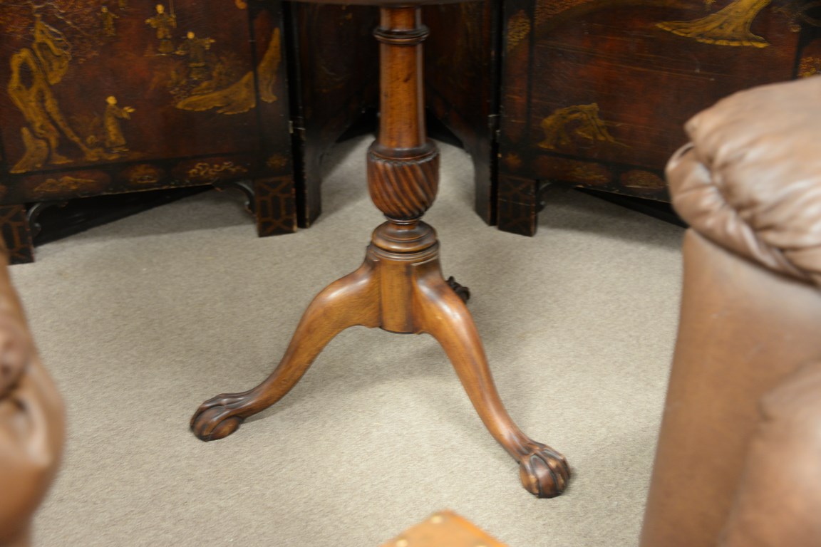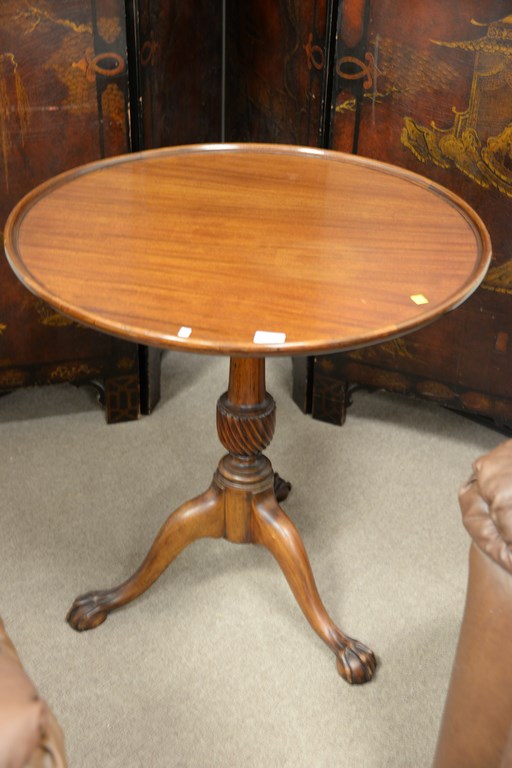 Mahogany tip top table with ball and claw feet, dia. 29 in.