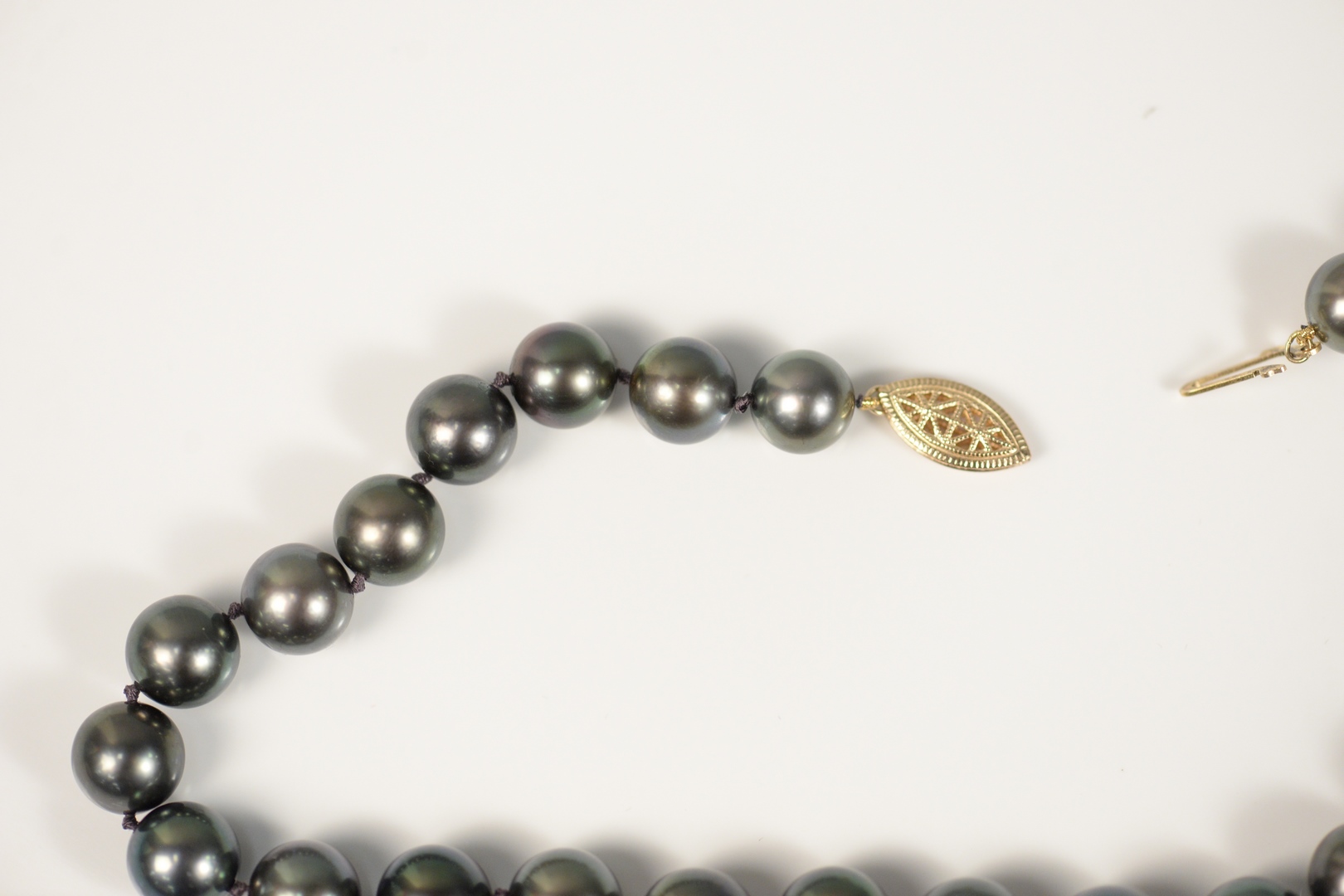 Black Pearl Necklace length 15 1/2 inches 10.1 – 12.5 millimeters